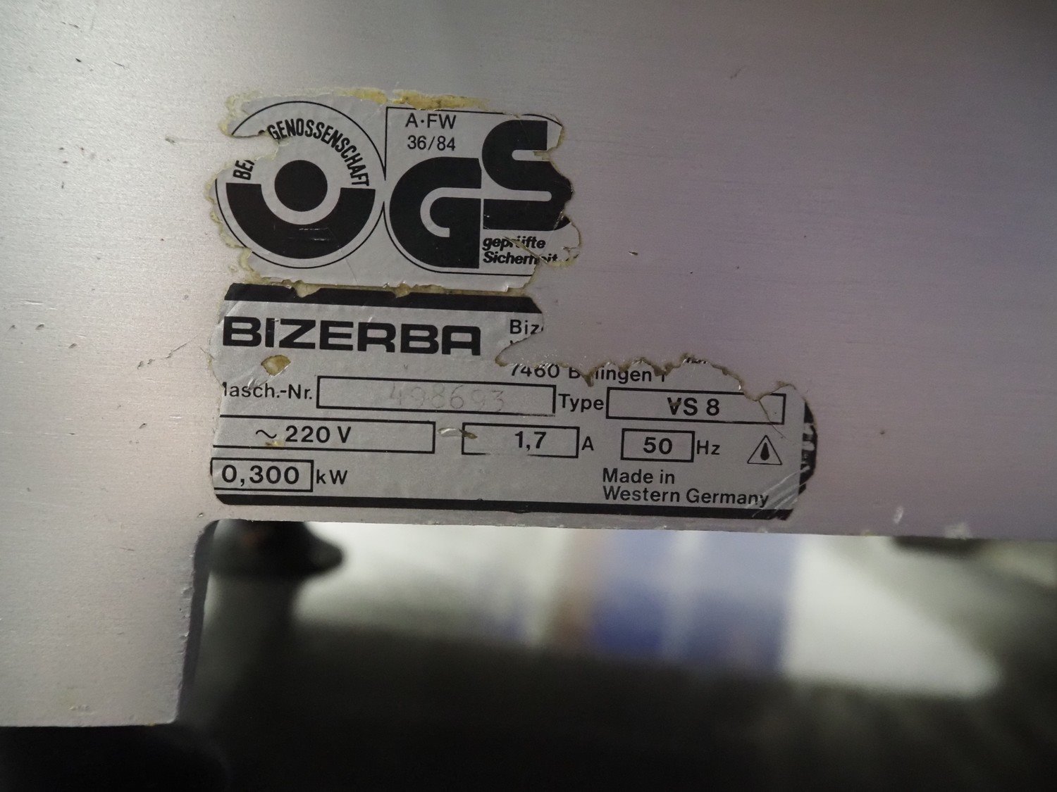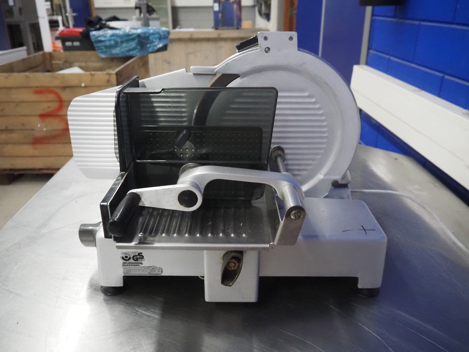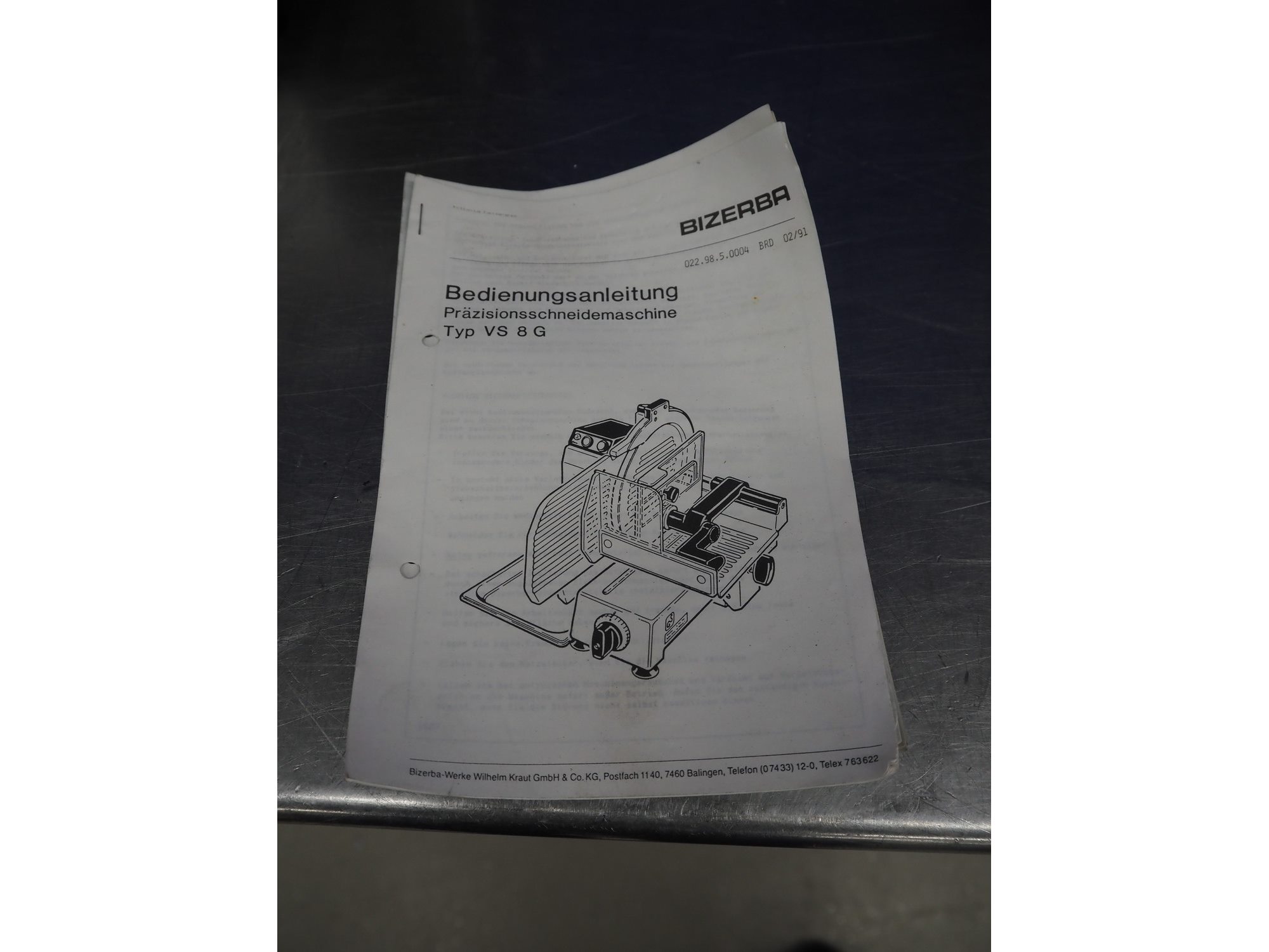 Bizerba slicer, type: VS 8, number: 498693, 220 V, 1 Ph, 50 Hz, 1.7 A, 0.300 kW, dimensions: 600 mm x 550 mm x 450 mm. Including knife sharpener. Kavel locatie: Looyenbeemd 11, 5652 BH Eindhoven, Nederland