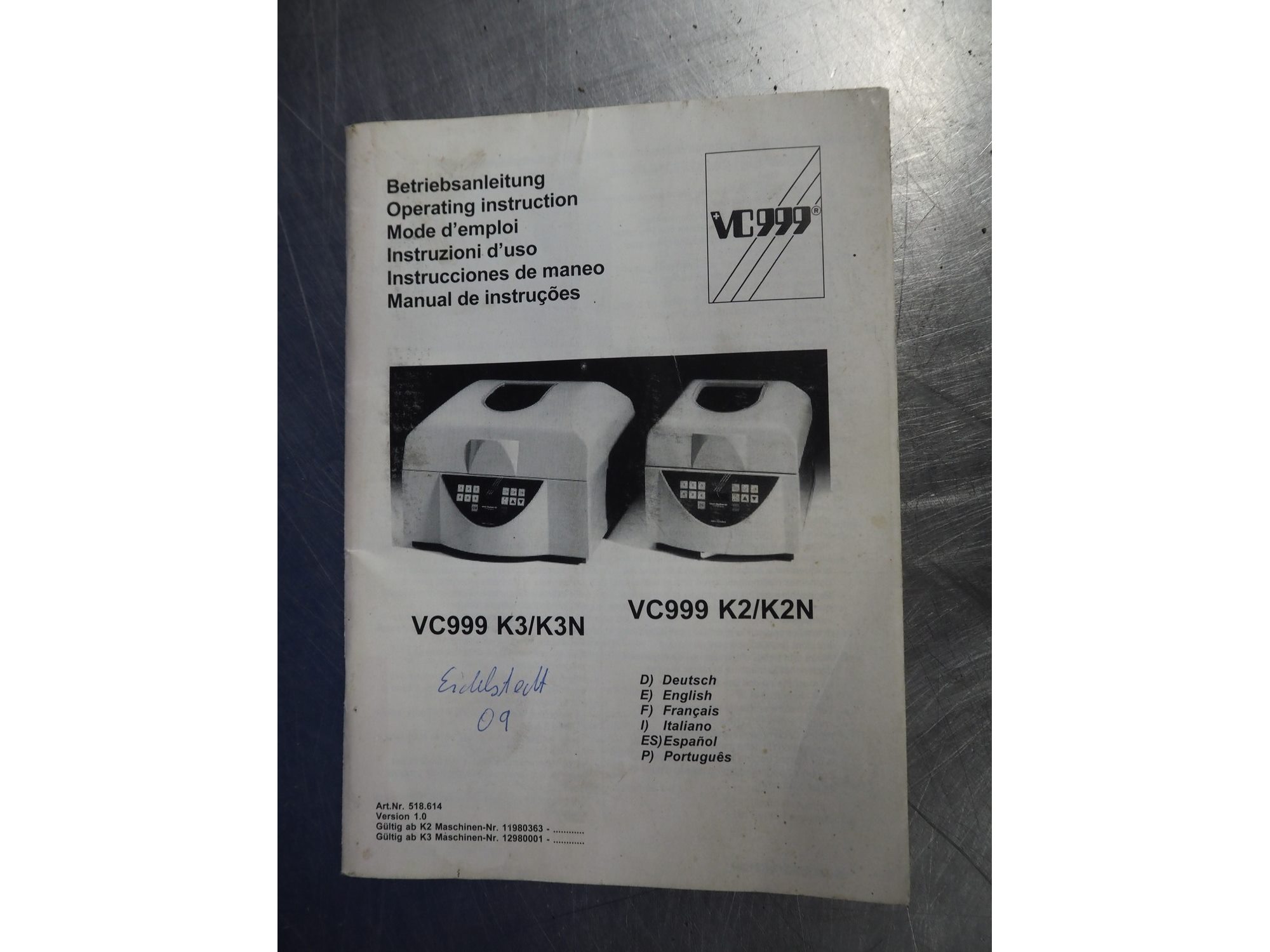 Inauen Maschinen AG vacuum machine, type: VC 999/K3, number: 1201 0868, 230/220 V, 50/60 Hz, 1.3 kW, seal length: 470 mm, total dimensions: 550 mm x 570 mm x 380 mm. Kavel locatie: Looyenbeemd 11, 5652 BH Eindhoven, Nederland