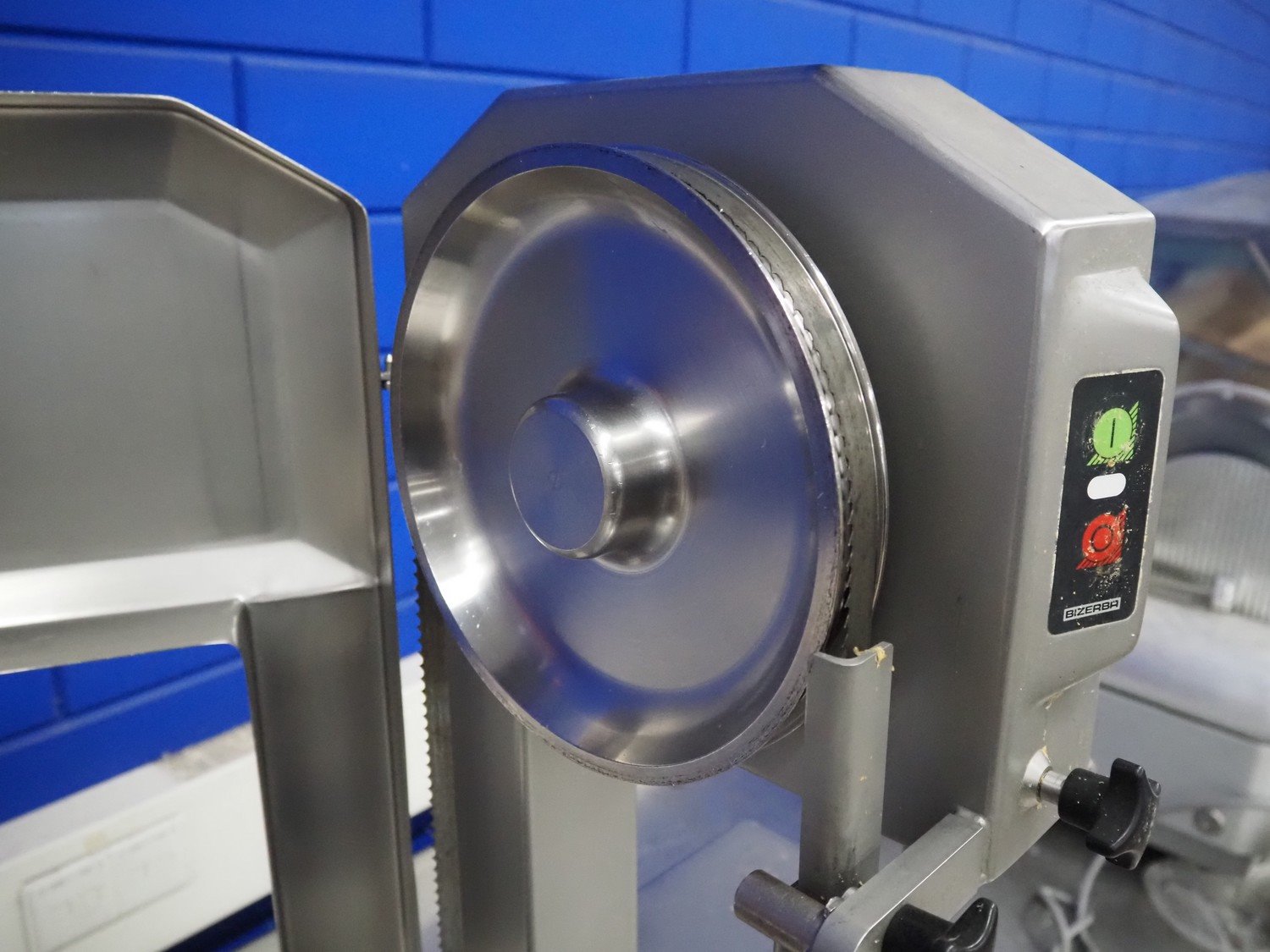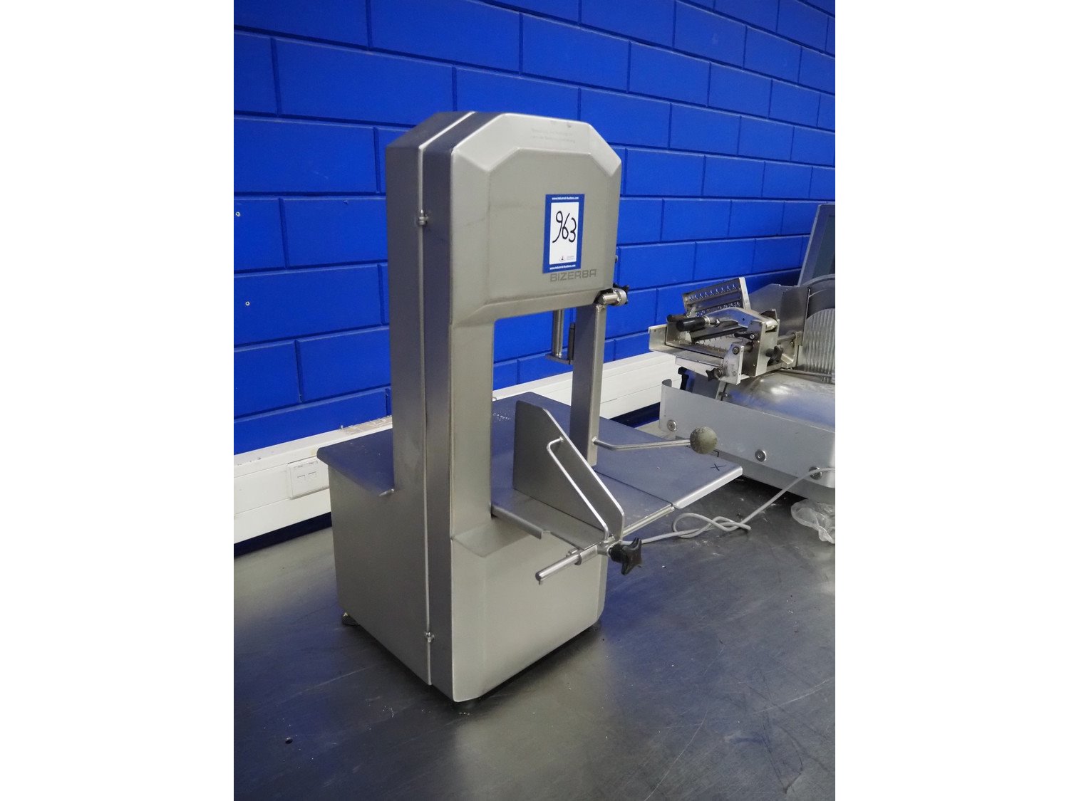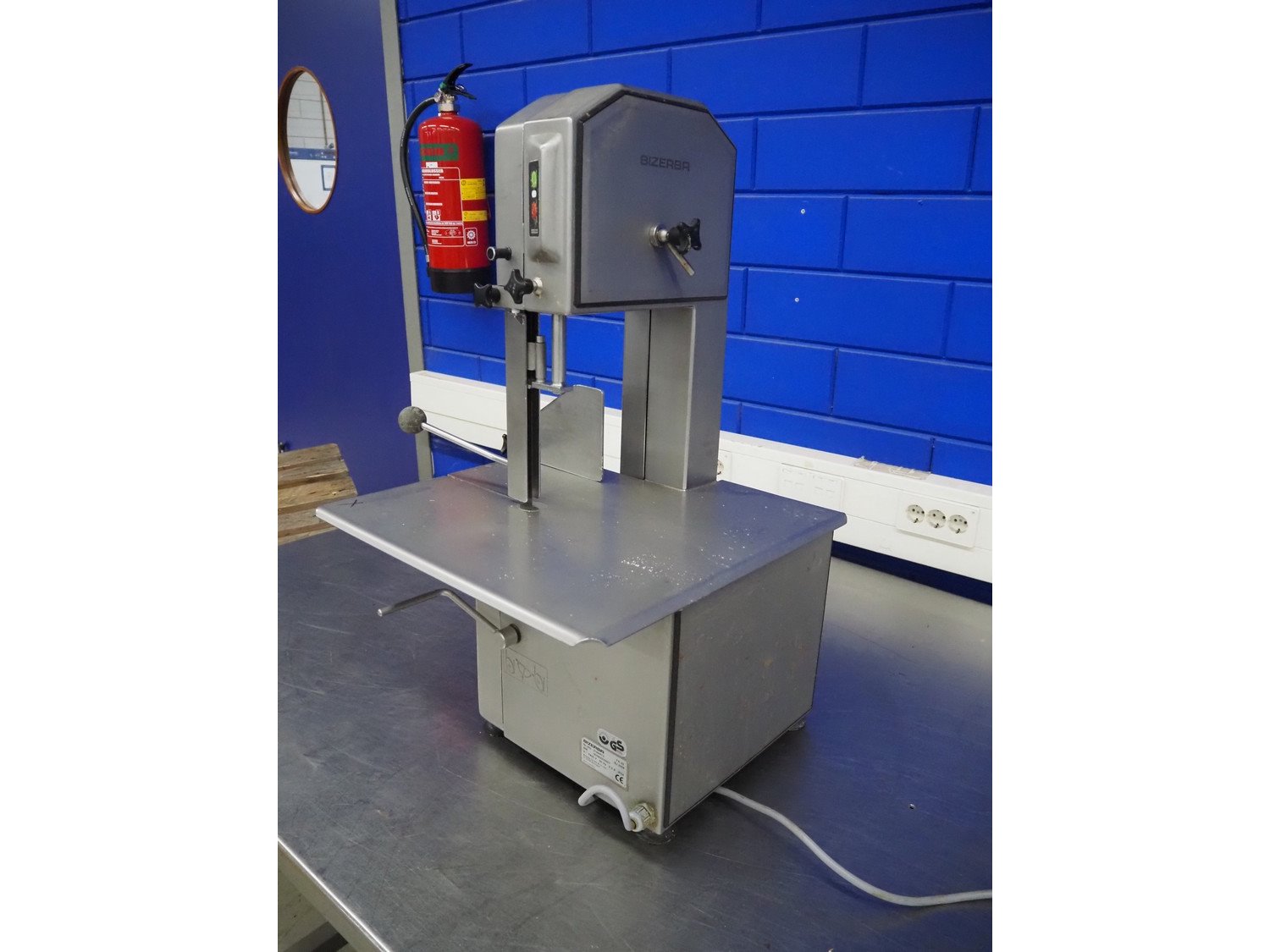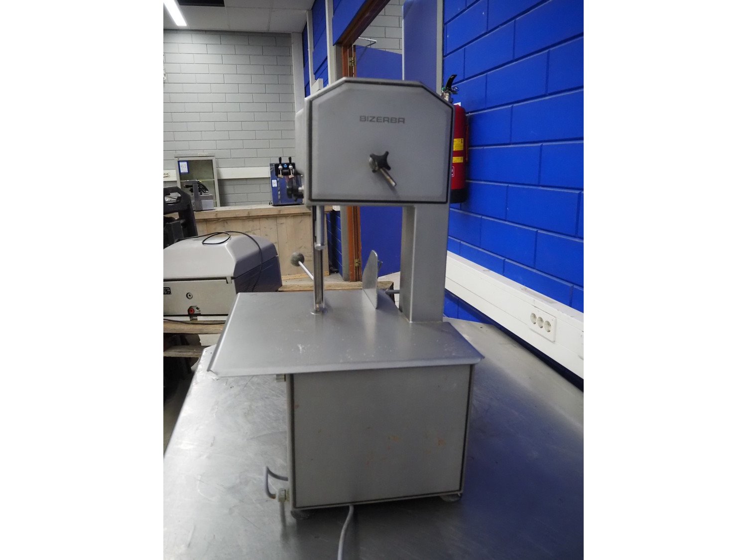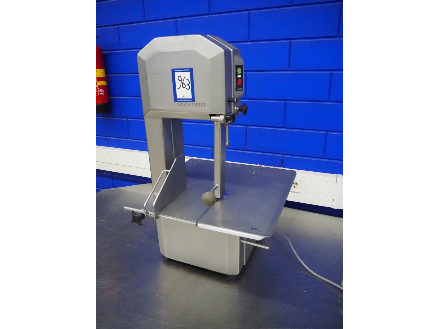 Bizerba bandsaw, type: FK 23, number: 2194472, year of construction: 2004, 400 V, 3 Ph, 50 Hz, 2.3 A, table dimensions: 520 mm x 520 mm, total dimensions: 520 mm x 520 mm x 850 mm. Kavel locatie: Looyenbeemd 11, 5652 BH Eindhoven, Nederland