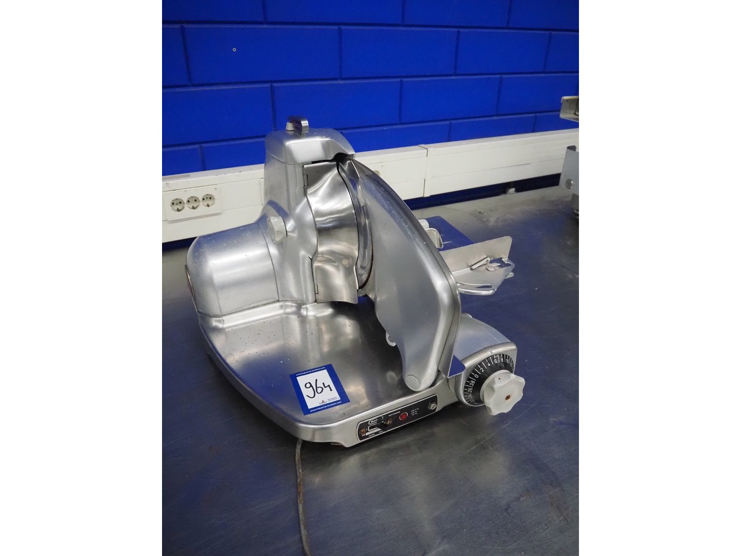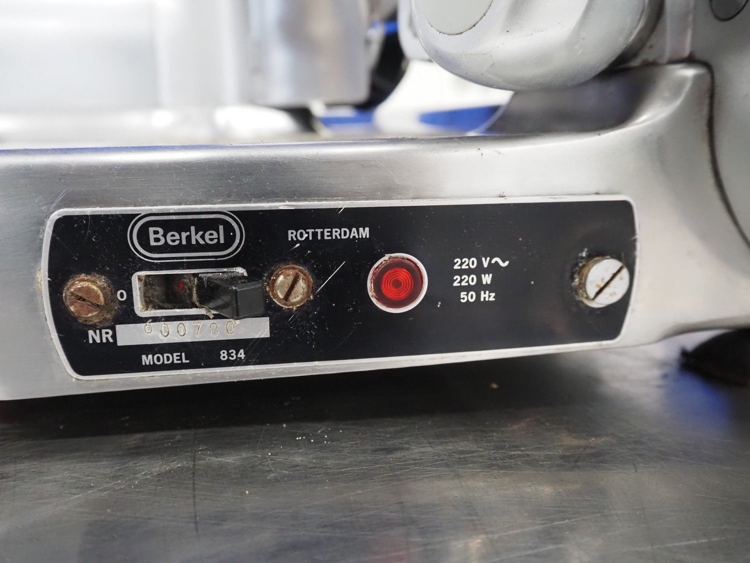 Berkel slicer, model: 834, number: 600780, 220 V, 1 Ph, 50 Hz, 220 W, dimensions: 630 mm x 550 mm x 450 mm. Kavel locatie: Looyenbeemd 11, 5652 BH Eindhoven, Nederland