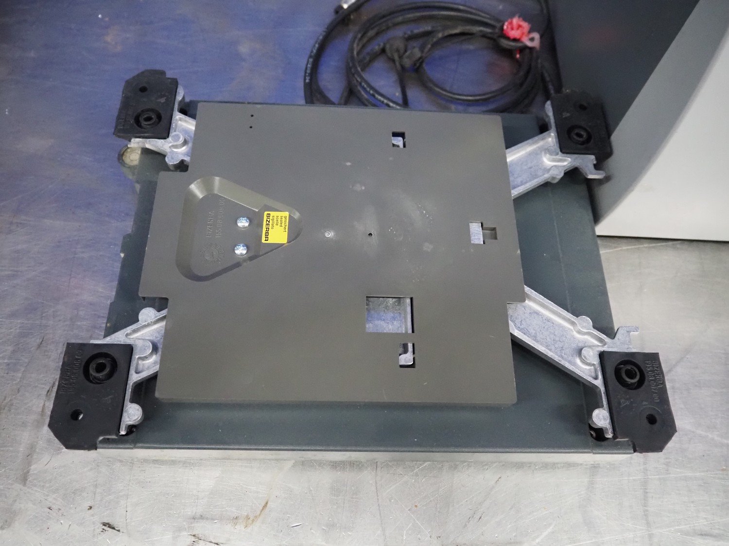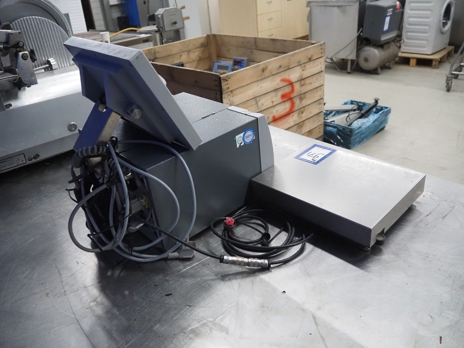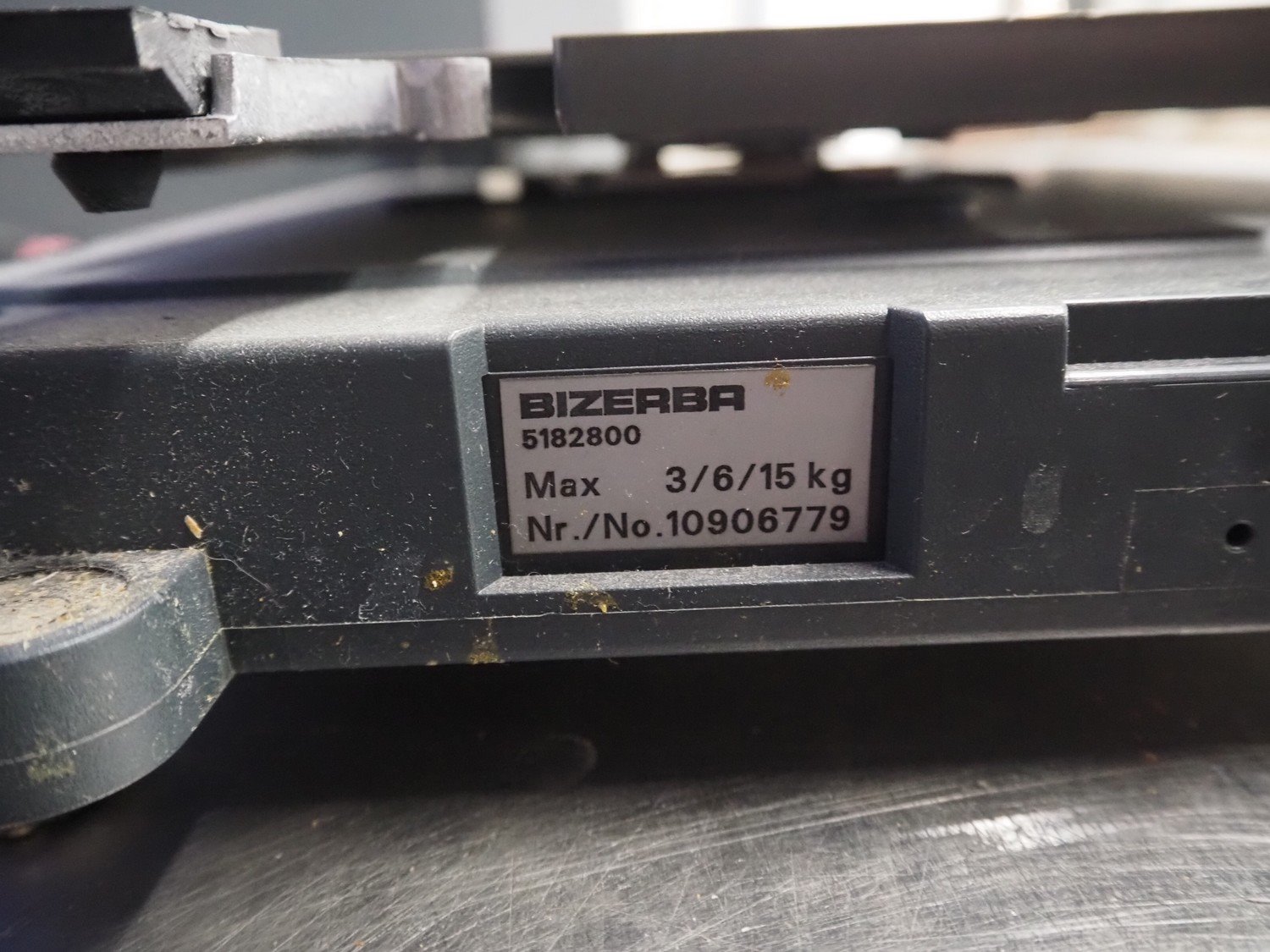 Bizerba weighing scale with indicator and label printer, type: GLP-W, number: 10906613, 230 V, 50 Hz, 0.65/3.5 A, maximum capacity: 3/6/15 kg, minimum capacity: 20 g, e= 1/2/5 g, dimensions scale: 335 mm x 260 mm, dimensions label printer: 430 mm x 350 mm x 470 mm. Kavel locatie: Looyenbeemd 11, 5652 BH Eindhoven, Nederland