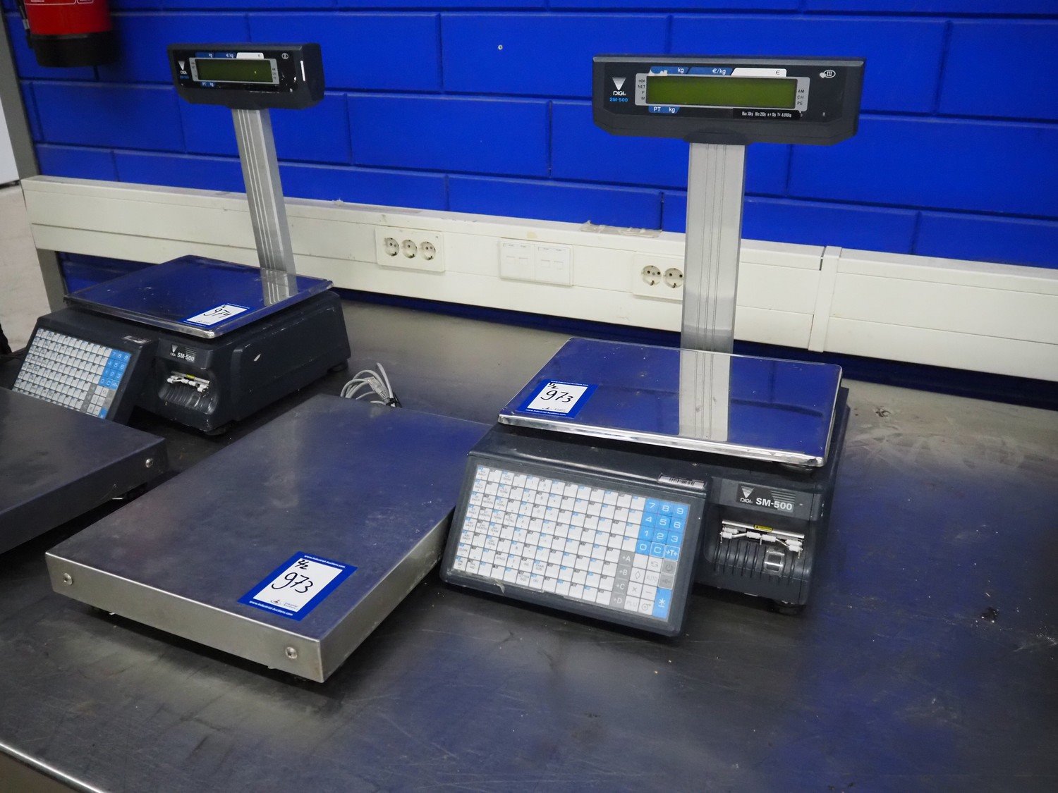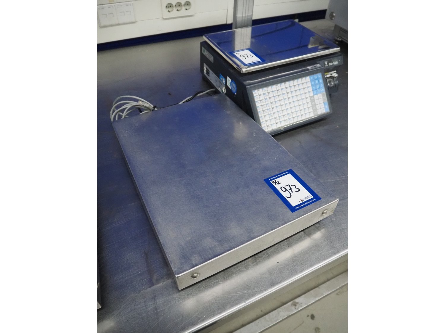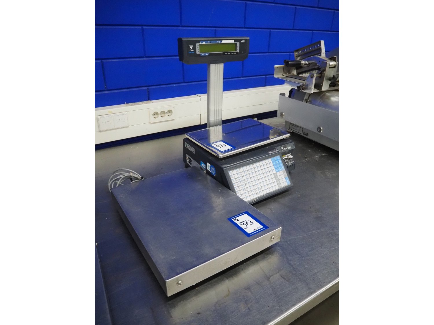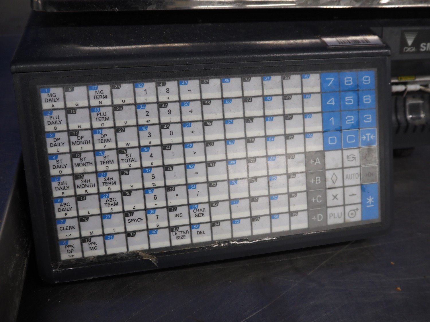 Digi Benelux weighing scale with label printer and extra scale, model: SM-500EP, serial number: 10903695, 230 V, 50/60 Hz, 0.4 A, 45 W, maximum capacity: 30 kg, minimum capacity: 200 g, e= 10 g, T= -9.990 kg, scale dimensions: 380 mm x 280 mm, total dimensions: 400 mm x 480 mm x 560 mm. Dimensions extra scale: 500 mm x 350 mm. Kavel locatie: Looyenbeemd 11, 5652 BH Eindhoven, Nederland