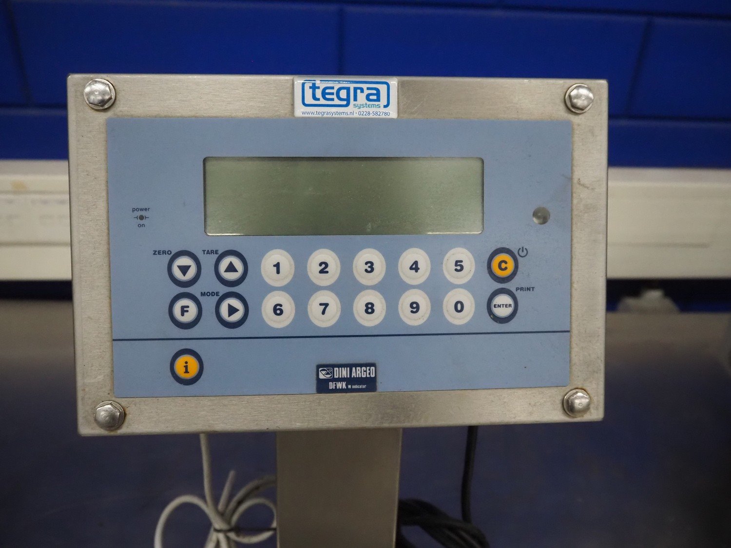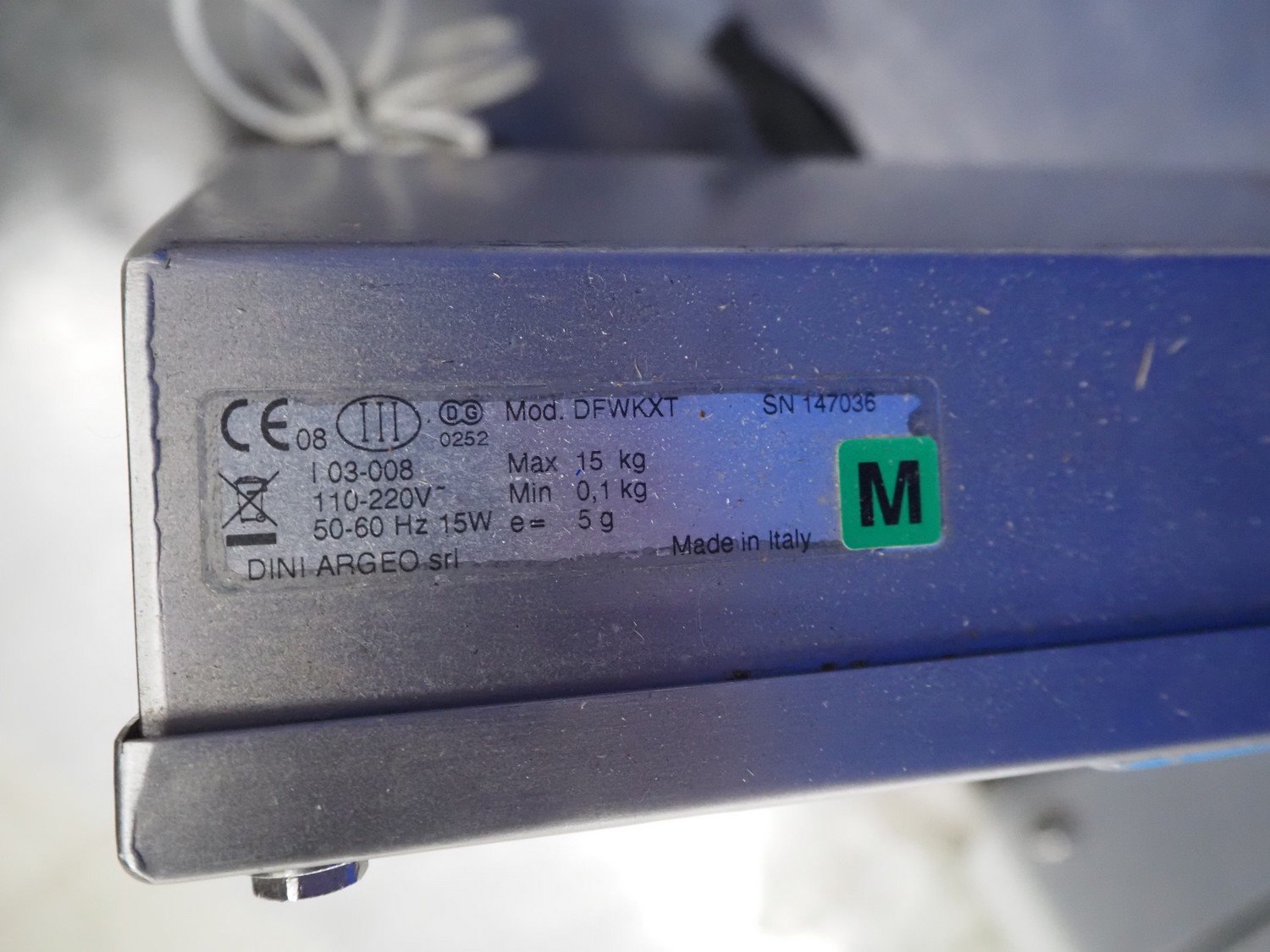Dini Argeo srl weighing scale, model: DFWKXT, serial number: 147036, 110/220 V, 1 Ph, 50/60 Hz, 15 W, maximum capacity: 15 kg, minimum capacity: 0.1, e= 5 g, dimensions: 350 mm x 300 mm x 500 mm. Kavel locatie: Looyenbeemd 11, 5652 BH Eindhoven, Nederland