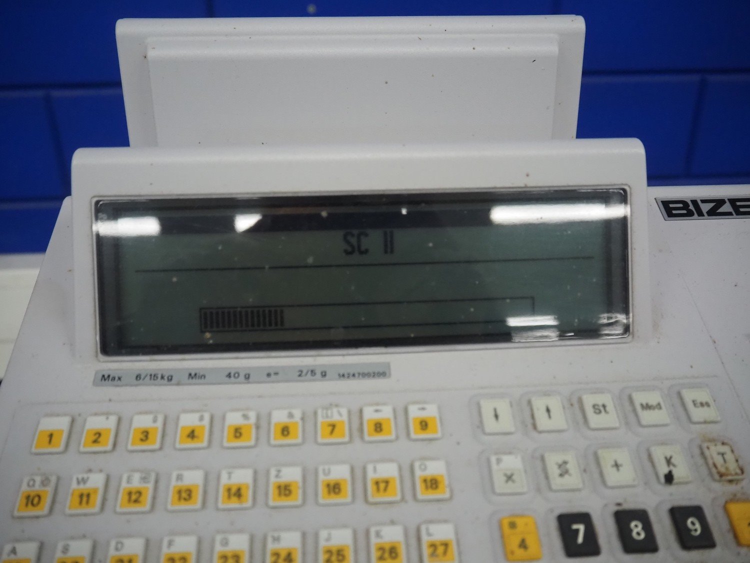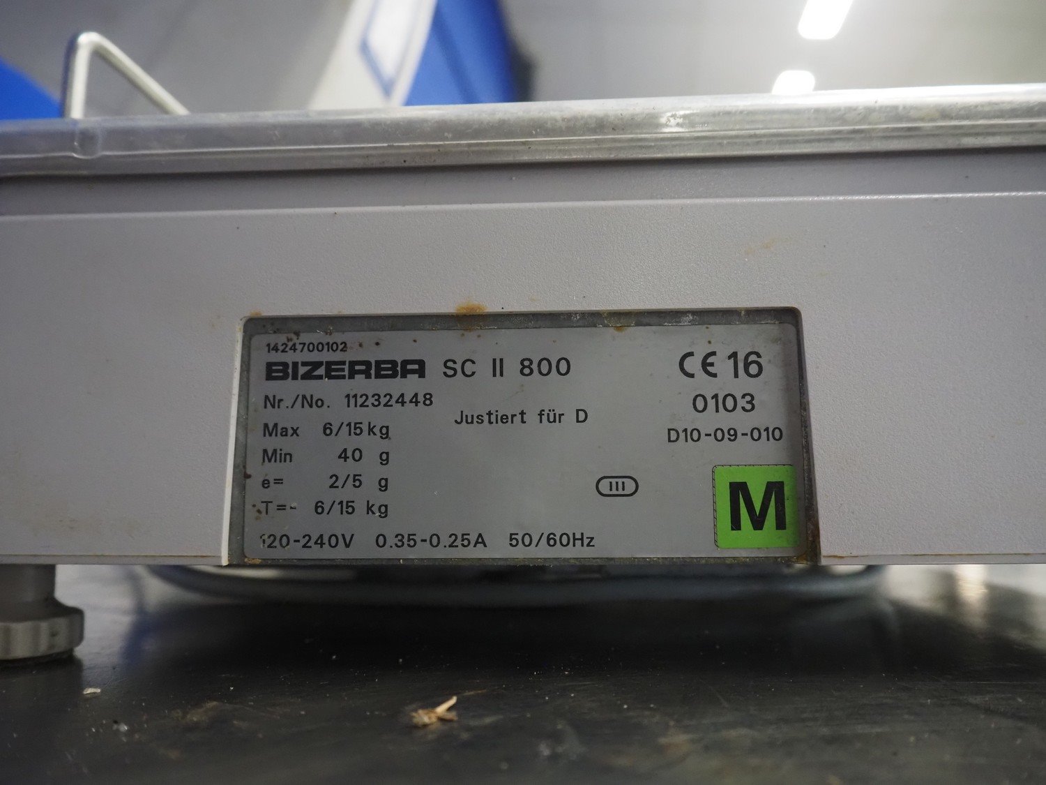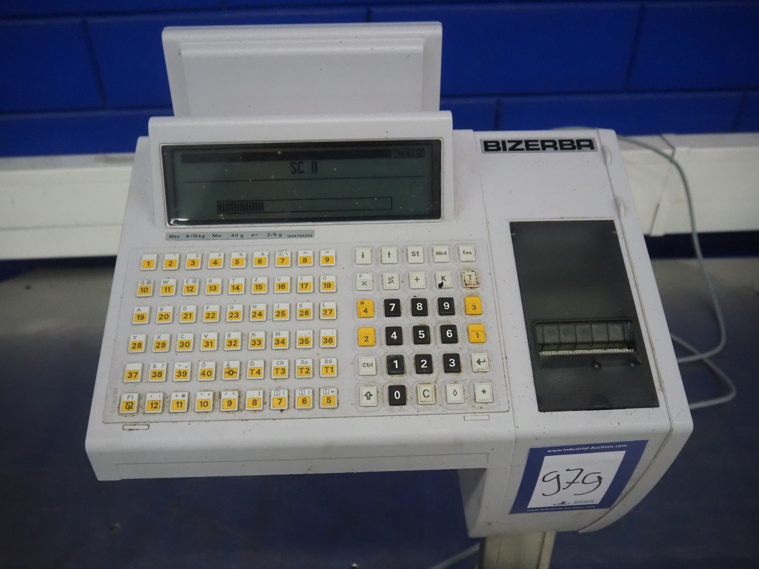 Bizerba weighing scale with indicator and label printer, type: SC II 800, number: 11232448, 120/240 V, 50/60 Hz, 0.35/0.25 A, maximum capacity: 6/15 kg, minimum capacity: 40 g, e= 2/5 g, T= -6/15 kg, scale dimensions: 340 mm x 270 mm, total dimensions: 520 mm x 370 mm x 550 mm. Kavel locatie: Looyenbeemd 11, 5652 BH Eindhoven, Nederland