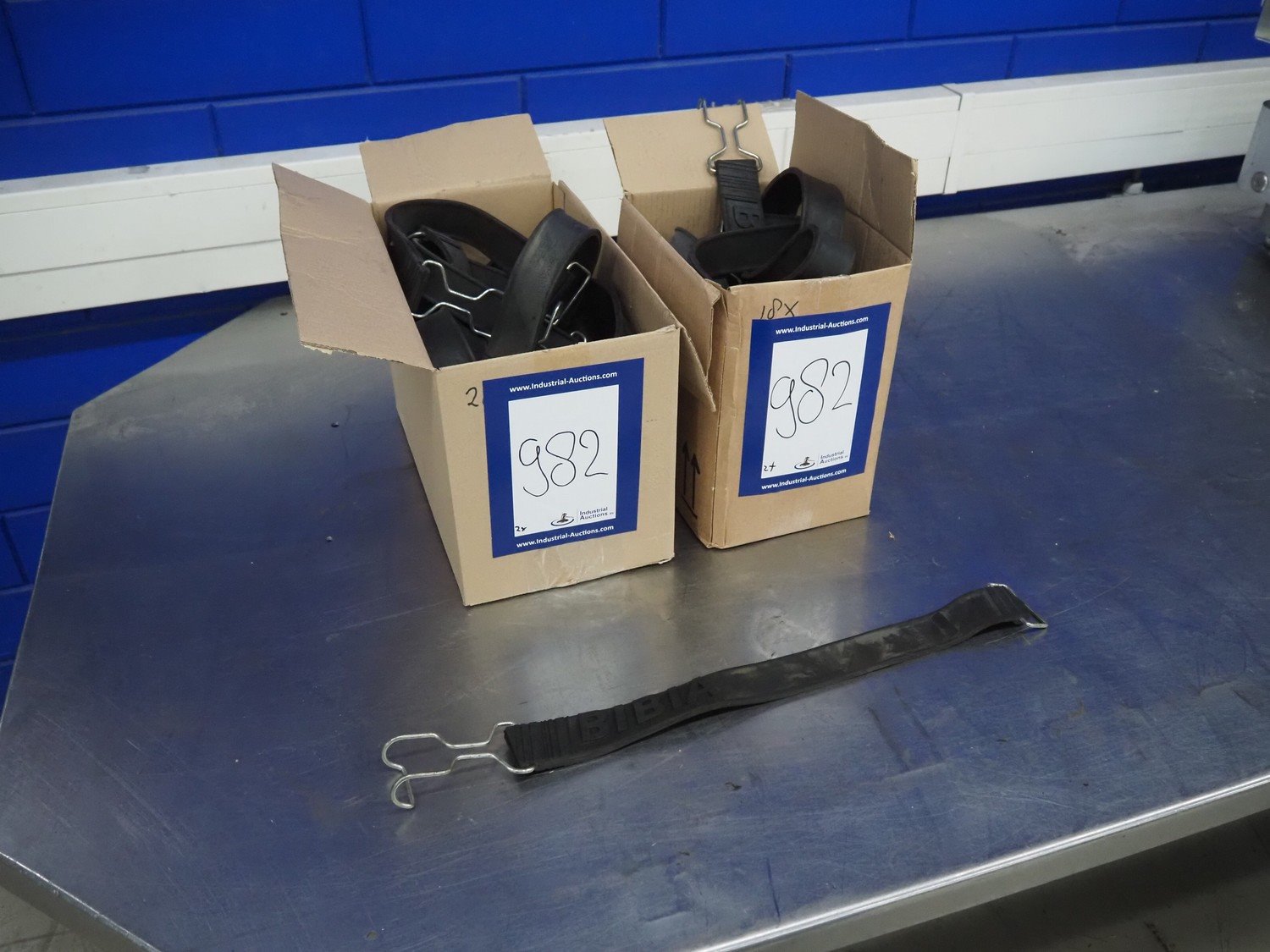 2 boxes with large amount of Bibia rubber straps, strap length: 620 mm. Kavel locatie: Looyenbeemd 11, 5652 BH Eindhoven, Nederland