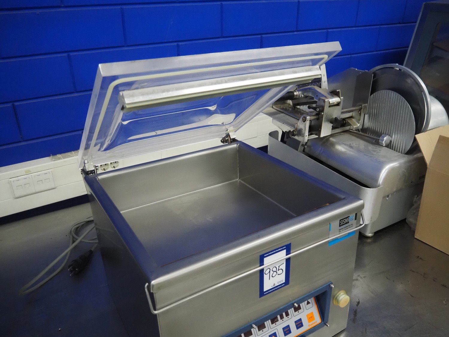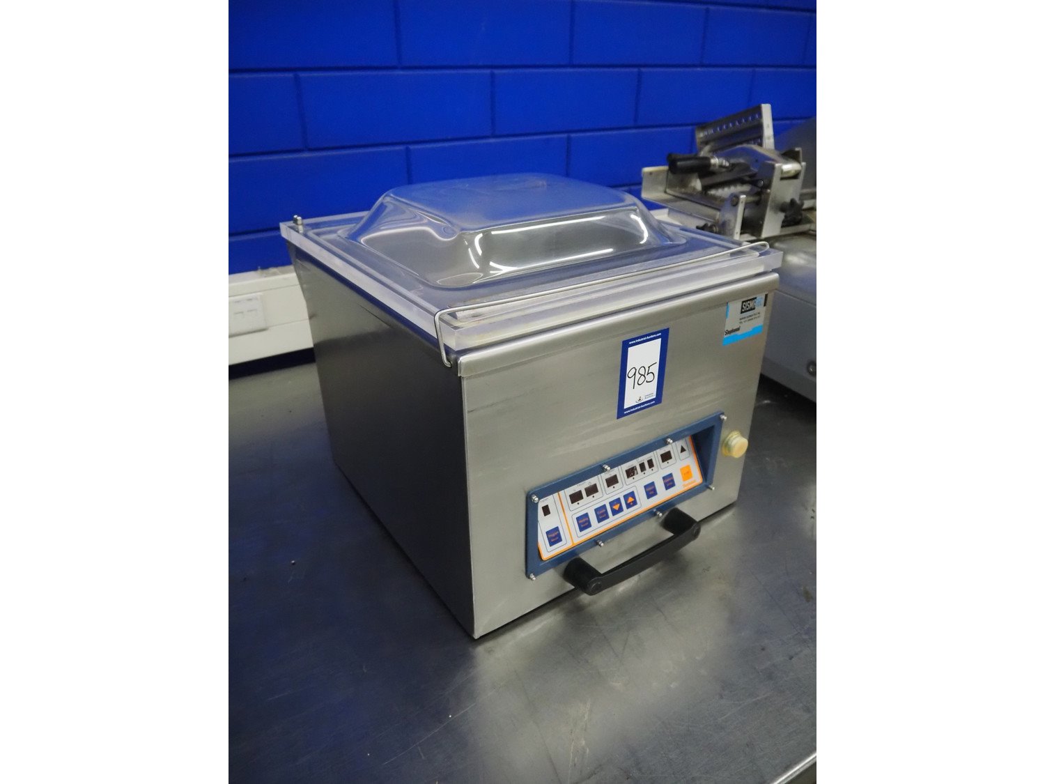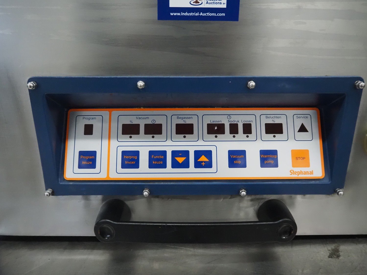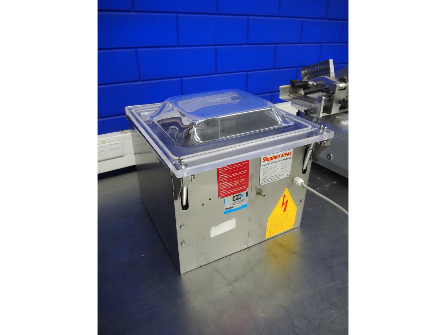 Stephan Alvac vacuum machine, type: Alvac-ID/G, number: 9058-4759, year of construction: 1998, 230 V, 1 Ph, 50 Hz, 4.9 A, 0.75 kW, seal length: 410 mm, chamber: 420 mm x 370 mm, Busch vacuum pump, type: 0021-336, capacity: 21 m³ per hour, total dimensions: 600 mm x 510 mm x 480 mm. Including vacuum bags, bag dimensions: 300 mm x 400 mm. Kavel locatie: Looyenbeemd 11, 5652 BH Eindhoven, Nederland