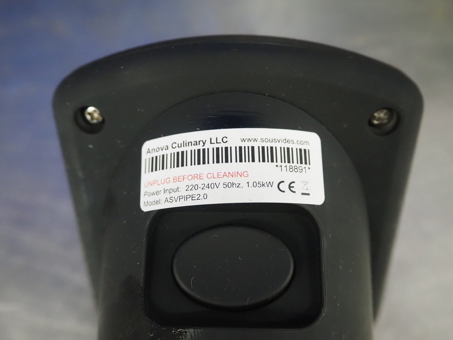 Anova sous vide stick, model: ASVPIPE1.2, 220/240 V, 60 Hz, 1.3 kW, dimensions: 450 mm x 250 mm x 110 mm. Kavel locatie: Looyenbeemd 11, 5652 BH Eindhoven, Nederland