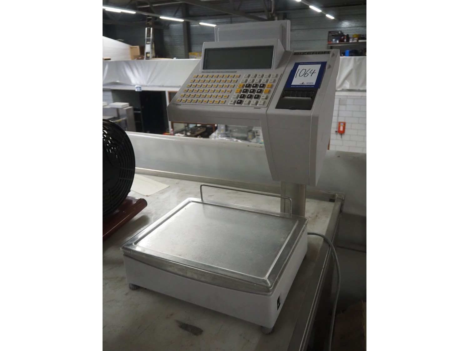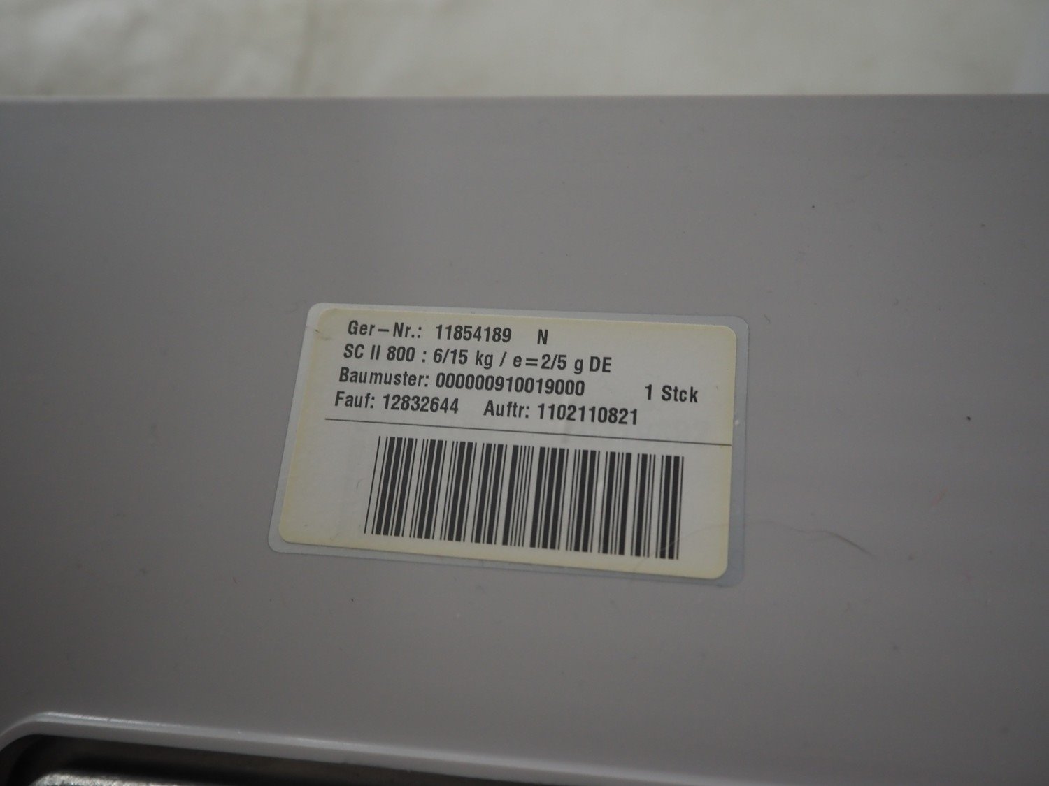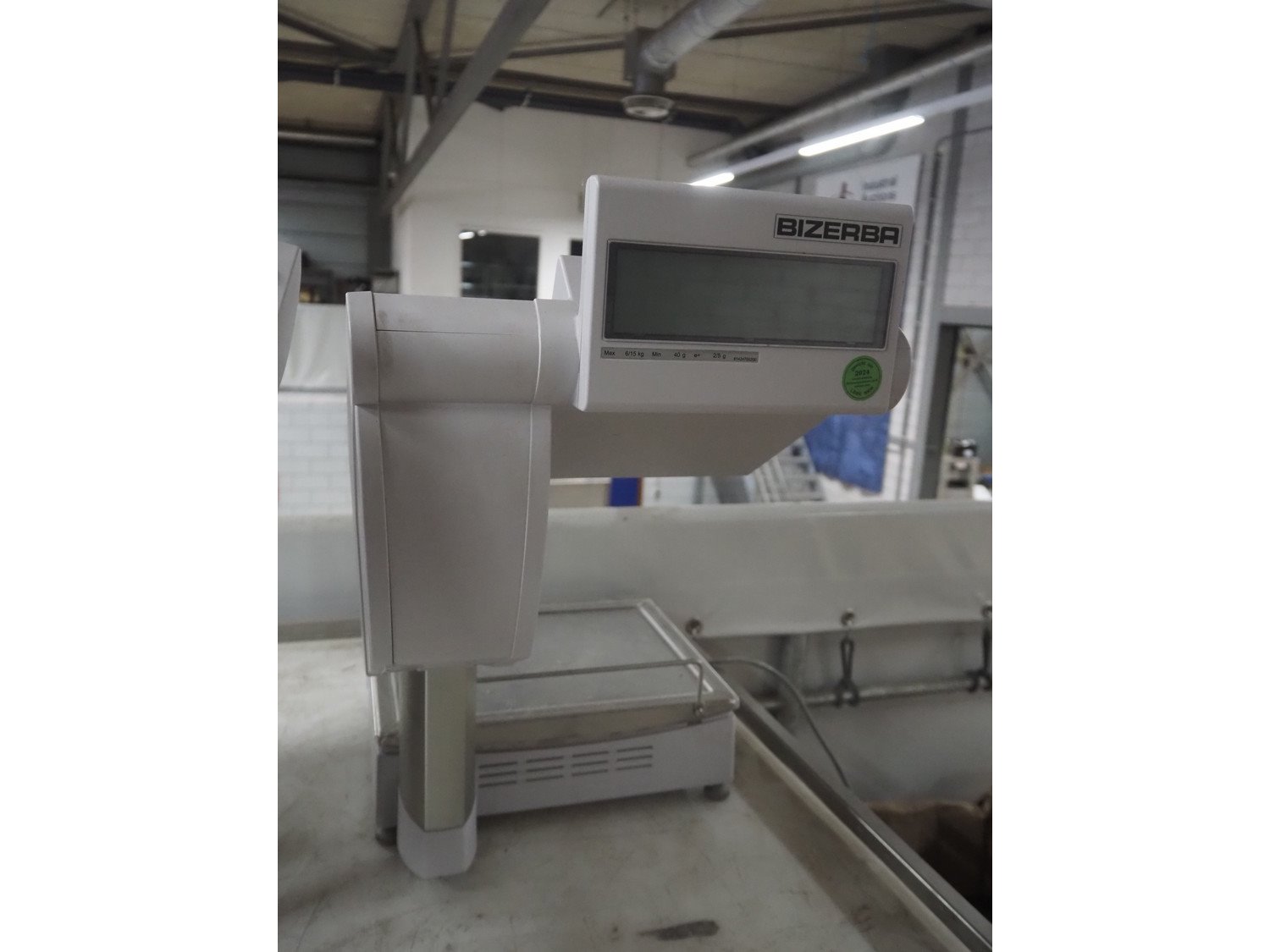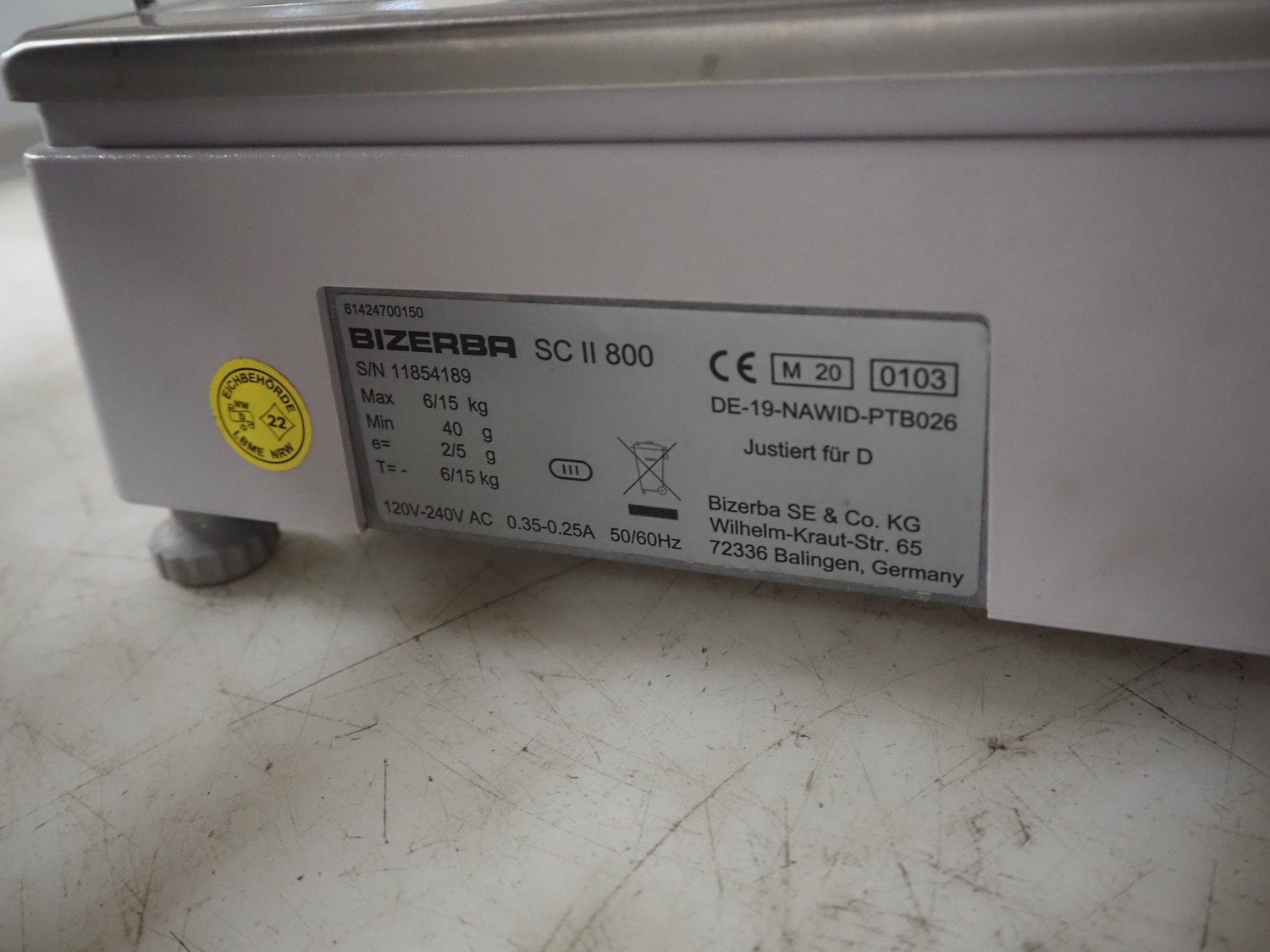 Bizerba weighing scale with label printer, type: SC II 800, serial number: 11854189, 120/240 V, 50/60 Hz, 0.35-0.25 A, minimum weight: 40 gram, maximum weight: 6/15 Kg, e= 2/5 gram, scale dimensions: 350 mm x 270 mm, total dimensions: 480 mm x 350 mm x 560 mm. Kavel locatie: Looyenbeemd 11, 5652 BH Eindhoven, Nederland