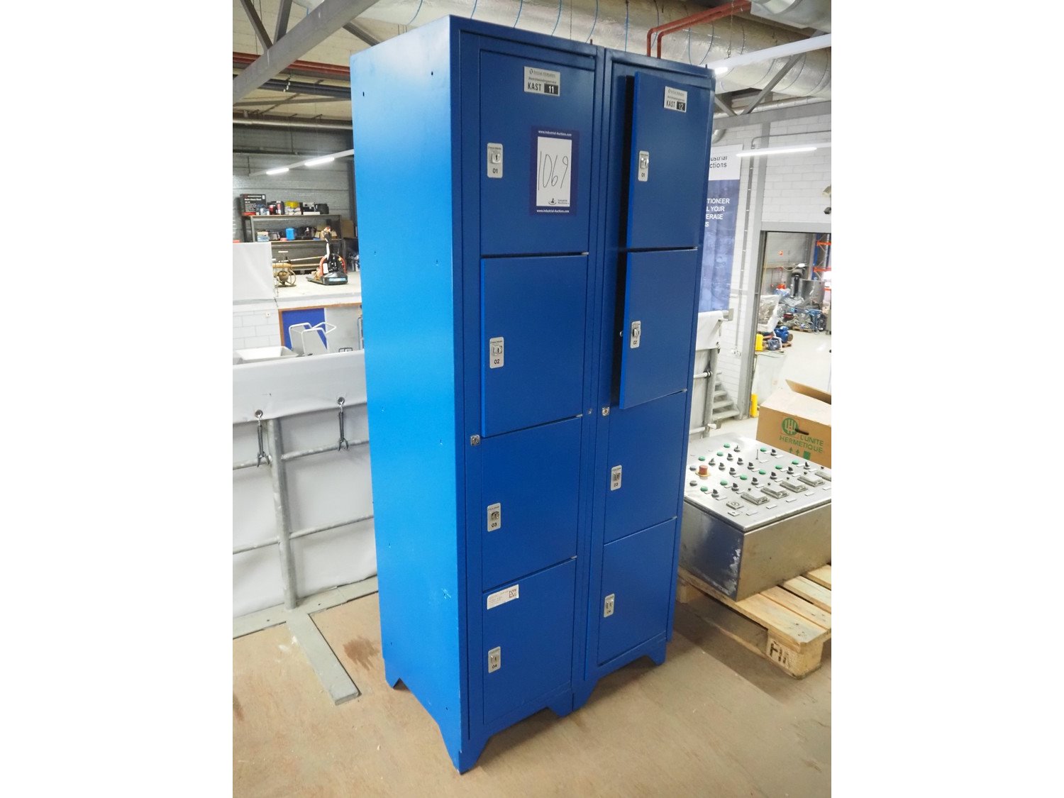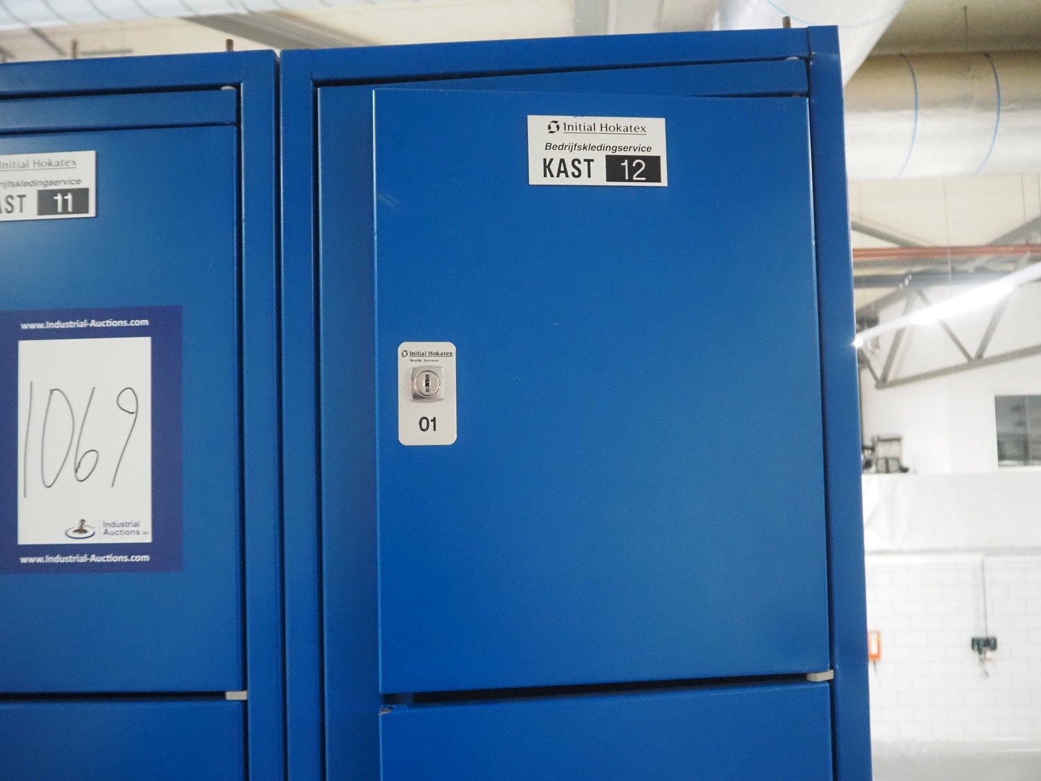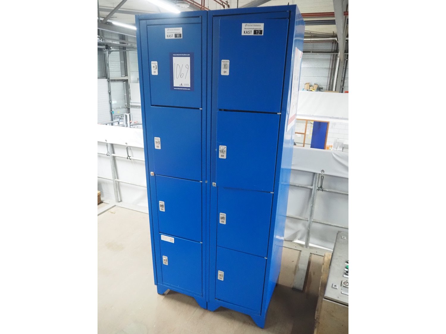 2 steel 4-door Initial Hokatex lockers, dimensions: (2x) 500 mm x 420 mm x 1900 mm. Without keys. Kavel locatie: Looyenbeemd 11, 5652 BH Eindhoven, Nederland