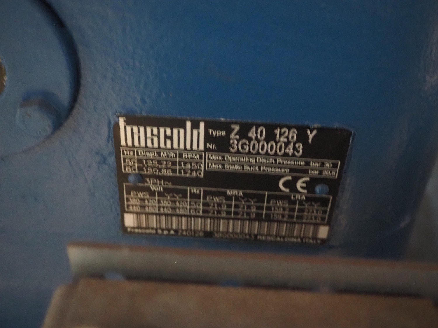 Frascold cooling compressor, type: Z 40 126 Y, number: 3G000043, dimensions: 1300 mm x 600 mm x 1200 mm. Kavel locatie: Looyenbeemd 11, 5652 BH Eindhoven, Nederland