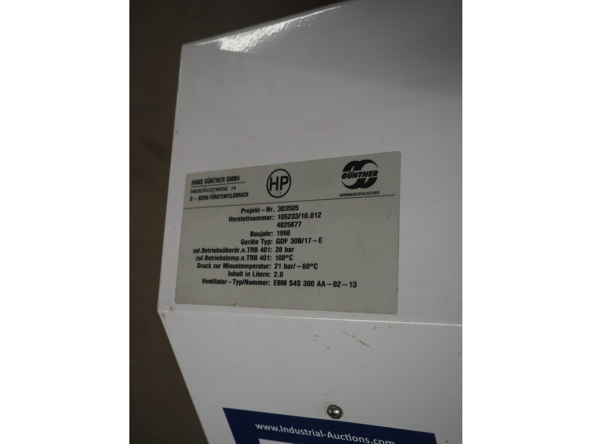 Güntner evaporator, type: GDF 30B/17-E, year of construction: 1998, dimensions: 500 mm x 800 mm x 240 mm. Kavel locatie: Looyenbeemd 11, 5652 BH Eindhoven, Nederland