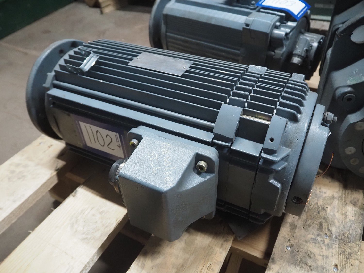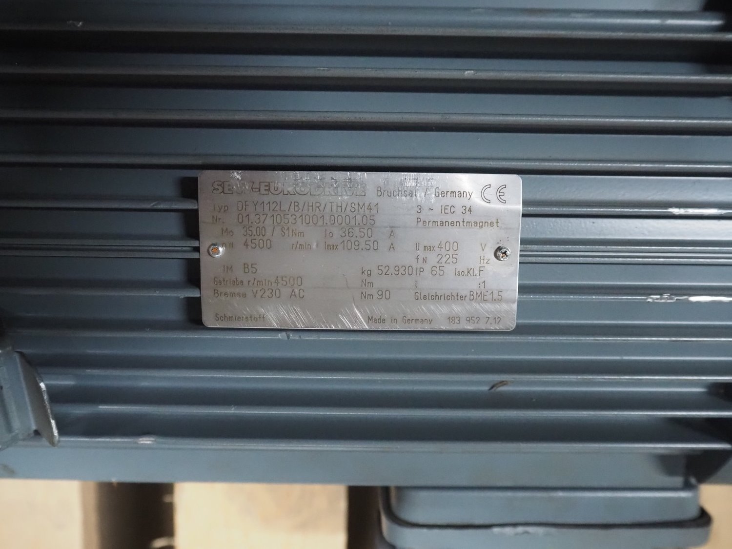 SEW-Eurodrive motor, type: KV77 DY112LB/HR/TH/SM41, dimensions: 470 mm x 190 mm x 290 mm and 290 mm x 200 mm x 340 mm. Kavel locatie: Looyenbeemd 11, 5652 BH Eindhoven, Nederland