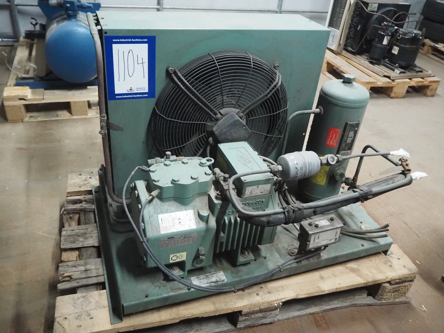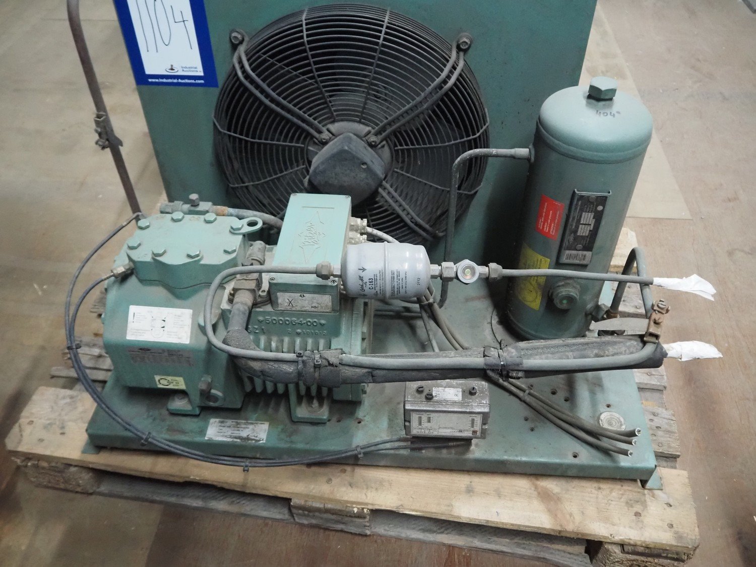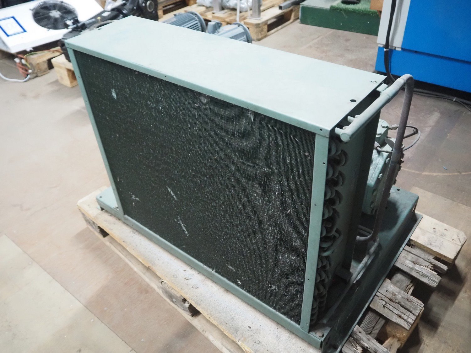 Bitzer Kühlmaschinenbau GmbH condensing unit with cooling compressor, type: LH64/FS 75, serial number: 66023205, type cooling compressor: 2DC-3.2Y-40S, serial number: 1683007071, capacity: 13.4/16.2 m³ per hour, dimensions: 750 mm x 700 mm x 560 mm. Kavel locatie: Looyenbeemd 11, 5652 BH Eindhoven, Nederland