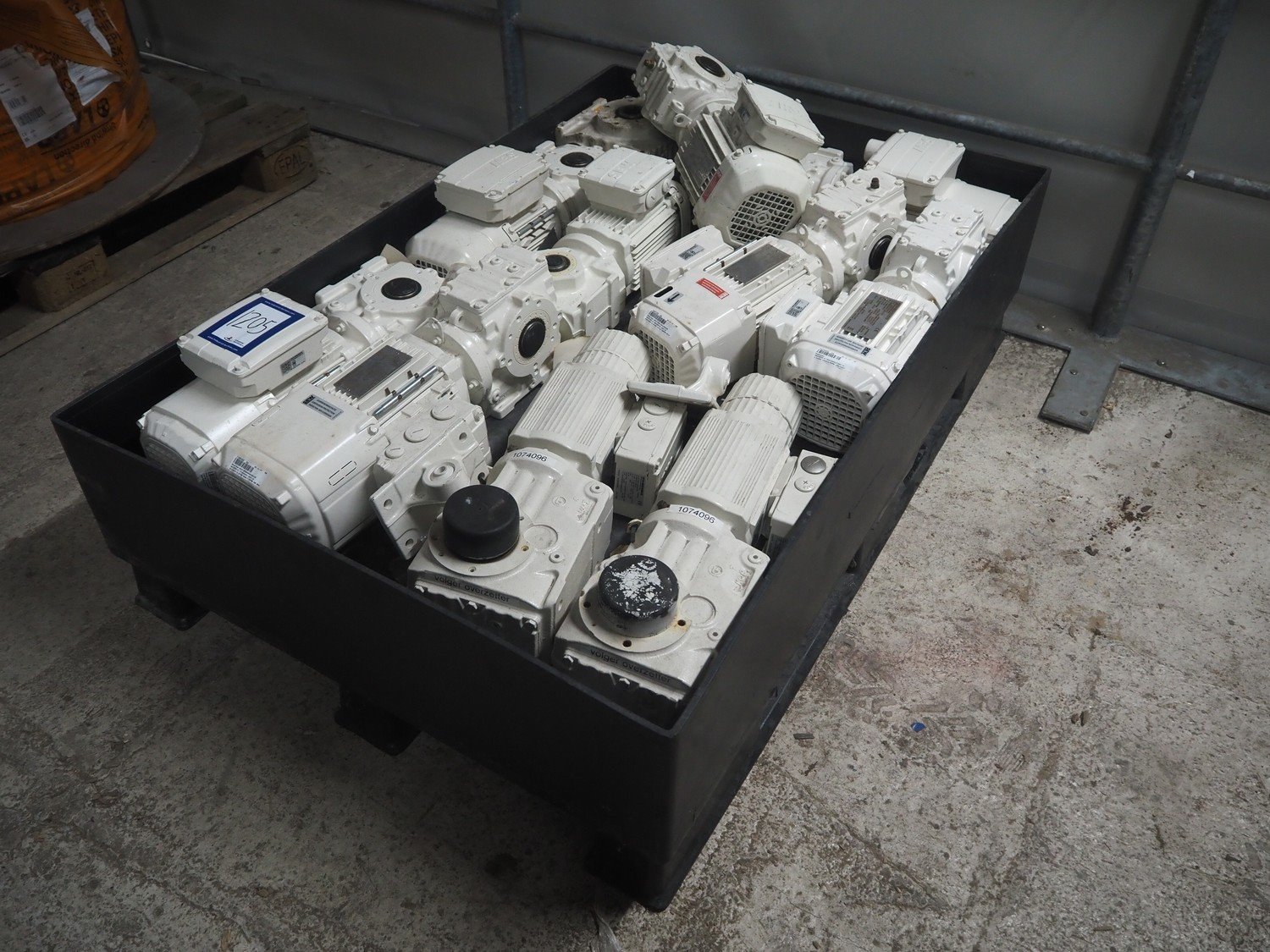 Pallet with large amount of SEW-Eurodrive electromotors. Kavel locatie: Looyenbeemd 11, 5652 BH Eindhoven, Nederland