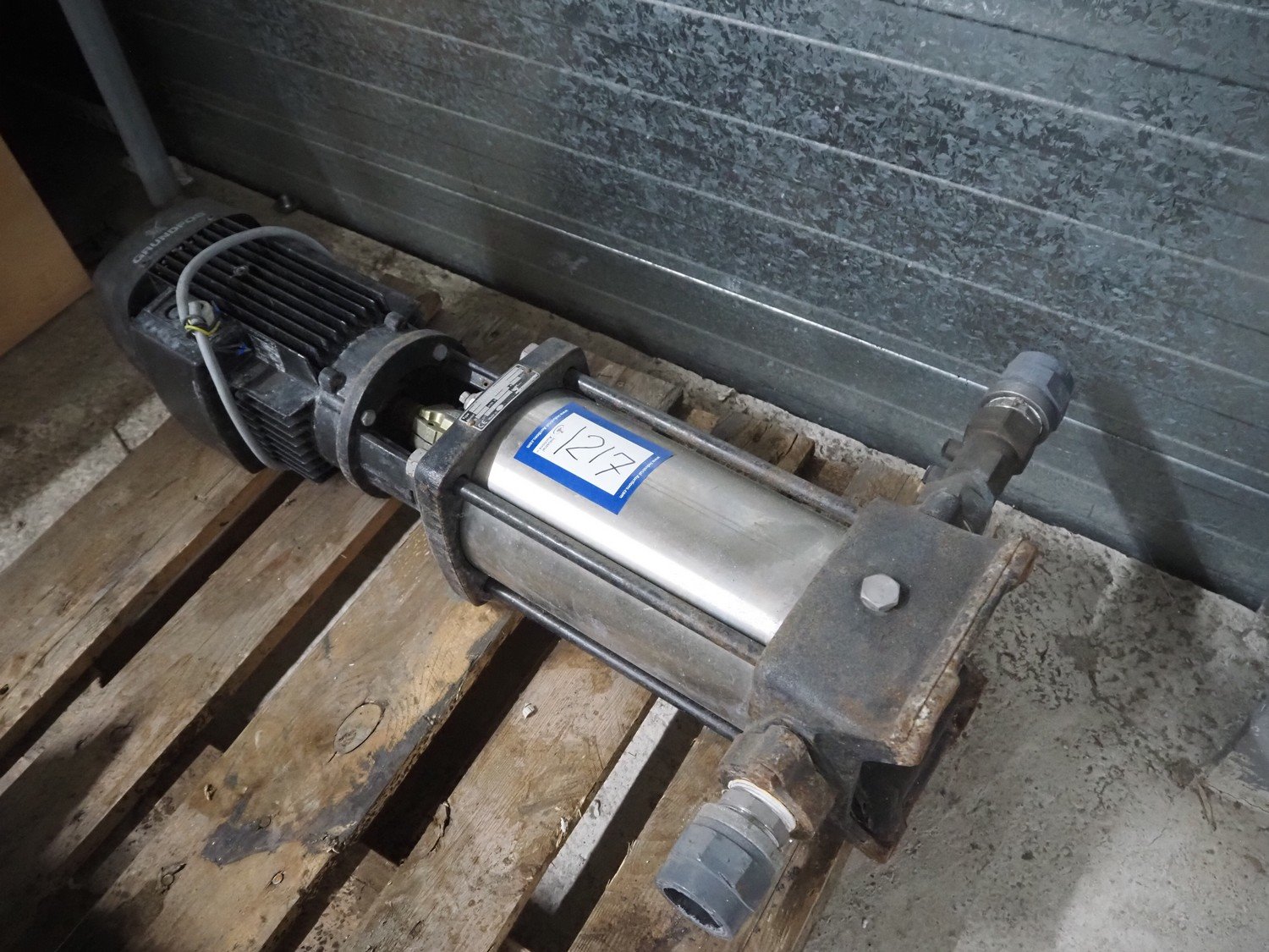Grundfos circulation pump, dimensions: 860 mm x 550 mm x 200 mm. Kavel locatie: Looyenbeemd 11, 5652 BH Eindhoven, Nederland
