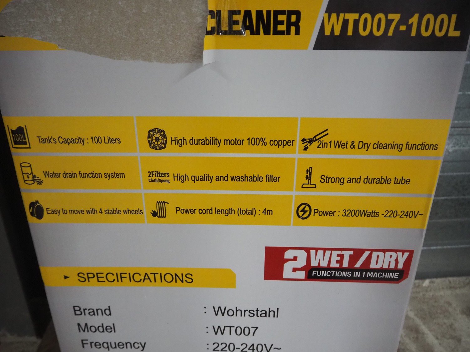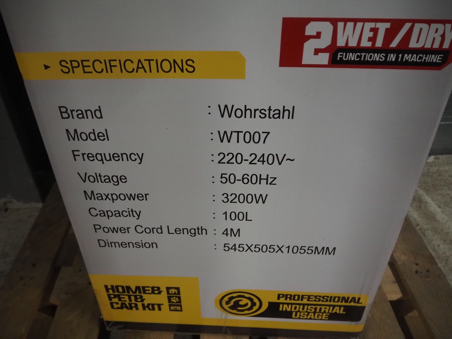 Wörstahl wet-dry vacuum cleaner, model: WT007, dimensions: 545 mm x 505 mm x 1055 mm. Kavel locatie: Looyenbeemd 11, 5652 BH Eindhoven, Nederland