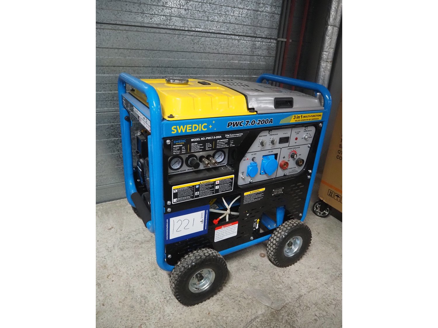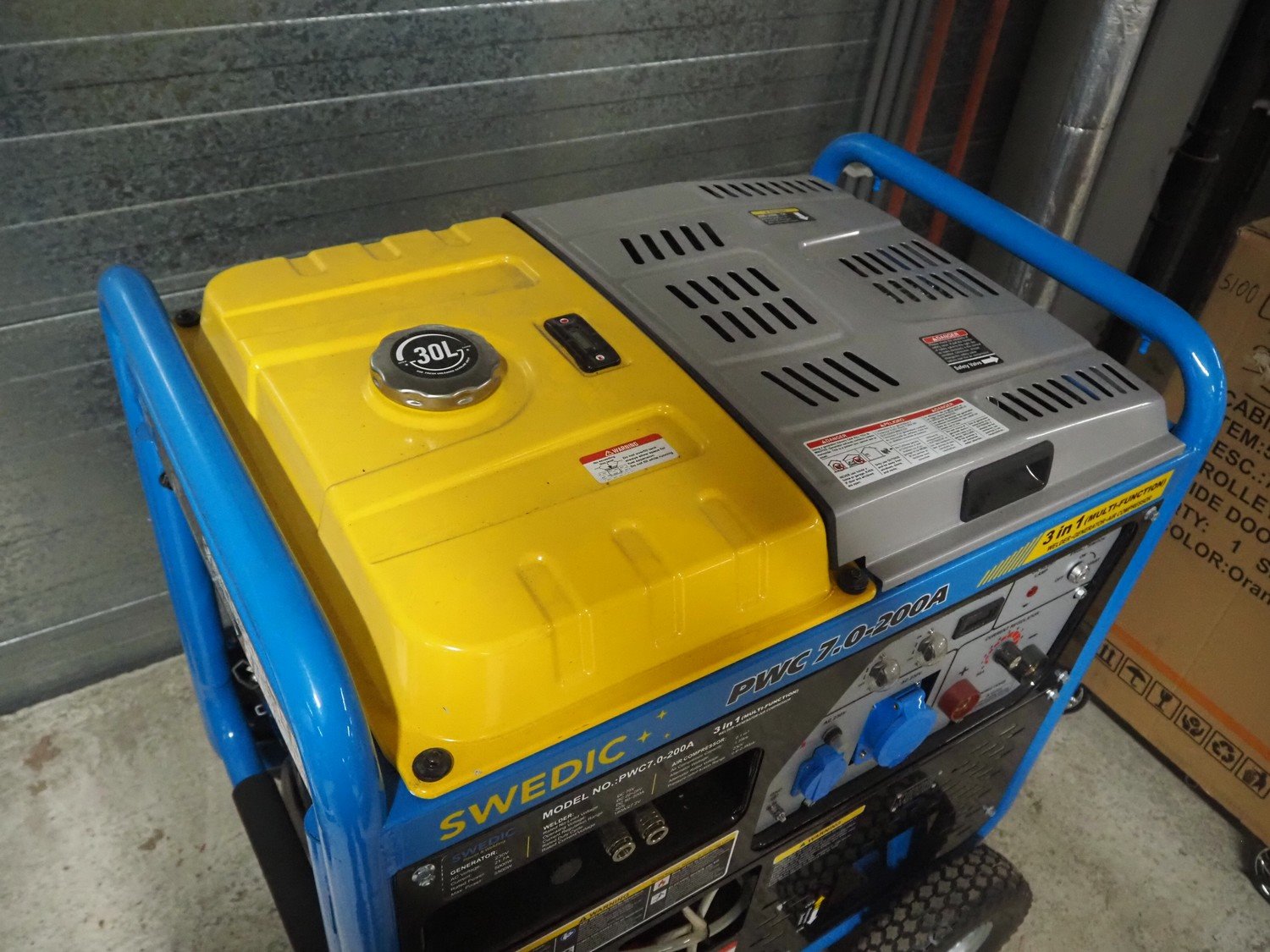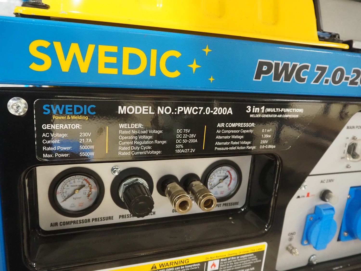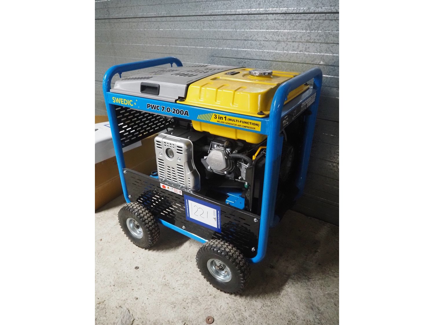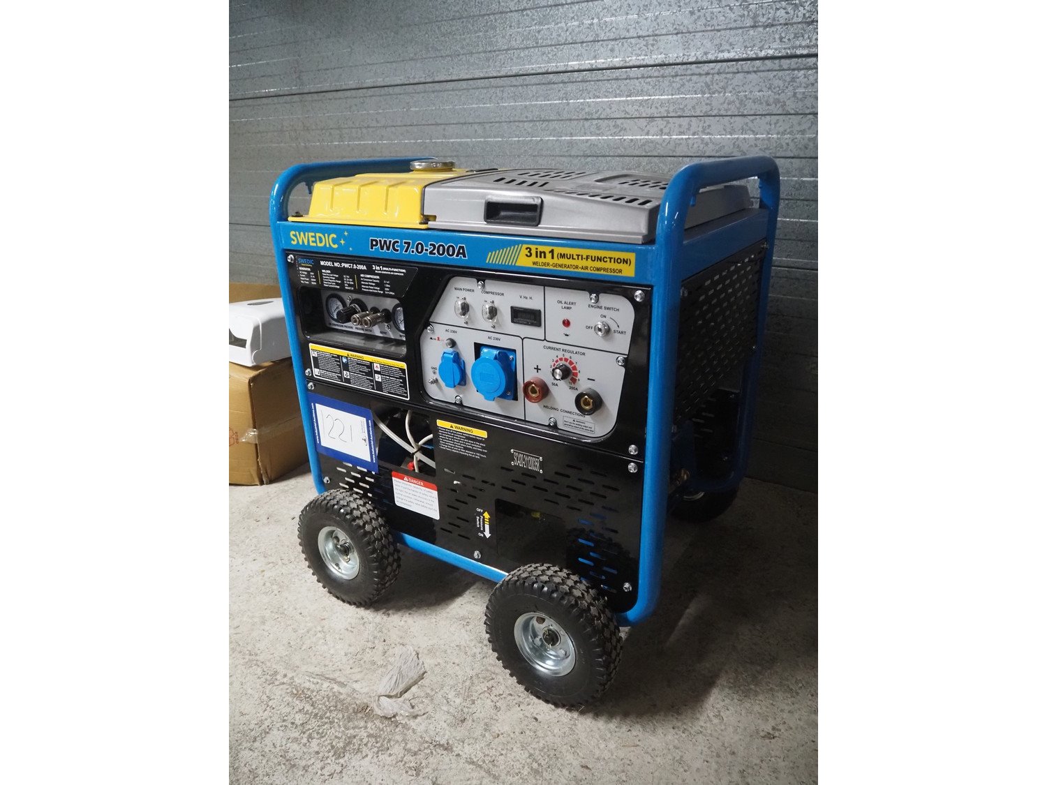 Swedic welding, air compressor and generating tool, model: PWC7.0-200A, aggregate 230 V, welding machine 200 A, air compressor 7 Bar, dimensions: 850 mm x 600 mm x 950 mm. Never used. Kavel locatie: Looyenbeemd 11, 5652 BH Eindhoven, Nederland