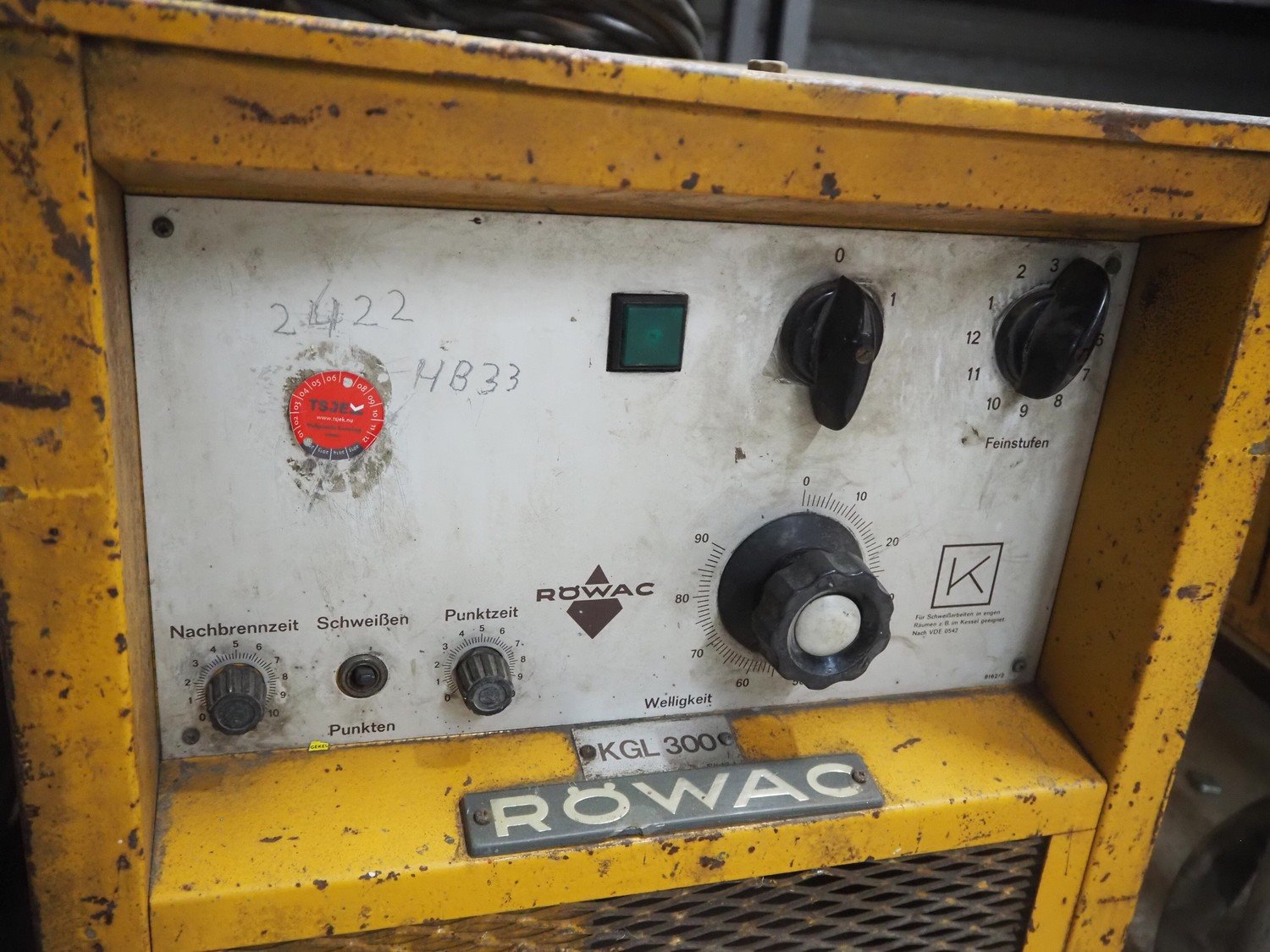 Röwac welding machine, type: KGL 300, number: 3001232, dimensions: 410 mm x 780 mm x 740 mm, 410 mm x 1050 mm x 760 mm. Kavel locatie: Looyenbeemd 11, 5652 BH Eindhoven, Nederland