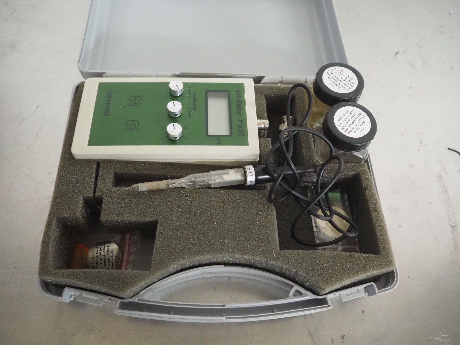 Case with Labomess PH-Meter, model: P 600, range: 0 - 14 pH, range: 0.01 pH, dimensions: 270 mm x 230 mm x 90 mm. Kavel locatie: Looyenbeemd 11, 5652 BH Eindhoven, Nederland