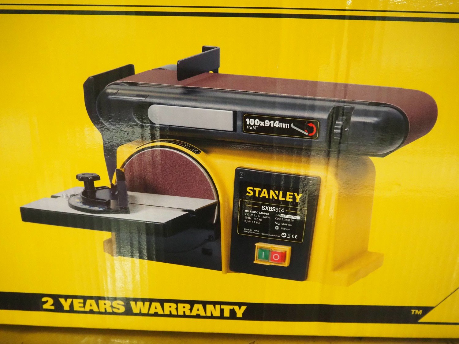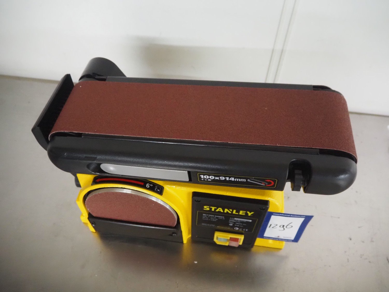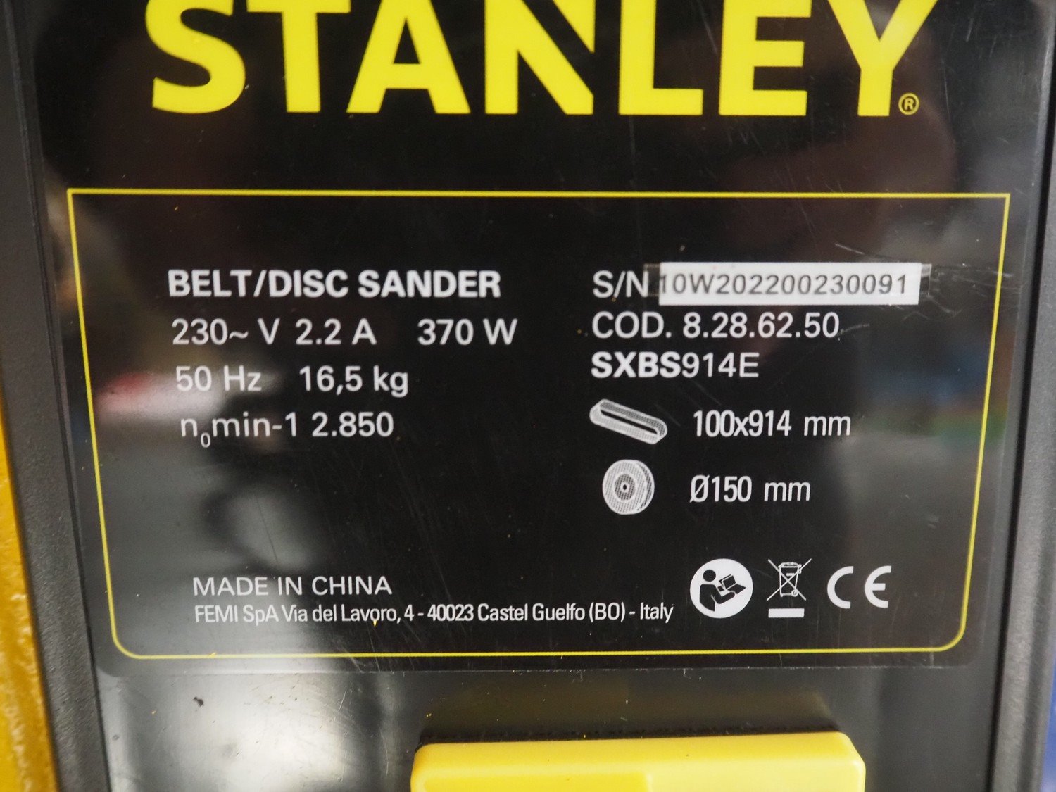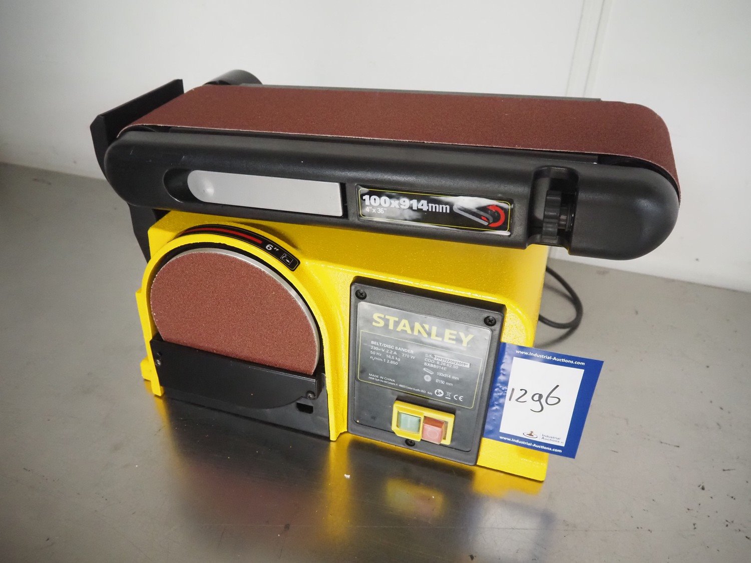 Stanley belt/disc grinder, serial number: 10W202200230091, 230 V, 1 Ph, 50 Hz, 16.5 kg, grinding belt width: 100 mm, grinding disc diameter: 150 mm, total dimensions: 560 mm x 280 mm x 320 mm. Kavel locatie: Looyenbeemd 11, 5652 BH Eindhoven, Nederland