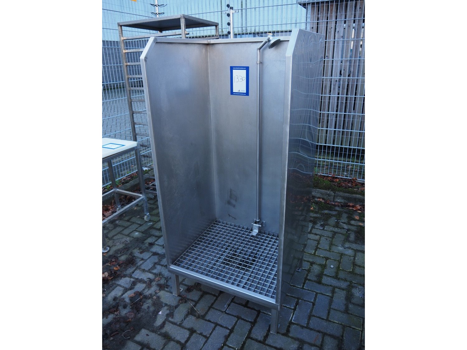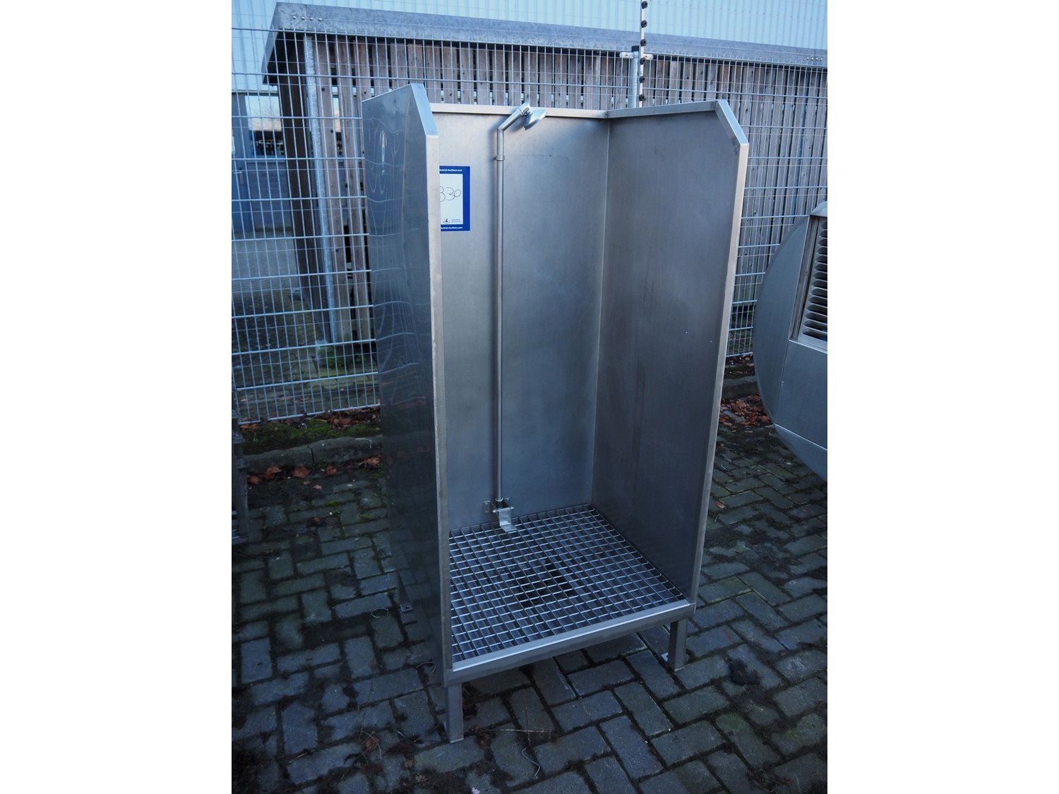 S/s apron washer, dimensions: 750 mm x 800 mm x 1700 mm. Kavel locatie: Looyenbeemd 11, 5652 BH Eindhoven, Nederland