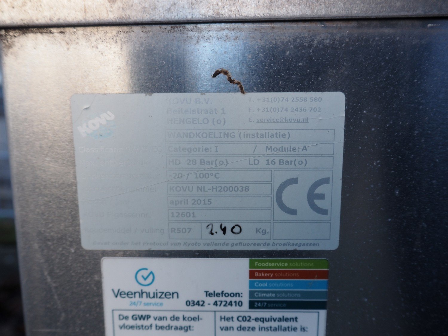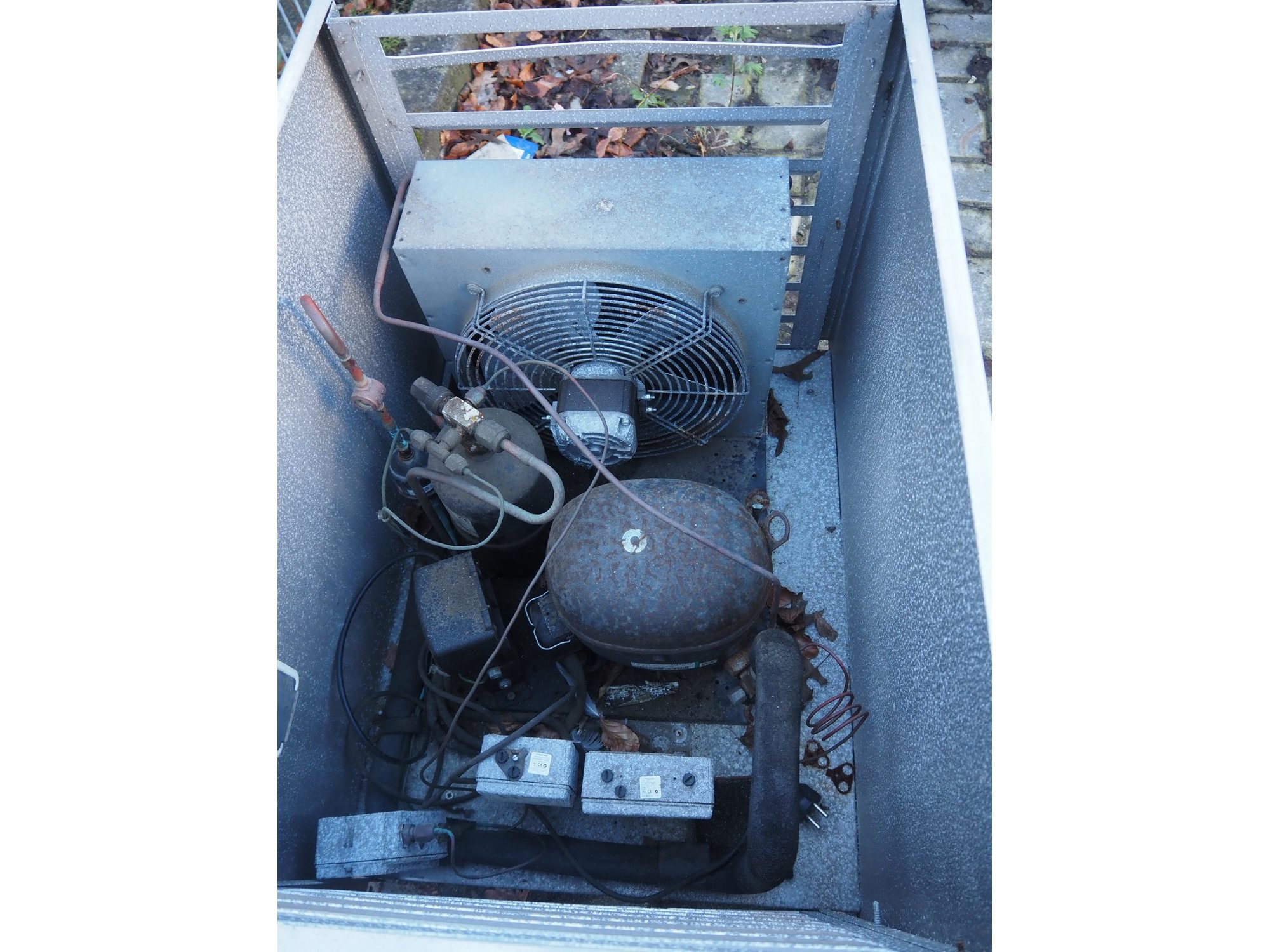 S/s cabinet with Kovu cooling compressor, refrigerant: R507, dimensions: 770 mm x 570 mm x 600 mm. Kavel locatie: Looyenbeemd 11, 5652 BH Eindhoven, Nederland