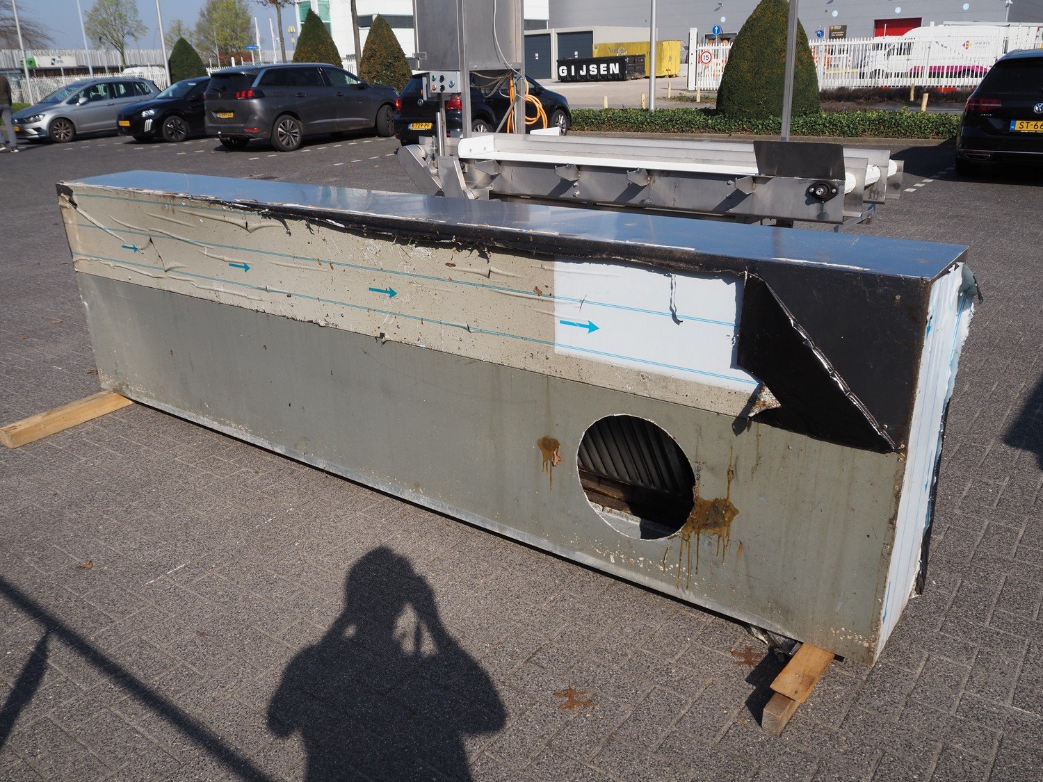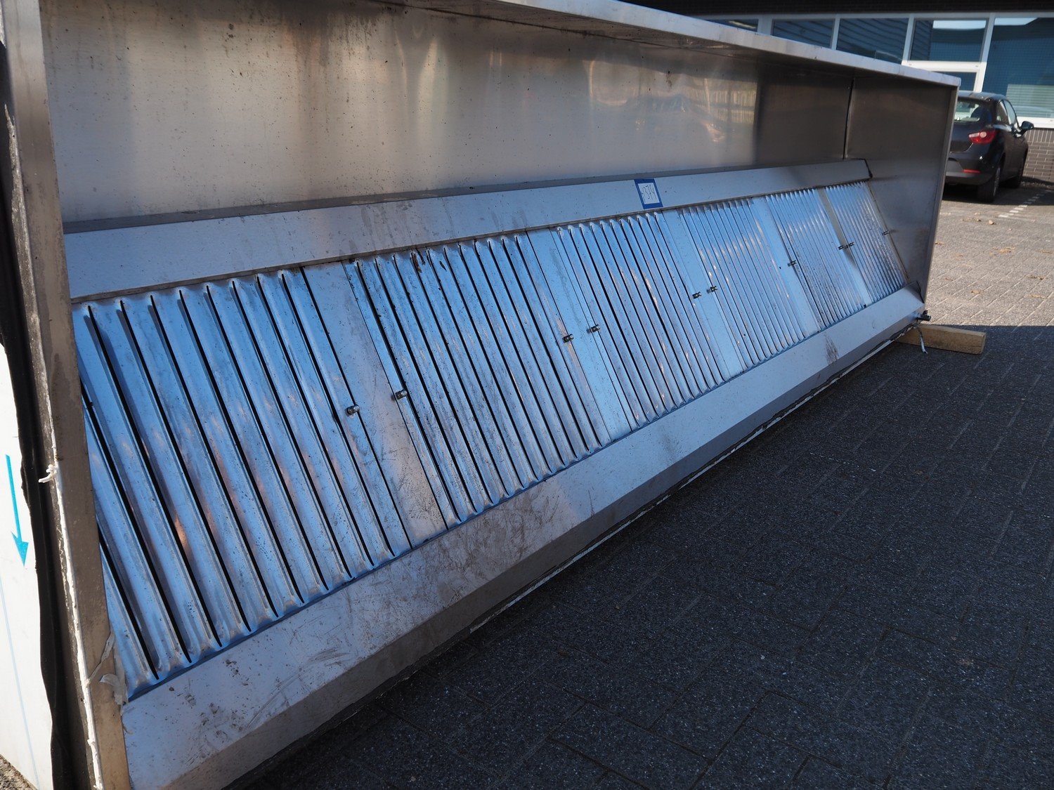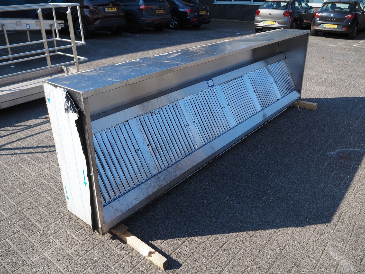 S/s extraction hood, dimensions: 3500 mm x 900 mm x 1020 mm. Kavel locatie: Looyenbeemd 11, 5652 BH Eindhoven, Nederland