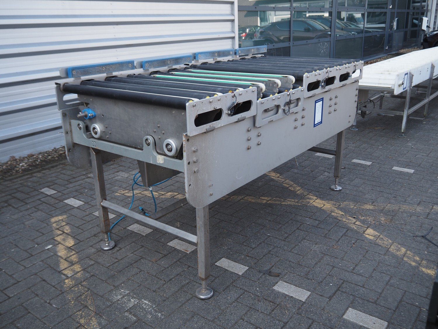 Driven roller conveyor, plastic rollers, roller width: 970 mm, total dimensions: 2250 mm x 1050 mm x 1250 mm. Kavel locatie: Looyenbeemd 11, 5652 BH Eindhoven, Nederland