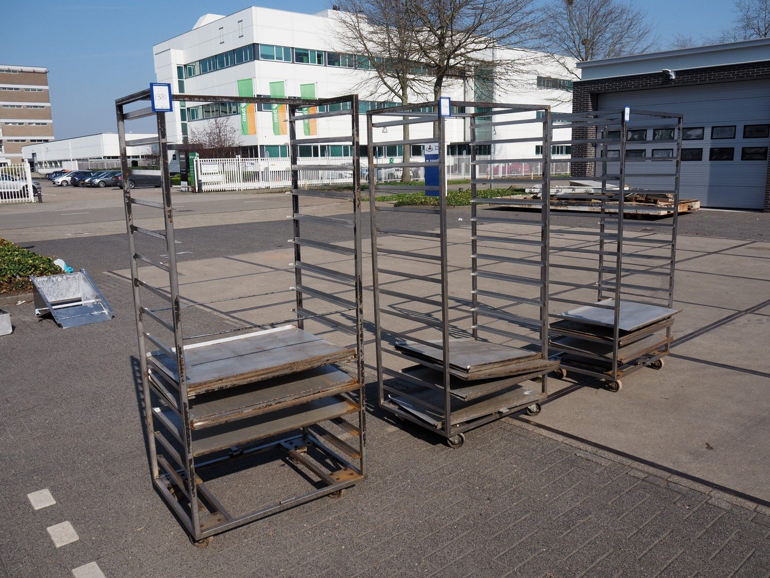 2 s/s trolleys, 14 floors each, floor dimensions: 810 mm x 630 mm, total dimensions: (2x) 870 mm x 650 mm x 1940 mm. Kavel locatie: Looyenbeemd 11, 5652 BH Eindhoven, Nederland