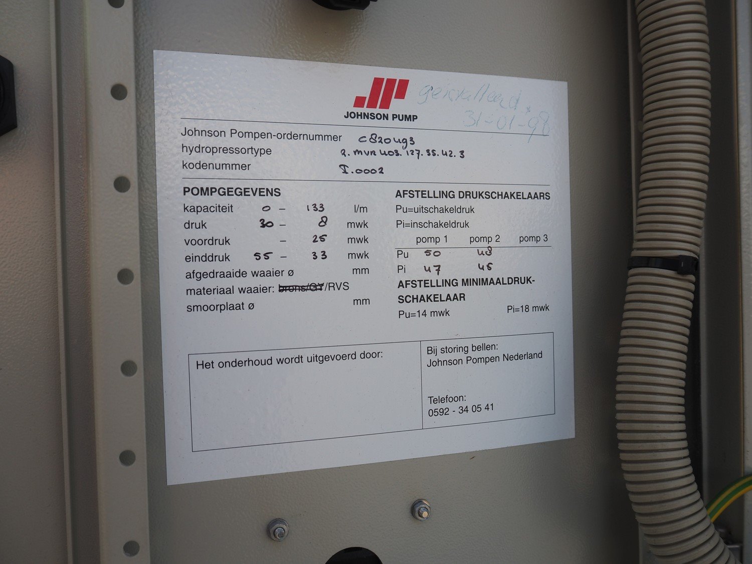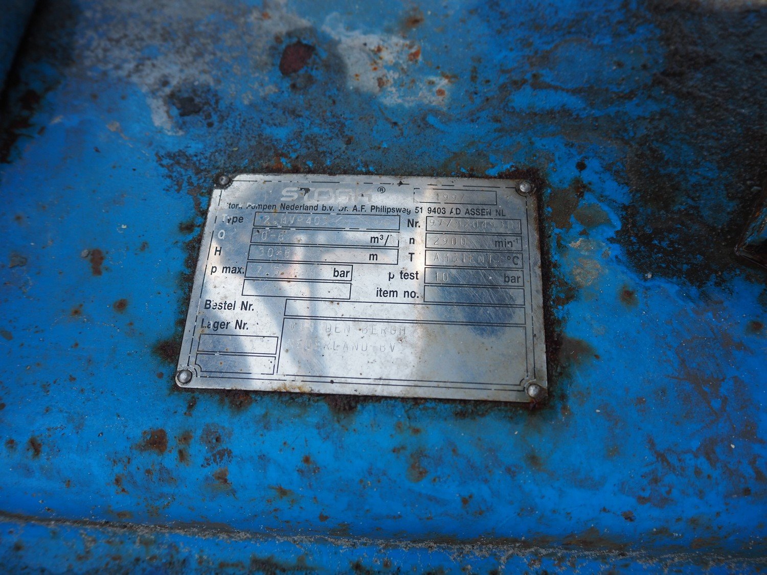 Stork pump installation, type: (2x) 2.MVR 403, capacity: 8 m³ per hour, dimensions: 1150 mm x 700 mm x 1270 mm. Kavel locatie: Looyenbeemd 11, 5652 BH Eindhoven, Nederland