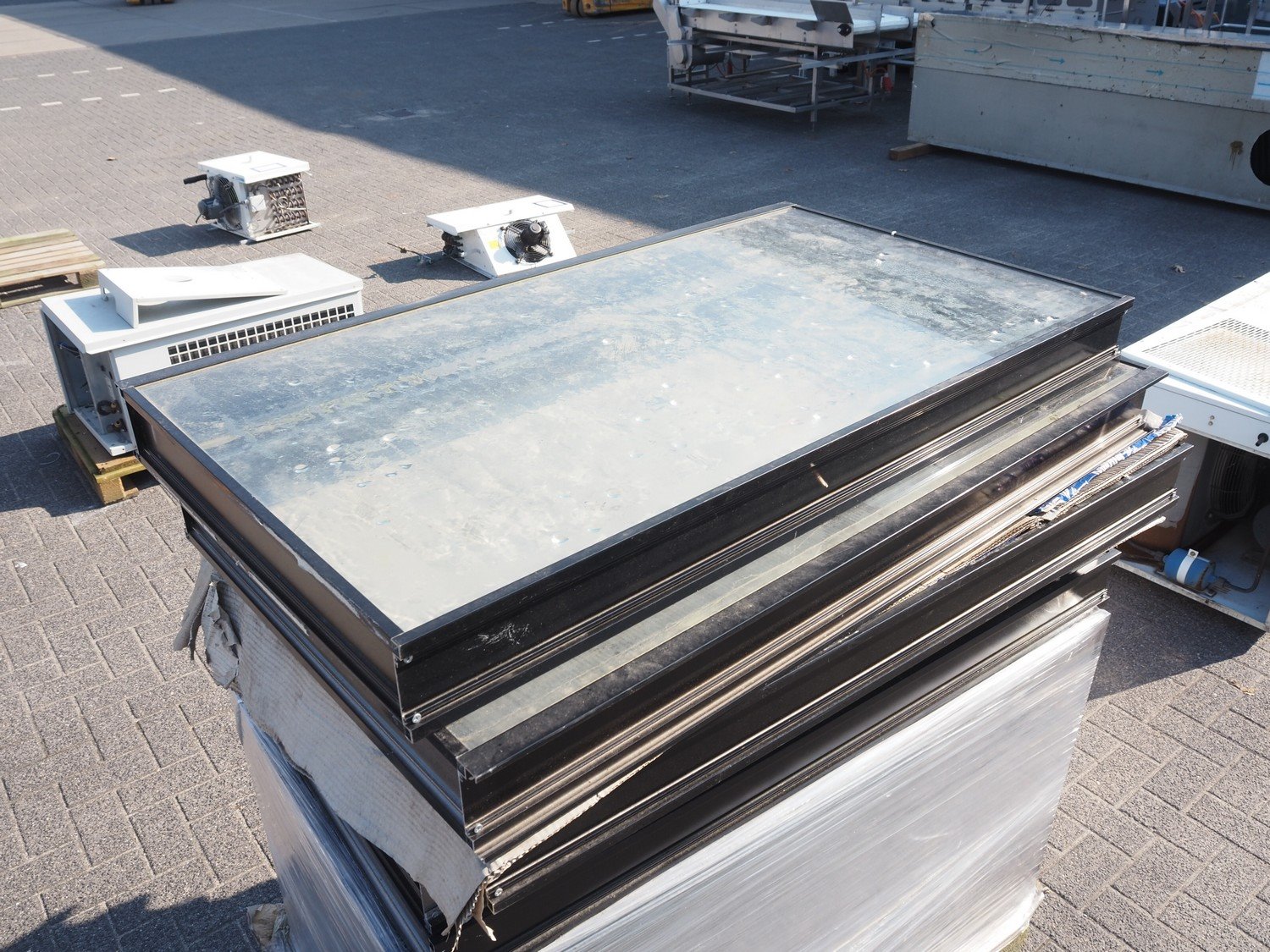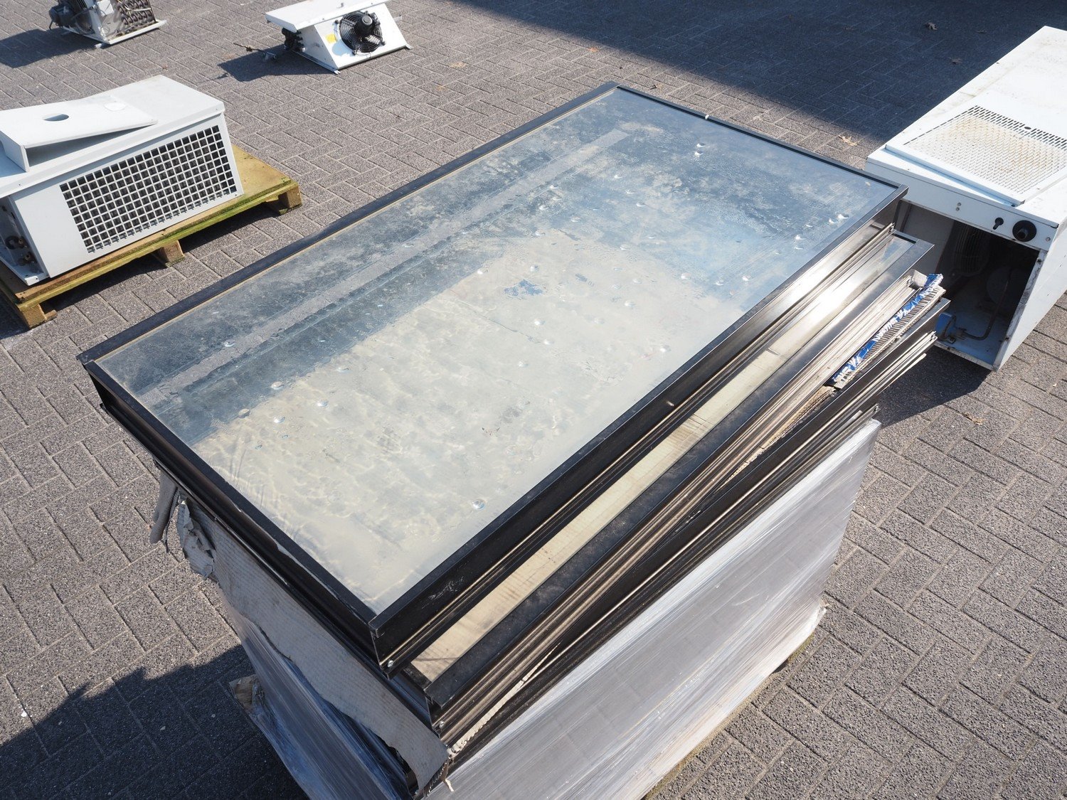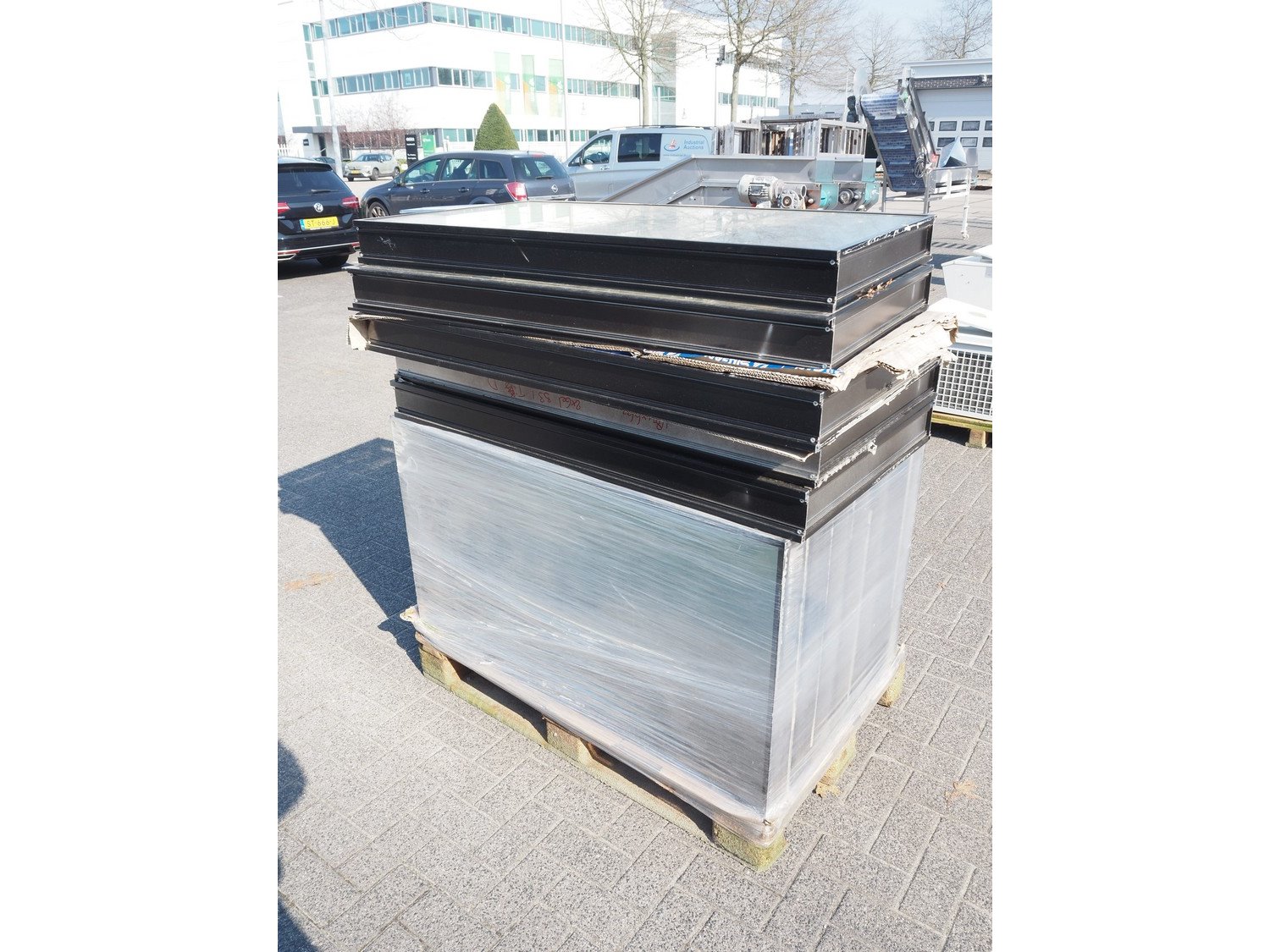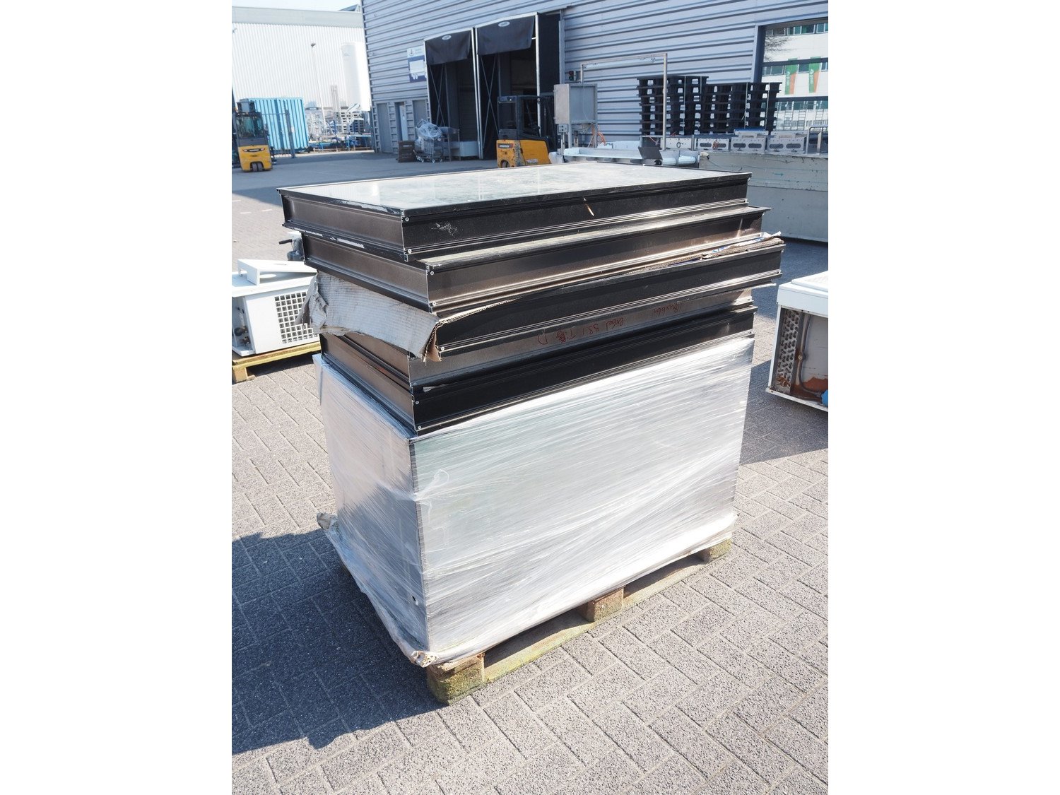 Pallet with 12 windows, dimensions: (12x) 1185 mm x 660 mm x 110 mm. Kavel locatie: Looyenbeemd 11, 5652 BH Eindhoven, Nederland