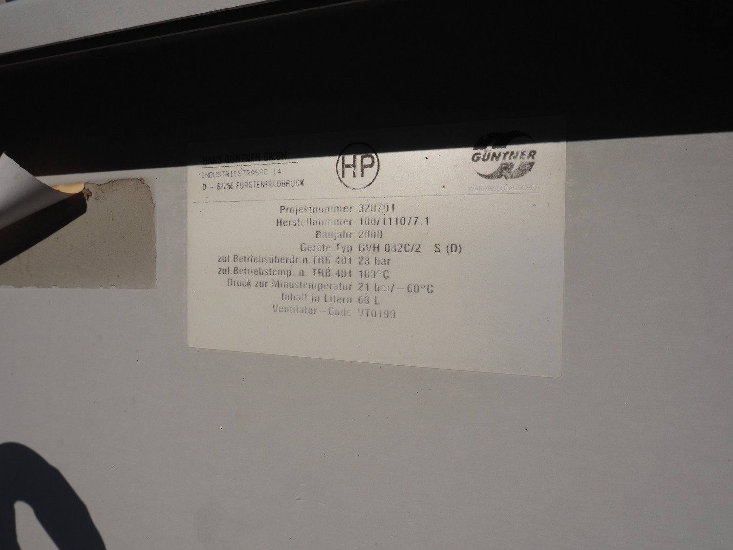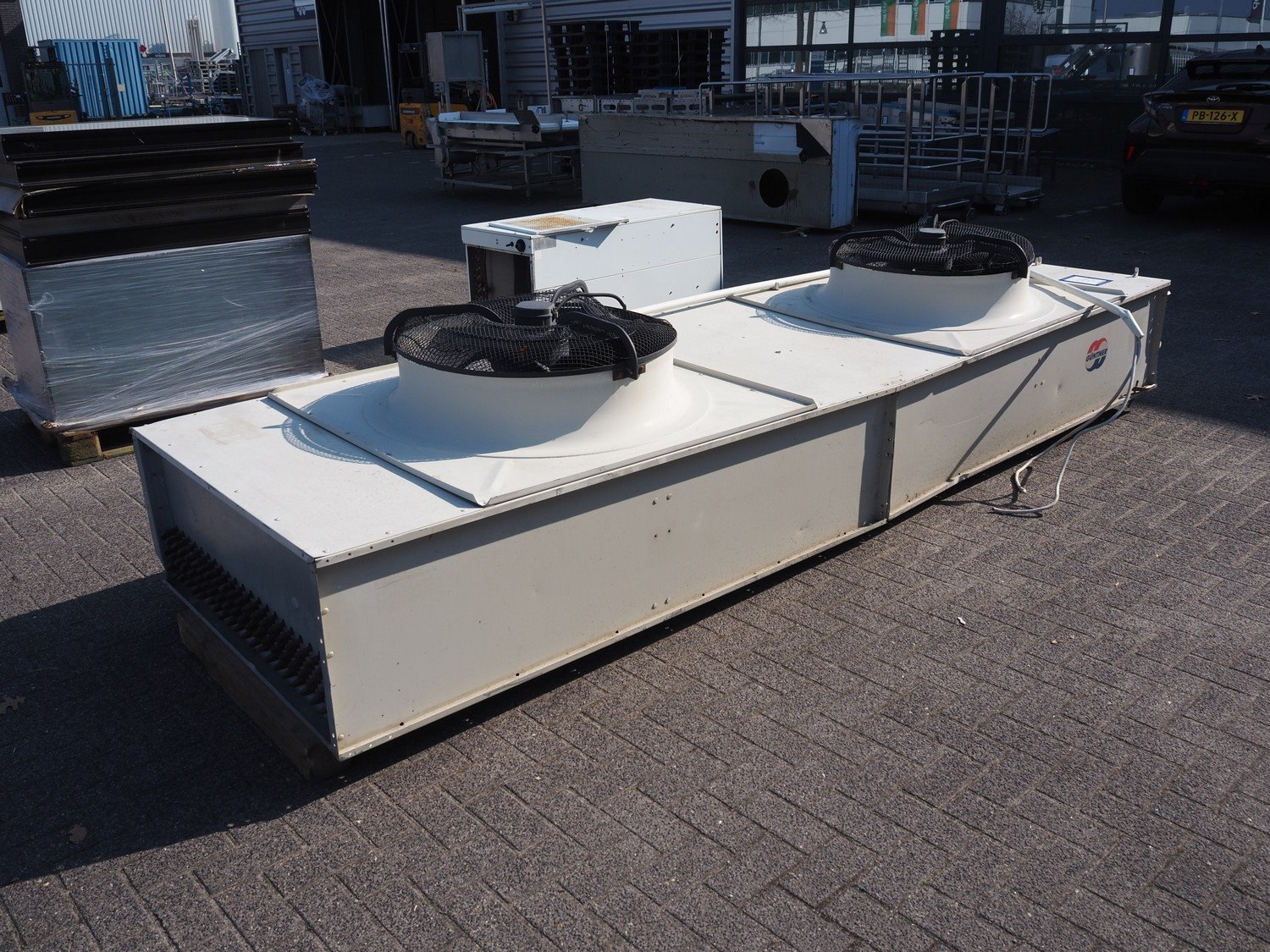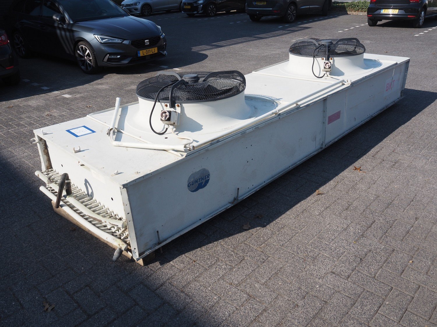 Güntner evaporator, 2 fans, type: GVH 0820, serial number: 100/11107.1/2, year of construction: 2000, 23 Bar, 100°C, 63 L, total dimensions: 4100 mm x 900 mm x 1400 mm. Kavel locatie: Looyenbeemd 11, 5652 BH Eindhoven, Nederland