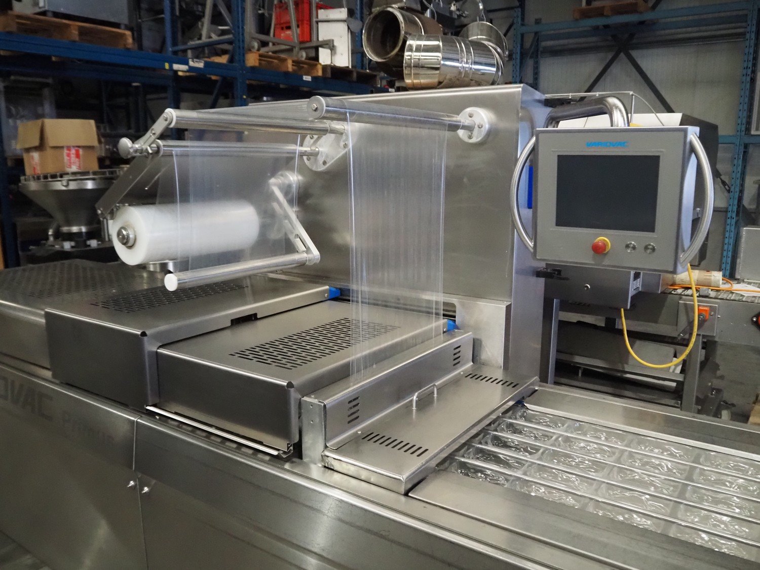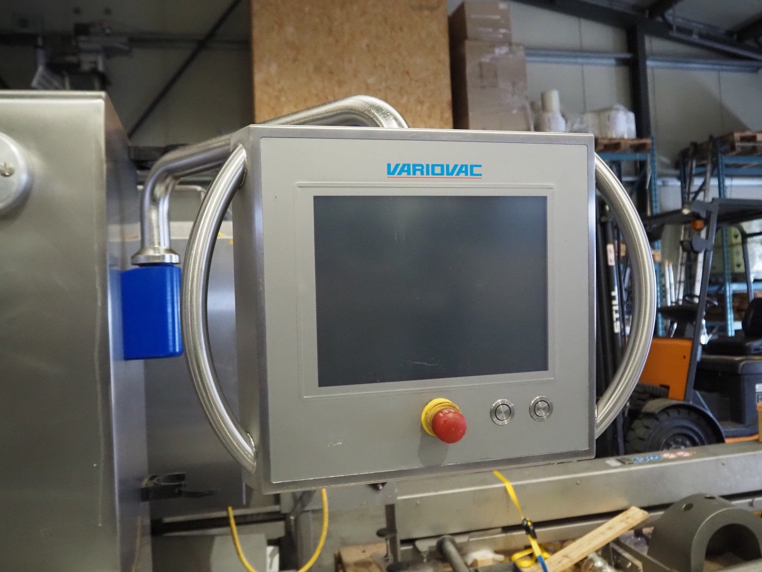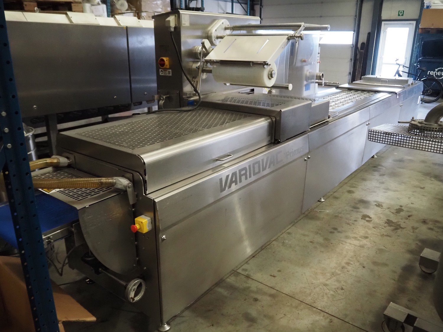Variovac thermoformer, type: PRIMUS, serial number: PW0277, year of construction: 2015, 400 V, 50 Hz, 27 A, dye dimensions: (10x) 150 mm x 85 mm, index: 510 mm, including Busch vacuum pump, type: RA 0302 D 503, capacity: 300 m³ per hour, total dimensions: 8000 mm x 1300 mm x 1880 mm. Kavel locatie: Scottweg 23, 4462 GS Goes, Nederland