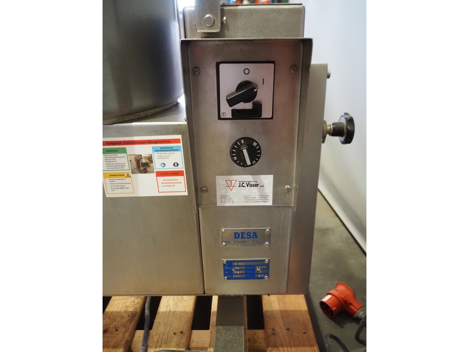 Desa mobile mixer, type: D 60, serial number: 2511, year of construction: 1994, 380 V, 3 Ph, 50 Hz, 1 A, capacity: 60 liter, inside dimensions: Ø 450 mm x 400 mm, total dimensions: 900 mm x 600 mm x 1020 mm. Kavel locatie: Scottweg 23, 4462 GS Goes, Nederland