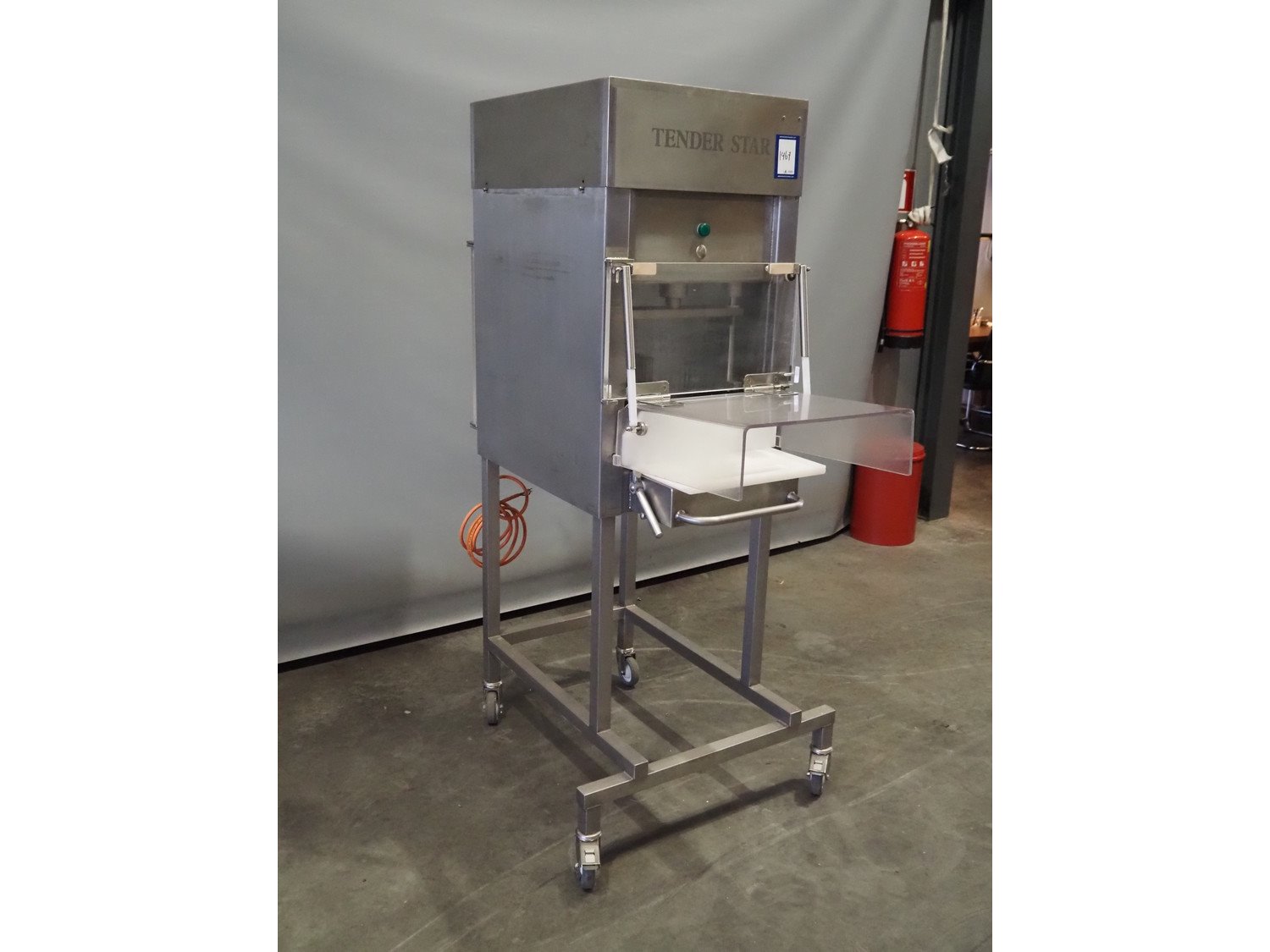 Tender Star mobile tenderizer, model: T.S.E, serial number: 960213, year of construction: 1996, 220/380 V, 3 Ph, 50 Hz, 6.4/3.7 A, 0.9 kW, dimensions: 1000 mm x 800 mm x 1800 mm. Kavel locatie: Scottweg 23, 4462 GS Goes, Nederland