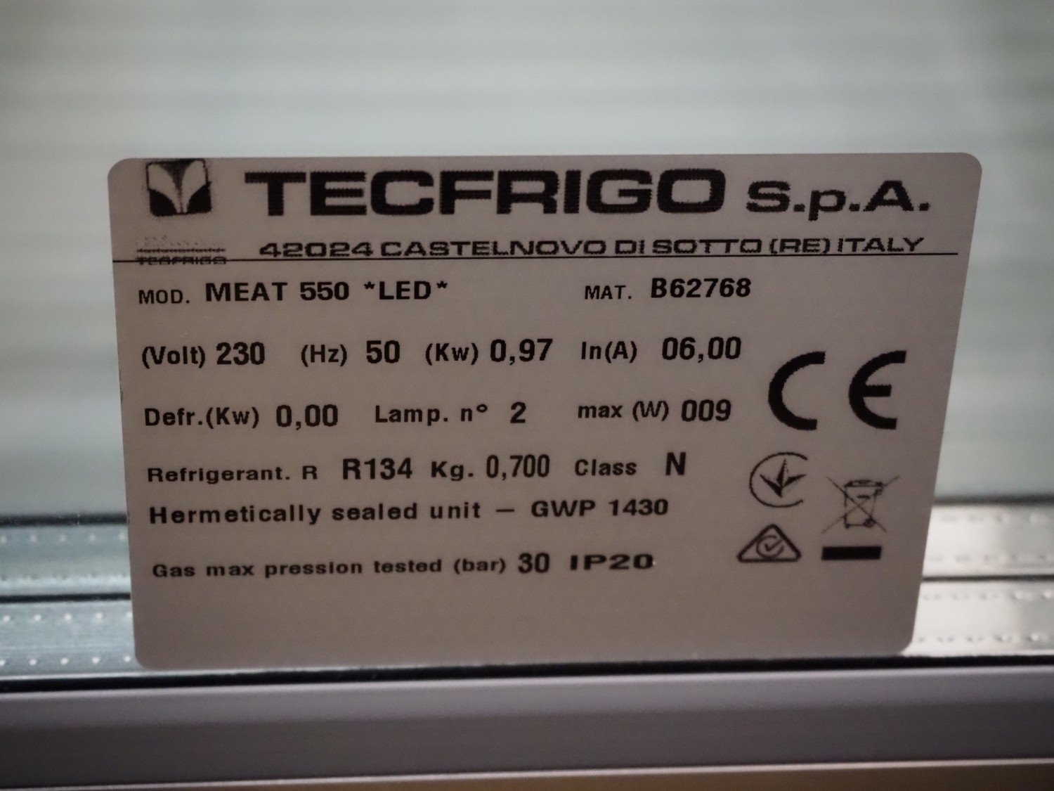 Tecfrigo S.p.A. refrigerated display, model: Meat 550 Led, number: B62768, 230 V, 50 Hz, 0.97 kW, refrigerant: R134, 0.700 kg, 2 floors, floor dimensions: (2x) 550 mm x 650 mm, total dimensions: 740 mm x 800 mm x 2010 mm. Kavel locatie: Scottweg 23, 4462 GS Goes, Nederland