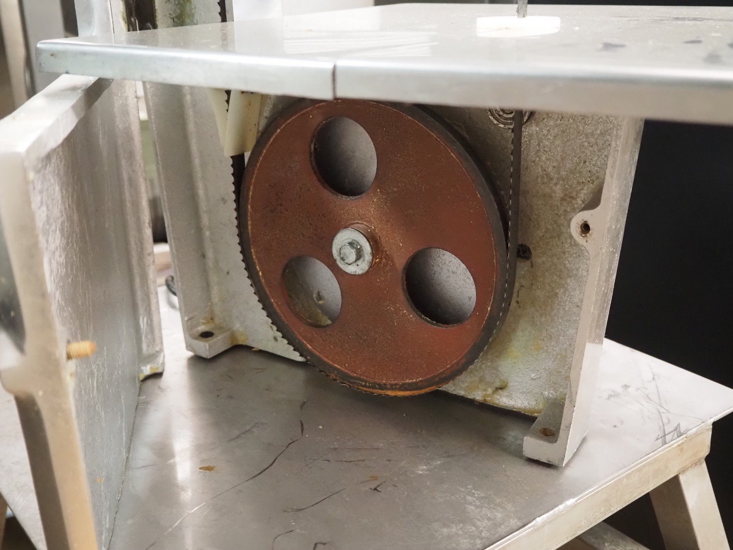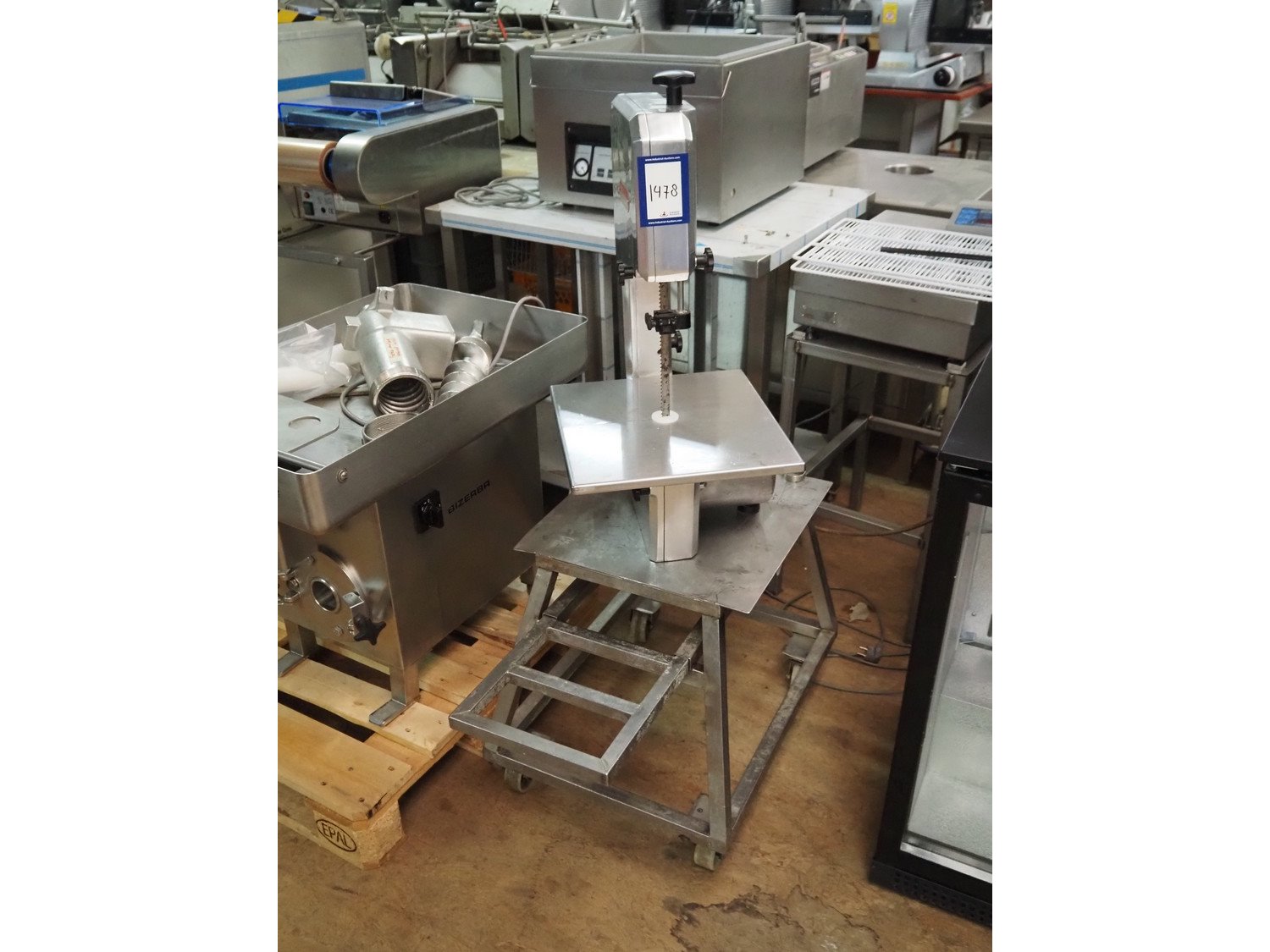 Master mobile bandsaw, number: 2578, 220/380 V, 3 Ph, 50 Hz, table dimensions: 370 mm x 350 mm, total dimensions: 850 mm x 470 mm x 1300 mm. Kavel locatie: Scottweg 23, 4462 GS Goes, Nederland