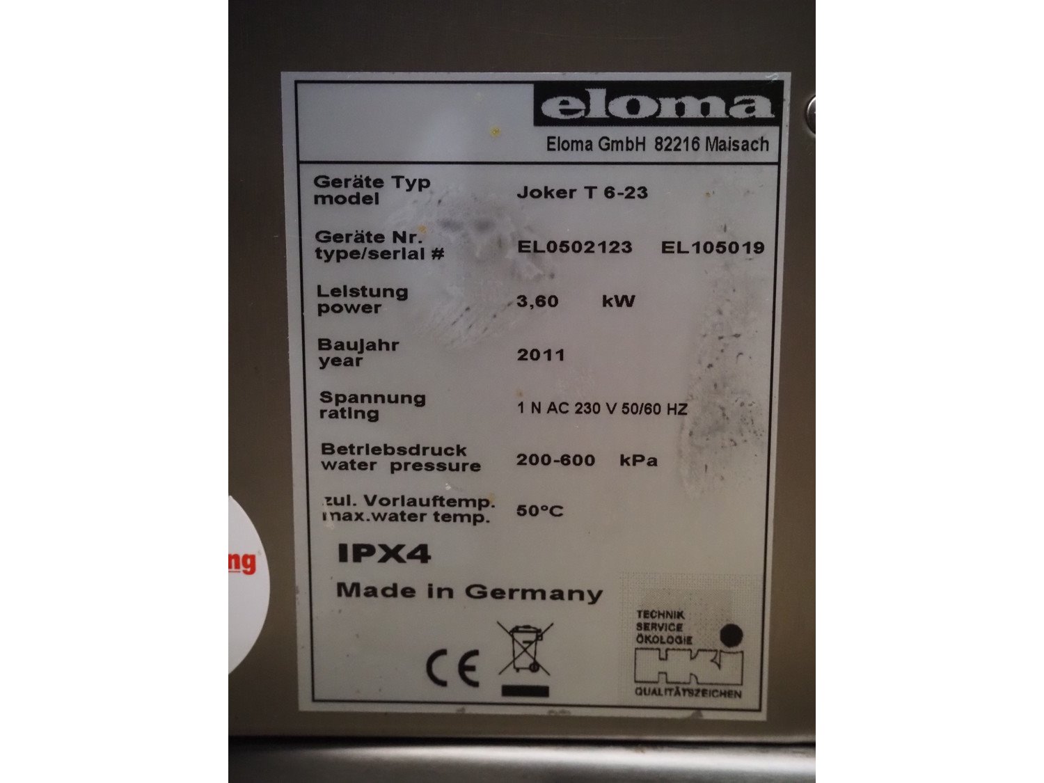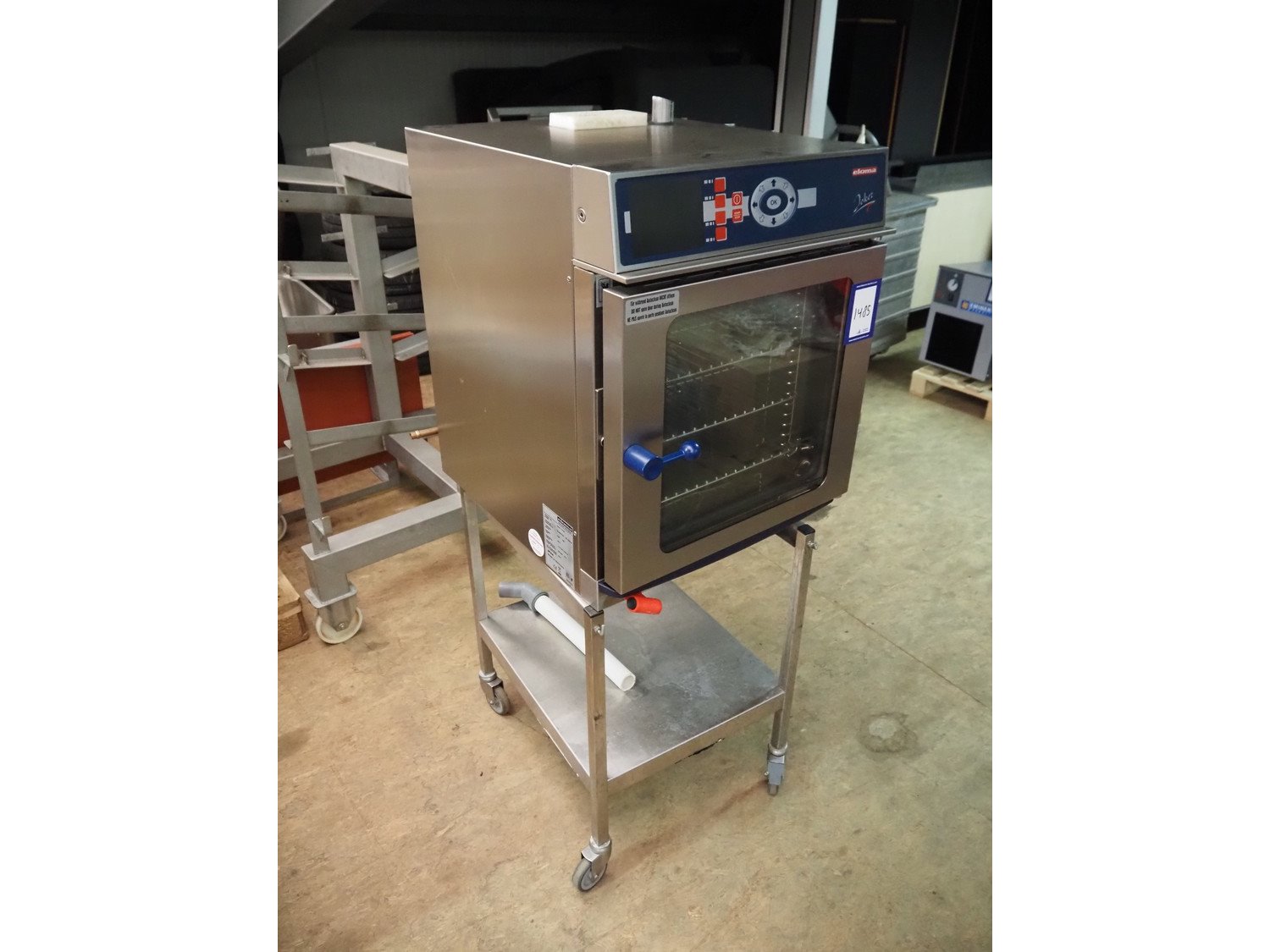 Eloma GmbH combi steamer on s/s trolley, type: Joker T 6-23, serial number: EL0502123 EL105019, year of construction: 2011, 230 V, 1 Ph, 50/60 Hz, 3.60 kW, 3 floors, floor dimensions: (3x) 320 mm x 350 mm, total dimensions: 730 mm x 520 mm x 1340 mm. Kavel locatie: Scottweg 23, 4462 GS Goes, Nederland
