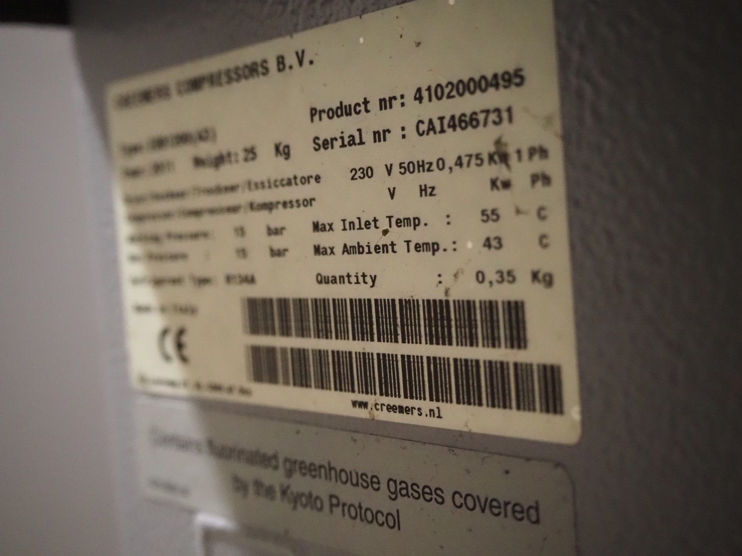Eminent cooling unit, serial number: CAI466731, 230 V, 1 Ph, 50 Hz, 0.475 kW, dimensions: 490 mm x 350 mm x 450 mm. Kavel locatie: Scottweg 23, 4462 GS Goes, Nederland