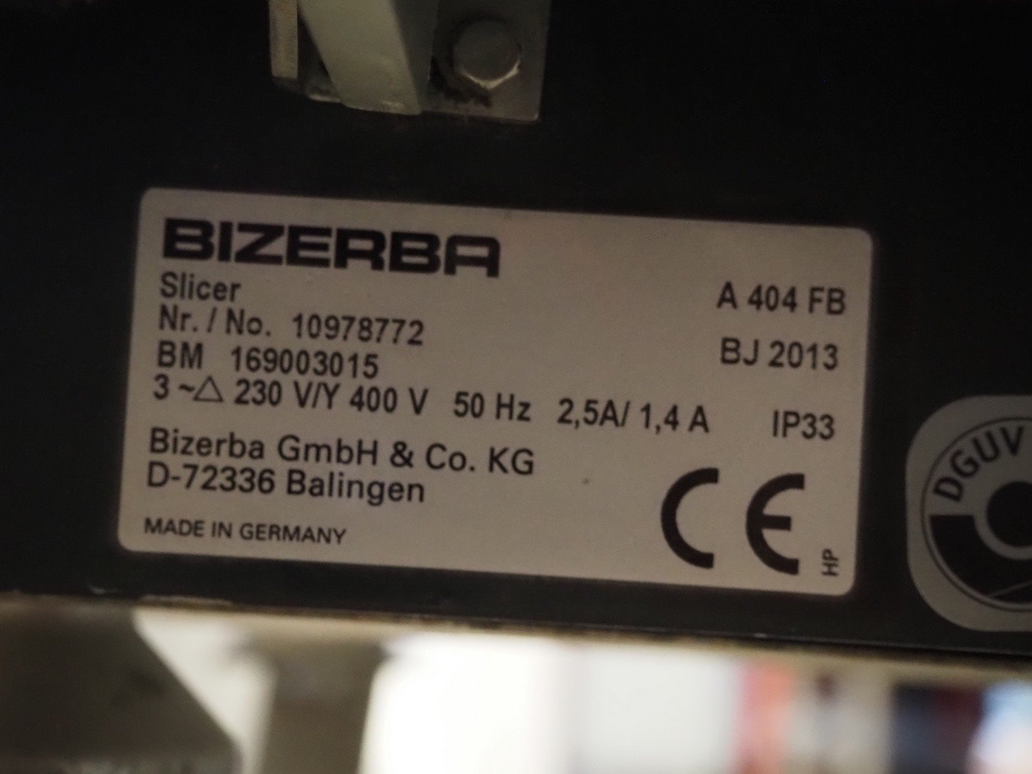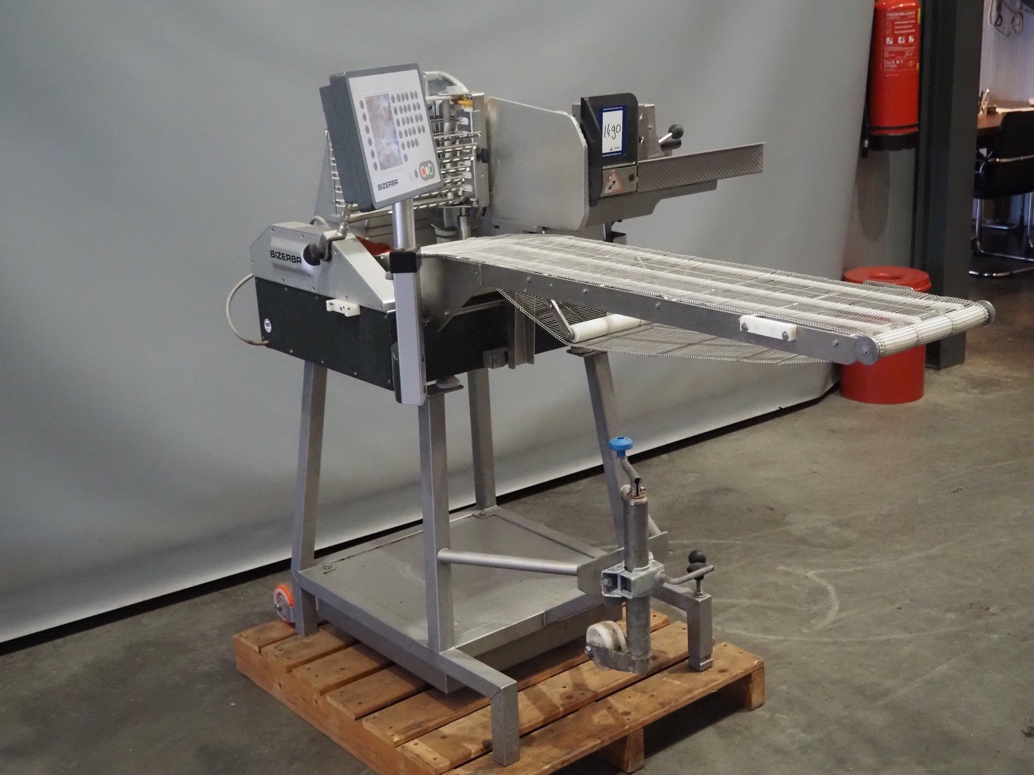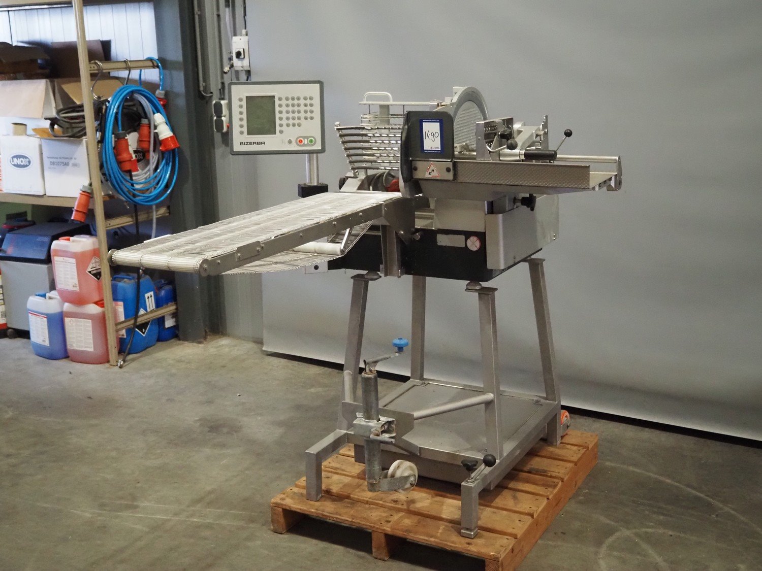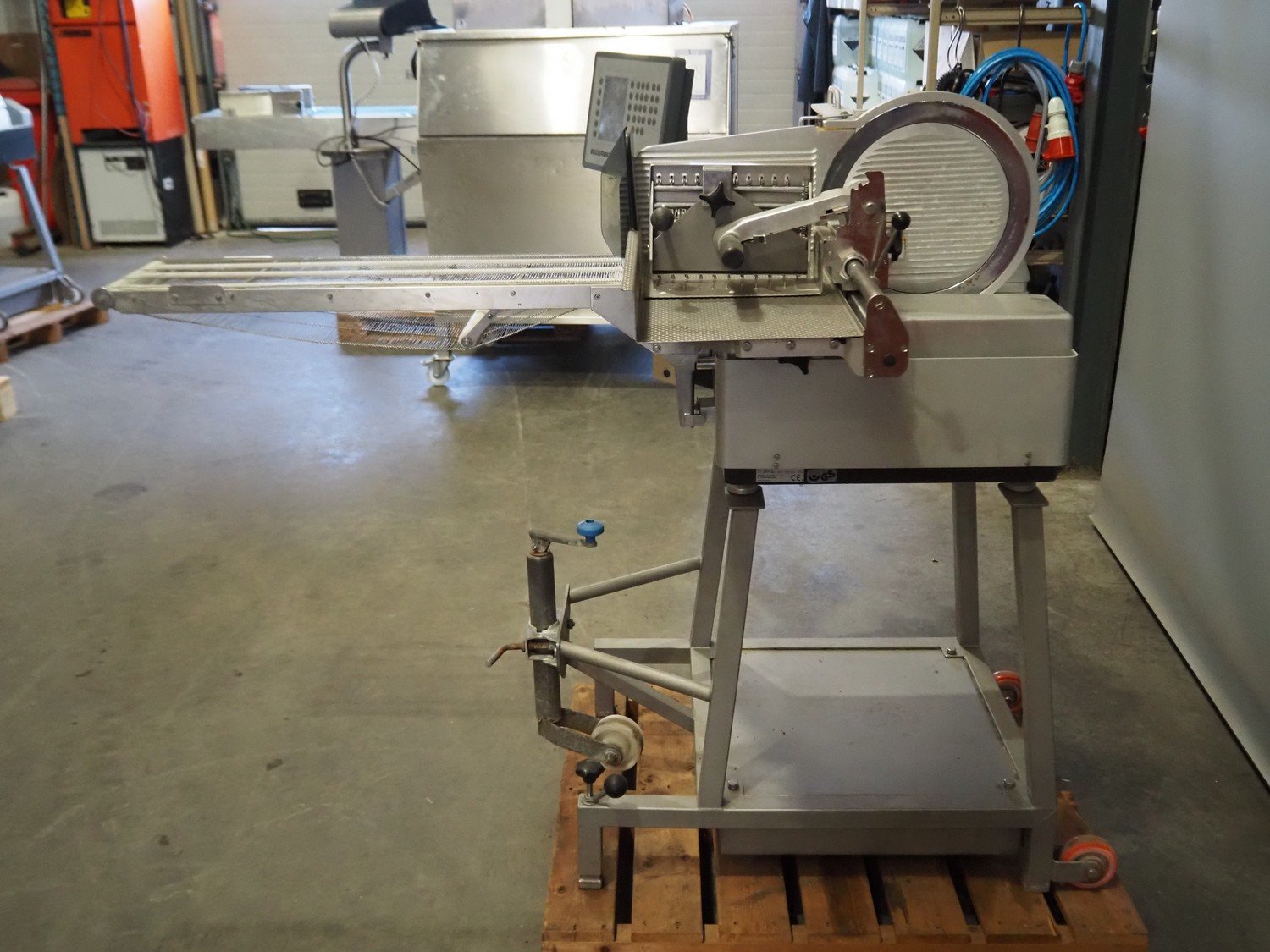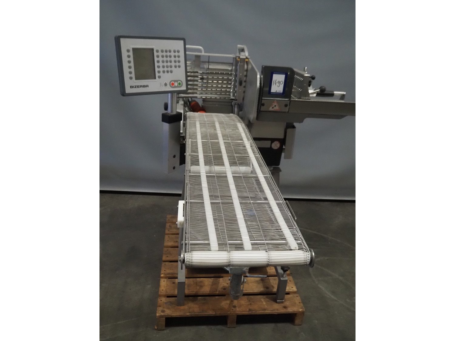 Bizerba mobile automatic slicer, model: A 404 FB, number: 10978772, year of construction: 2013, 230/400 V, 3 Ph, 50 Hz, 2.5/1.4 A, s/s mesh belt, belt width: 250 mm, total dimensions: 720 mm x 1200 mm x 1350 mm. Kavel locatie: Scottweg 23, 4462 GS Goes, Nederland