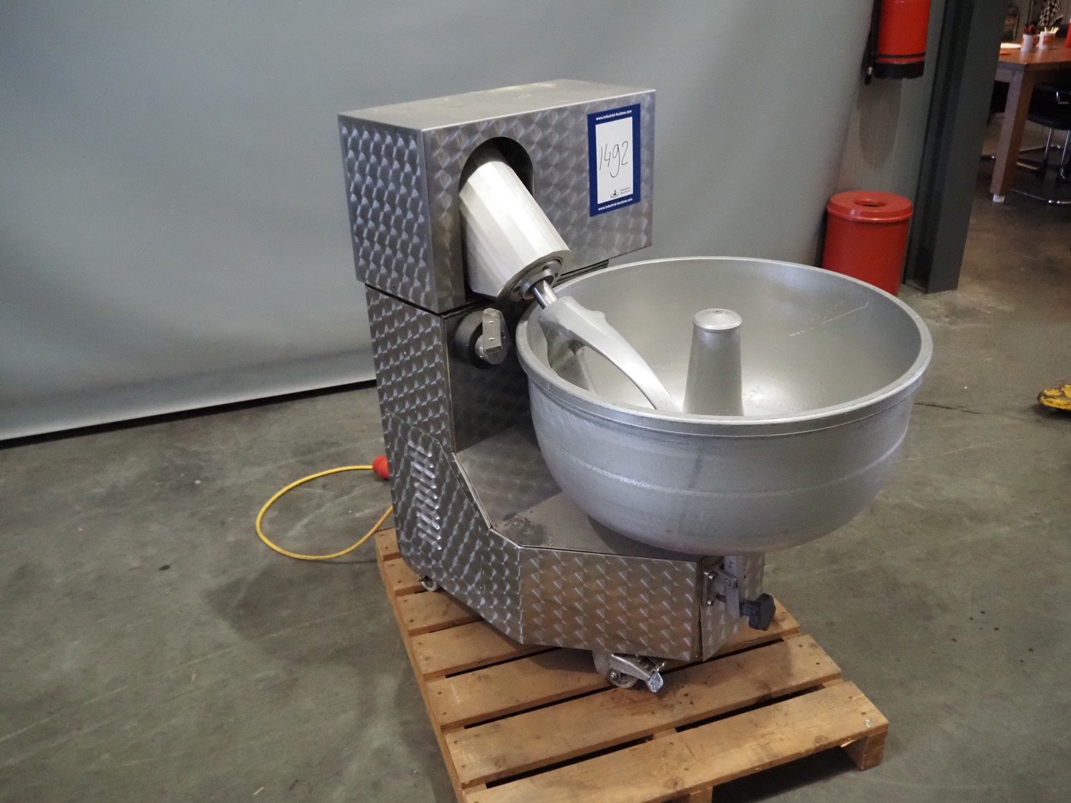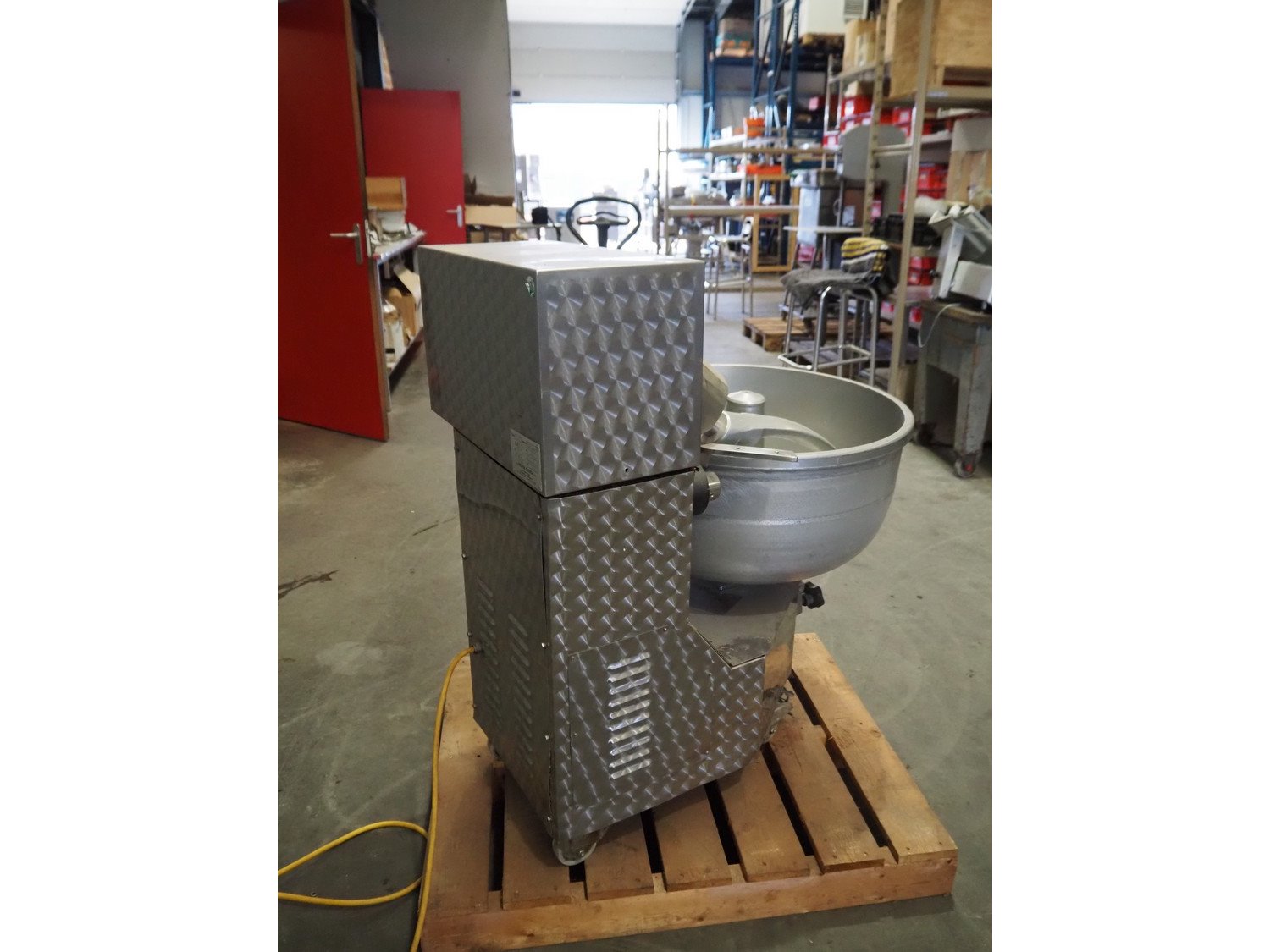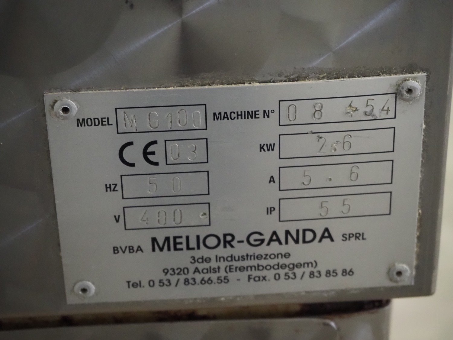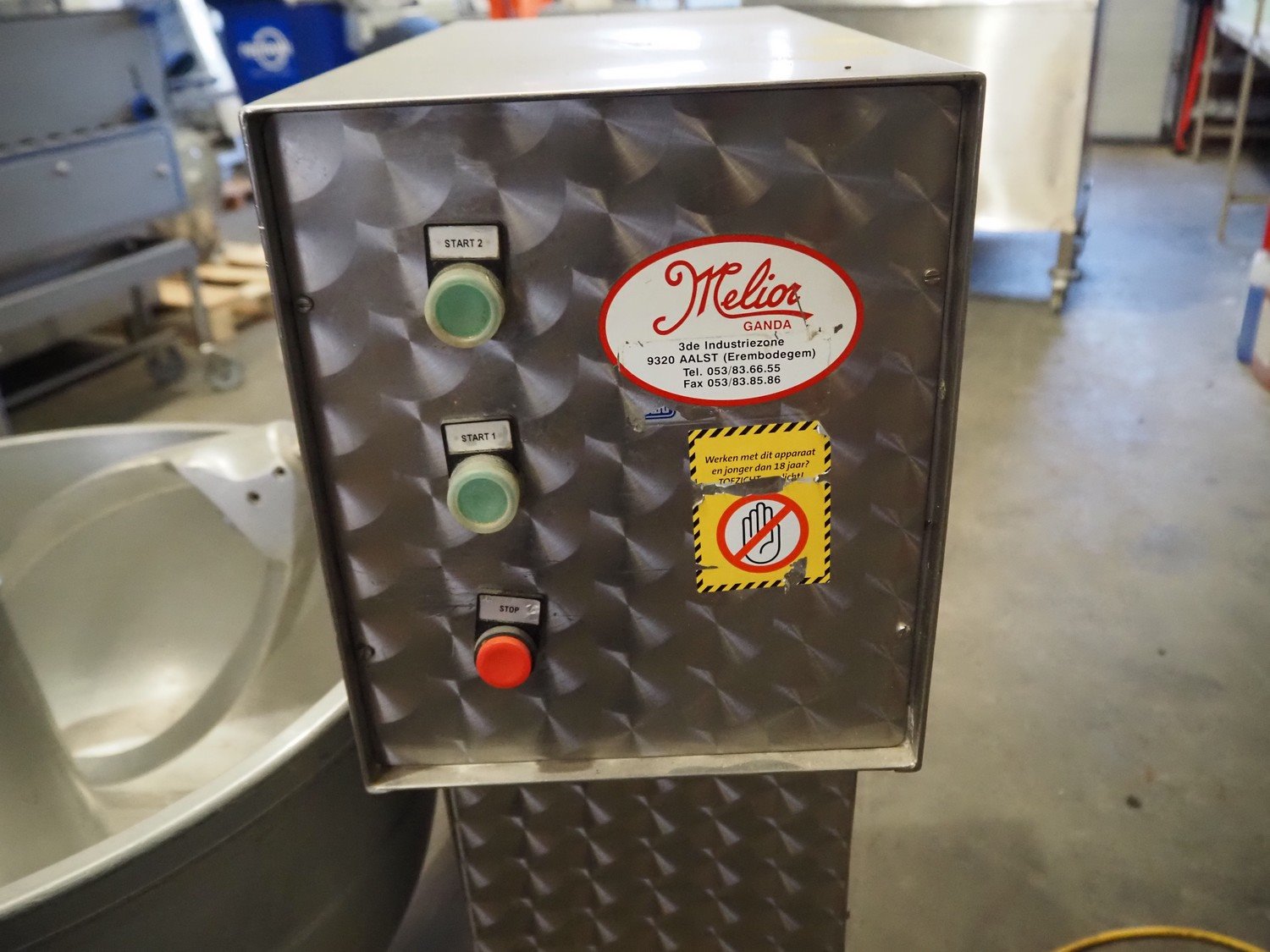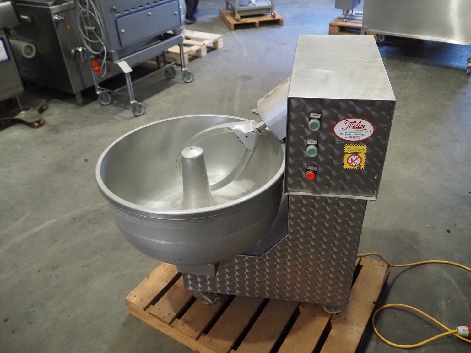 Melior-Ganda mobile mixer, model: MG100, machine number: 08 454, year of construction: 2003, 400 V, 50 Hz, 5.6 A, 2.6 kW, bowl dimensions: Ø 660 mm x 300 mm, total dimensions: 1000 mm x 700 mm x 1070 mm. Kavel locatie: Scottweg 23, 4462 GS Goes, Nederland