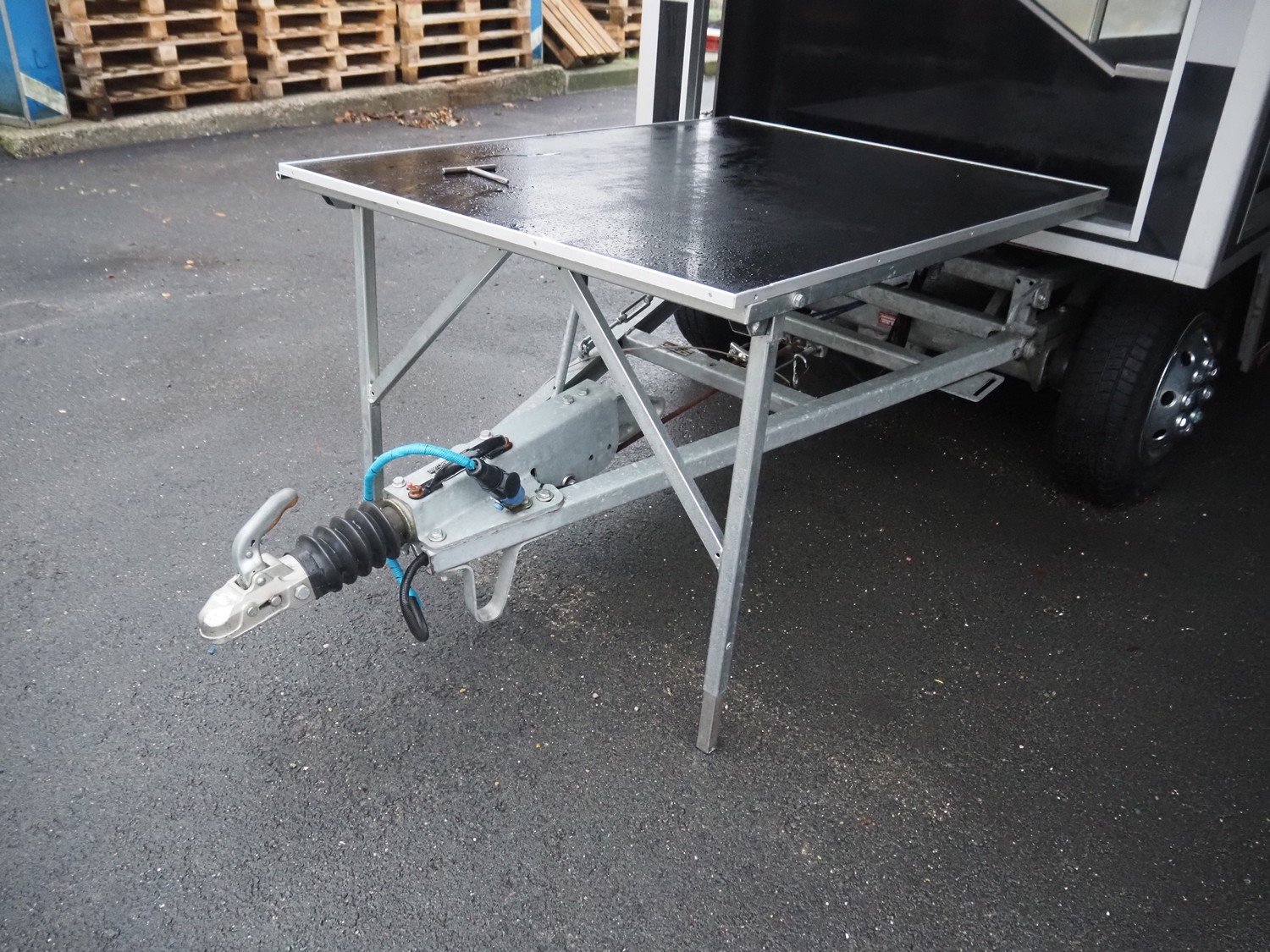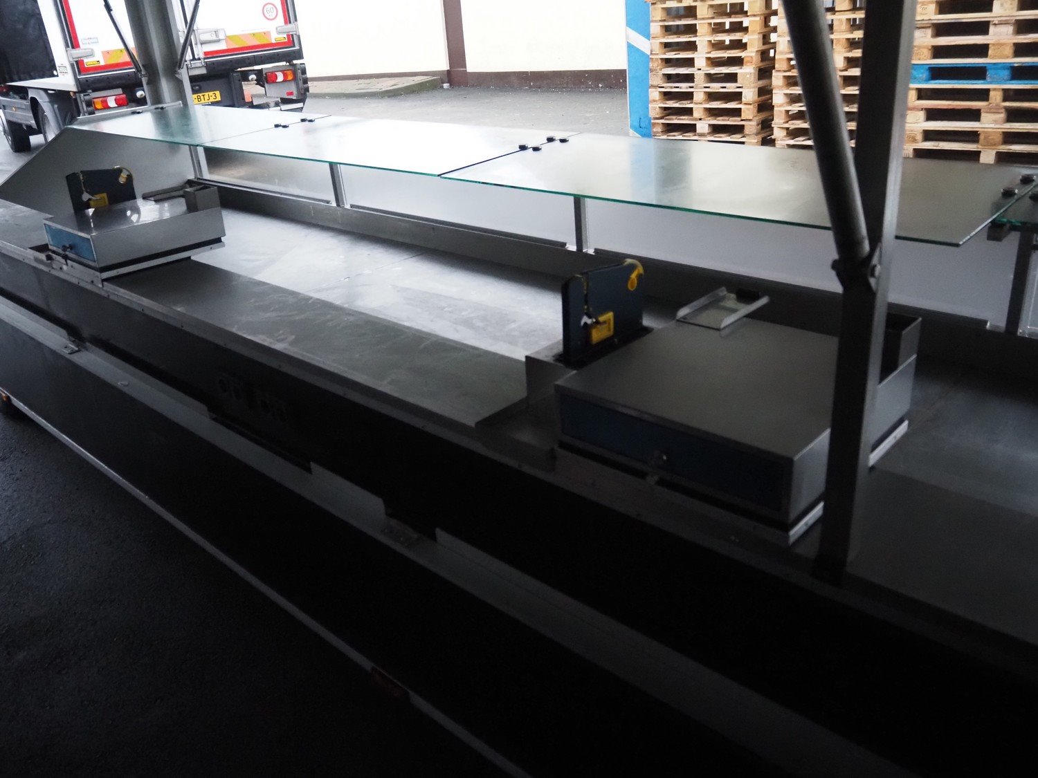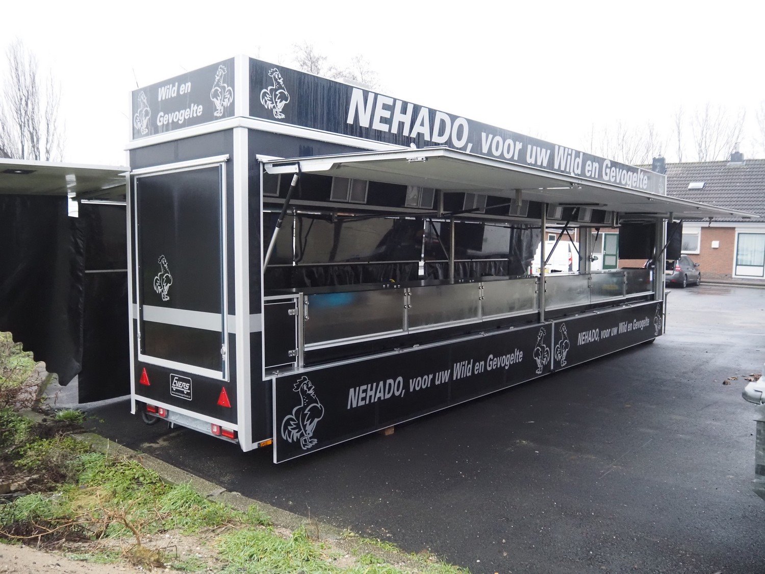 Kuiper Wagenbouw/Evers vending trailer with refrigeration counter, model: Kupa 35 Markavan 9 m, serial number: XL9KD350220090420, first registration: 2020 (no license plate available), MOT expiry date: unknown, weight: 3500 kg, twin-axle, expandable width on left and right sides, transport dimensions: approximately 9000 mm x 1500 mm x 2950 mm, total dimensions when fully extended: approximately 12500 mm x 5000 mm x 2950 mm. Please notice: trailer is not registered and has no license plate, paperwork is not available. Kavel locatie: Amphoraweg 11, 2332 ED Leiden, Nederland