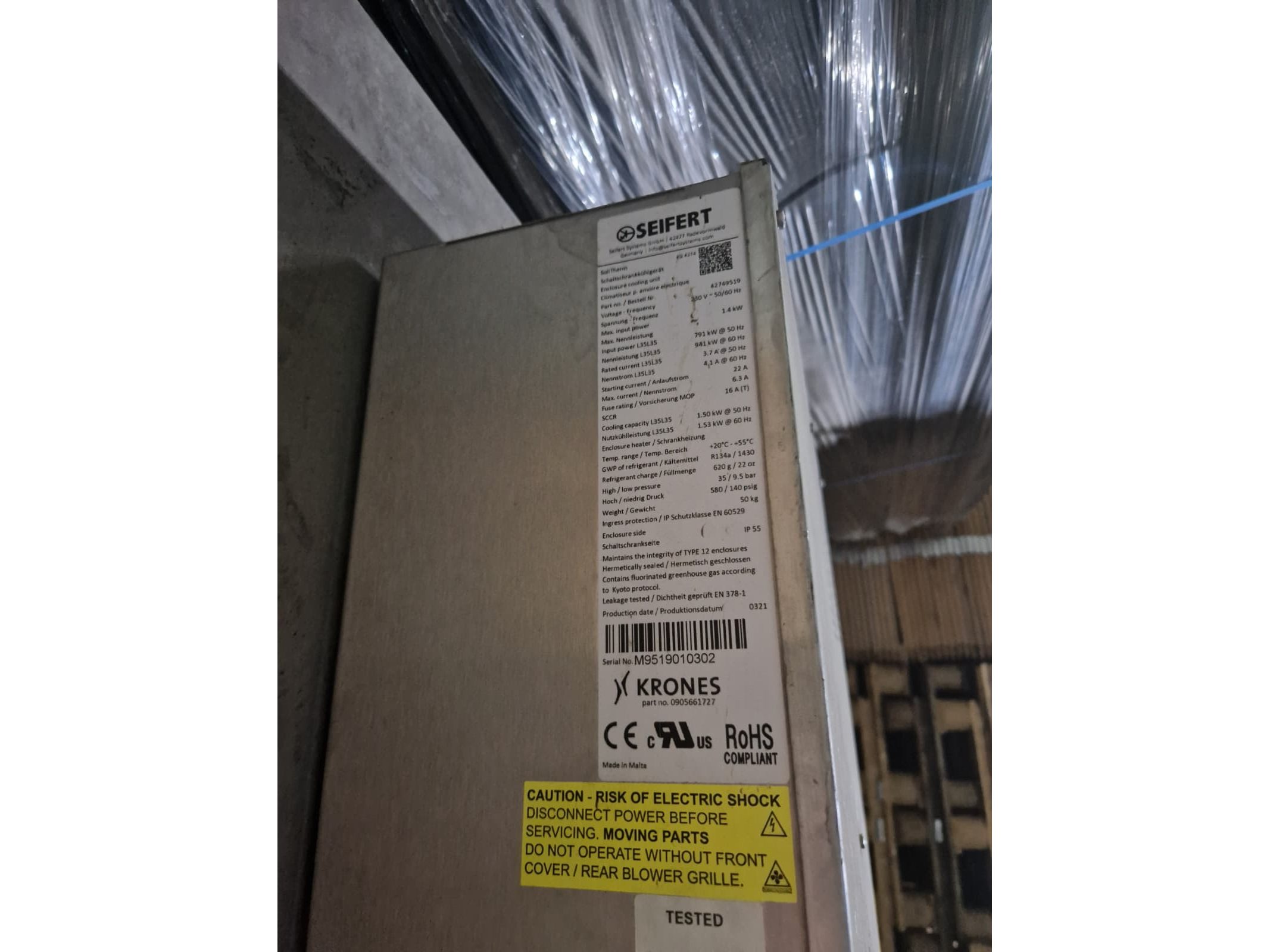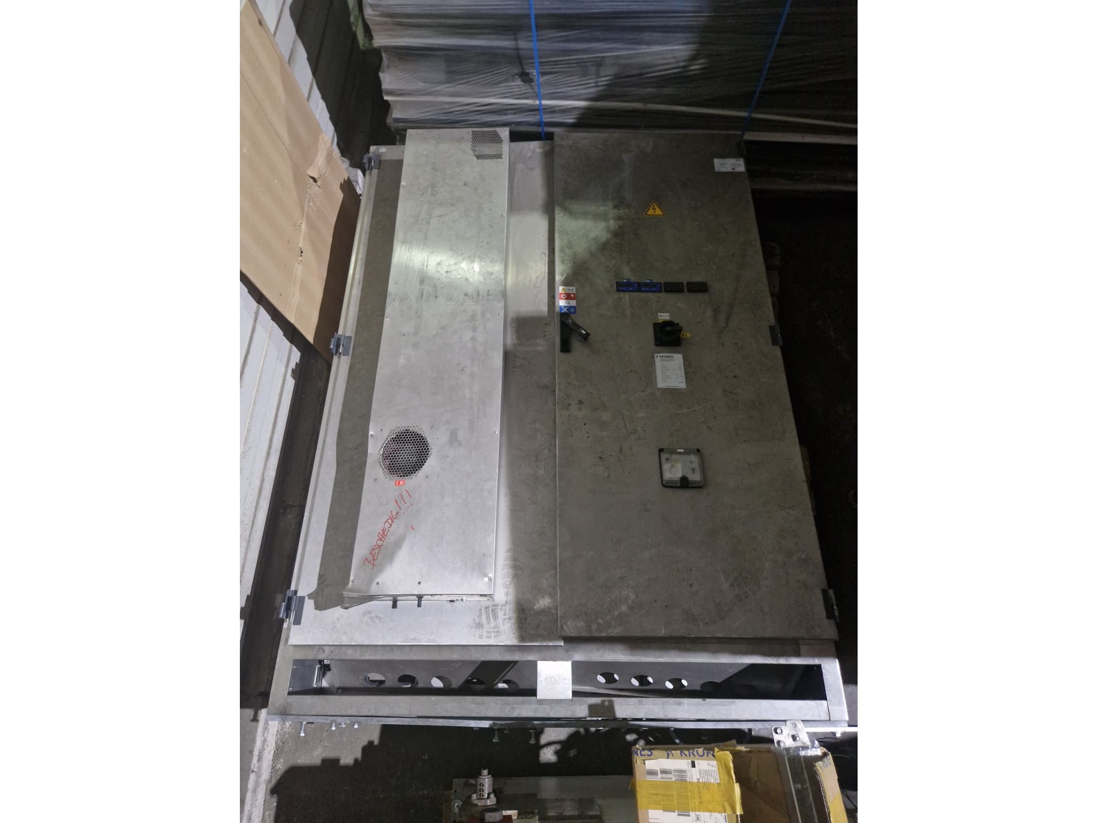 Krones labelling machine, model: Ergomatic, serial number: K892-046, year of construction: 2021, 400/230 V, 3 Ph, 50 Hz, 38 A, estimated weight: 10.000 kg, dimensions machine: 5500 mm x 3700 mm x 2350 mm, dimensions switch cabinet: 1400 mm x 800 mm x 2400 mm. Kavel locatie: Turnhoutsebaan 26-A, 5051 DZ Goirle, Nederland