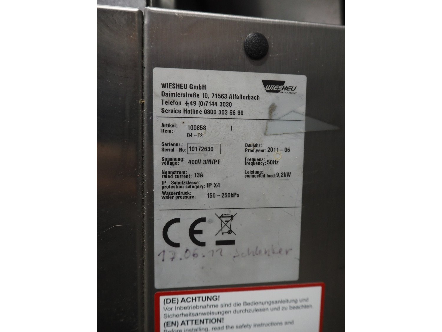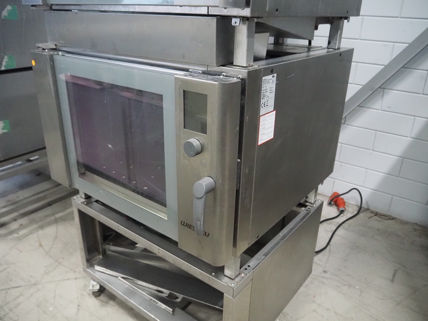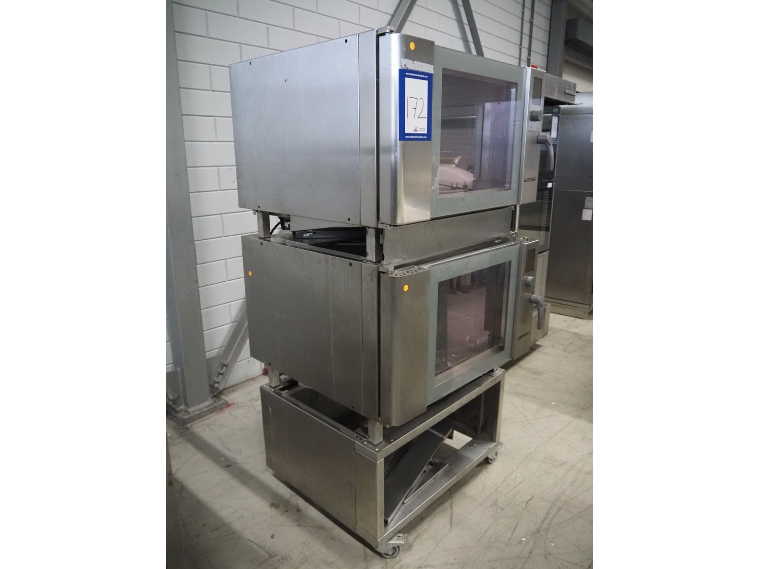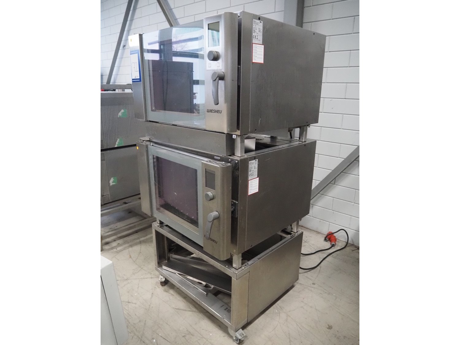 Wiesheu GmbH mobile double stacked oven, type: B4-E2, serial number: 10223471 / 10223468, year of construction: 2012-11, 400 V, 3 Ph, 50 Hz, 13 A, 9.2 kW, inside dimensions: (2x) 690 mm x 400 mm x 440 mm, total dimensions: 1000 mm x 950 mm x 1950 mm. Kavel locatie: Looyenbeemd 11, 5652 BH Eindhoven, Nederland