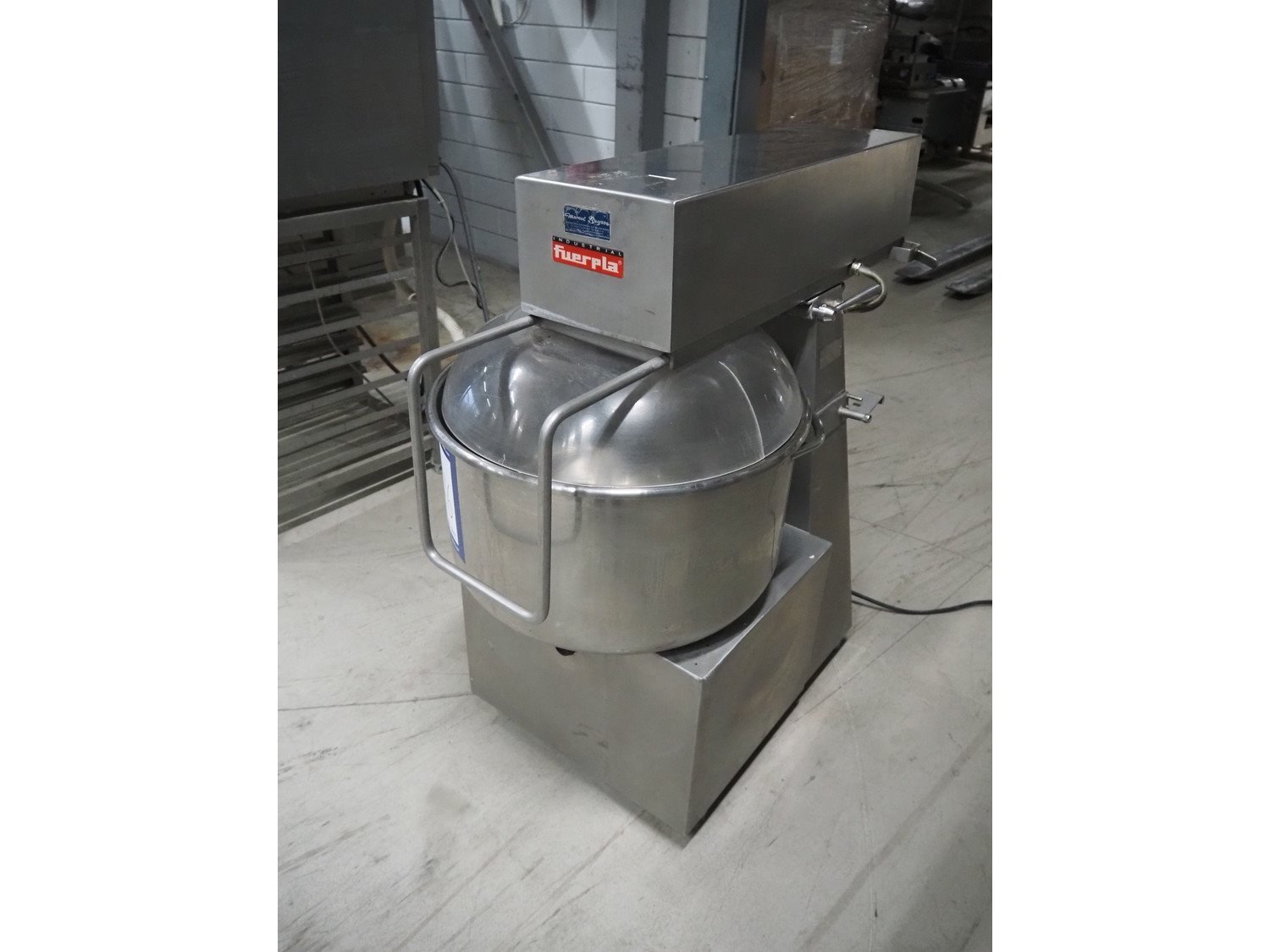 Fuerpla mixer, model: A-85, serial number: 2659, year of construction: 2003, 380 V, 3 Ph, 50 Hz, 0.75 kW, capacity: 85 liter, inside dimensions: Ø 650 mm x 340 mm, total dimensions: 1000 mm x 850 mm x 1680 mm. Kavel locatie: Looyenbeemd 11, 5652 BH Eindhoven, Nederland