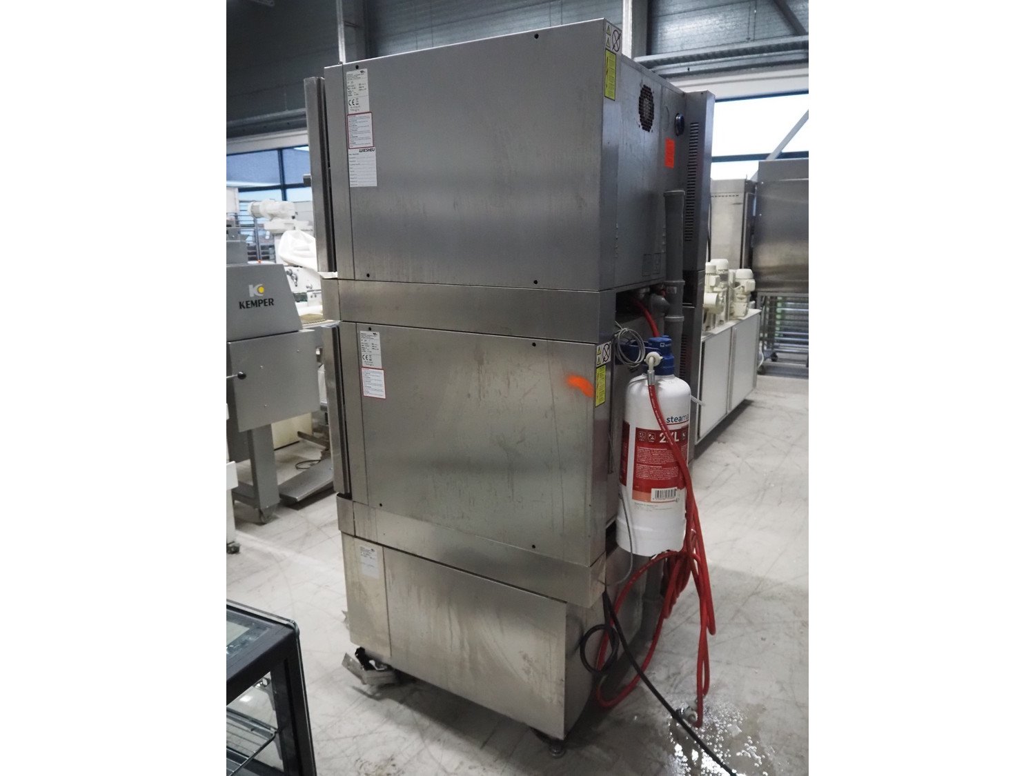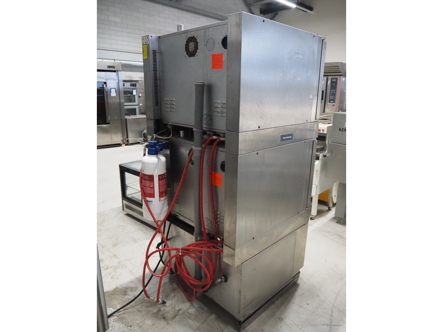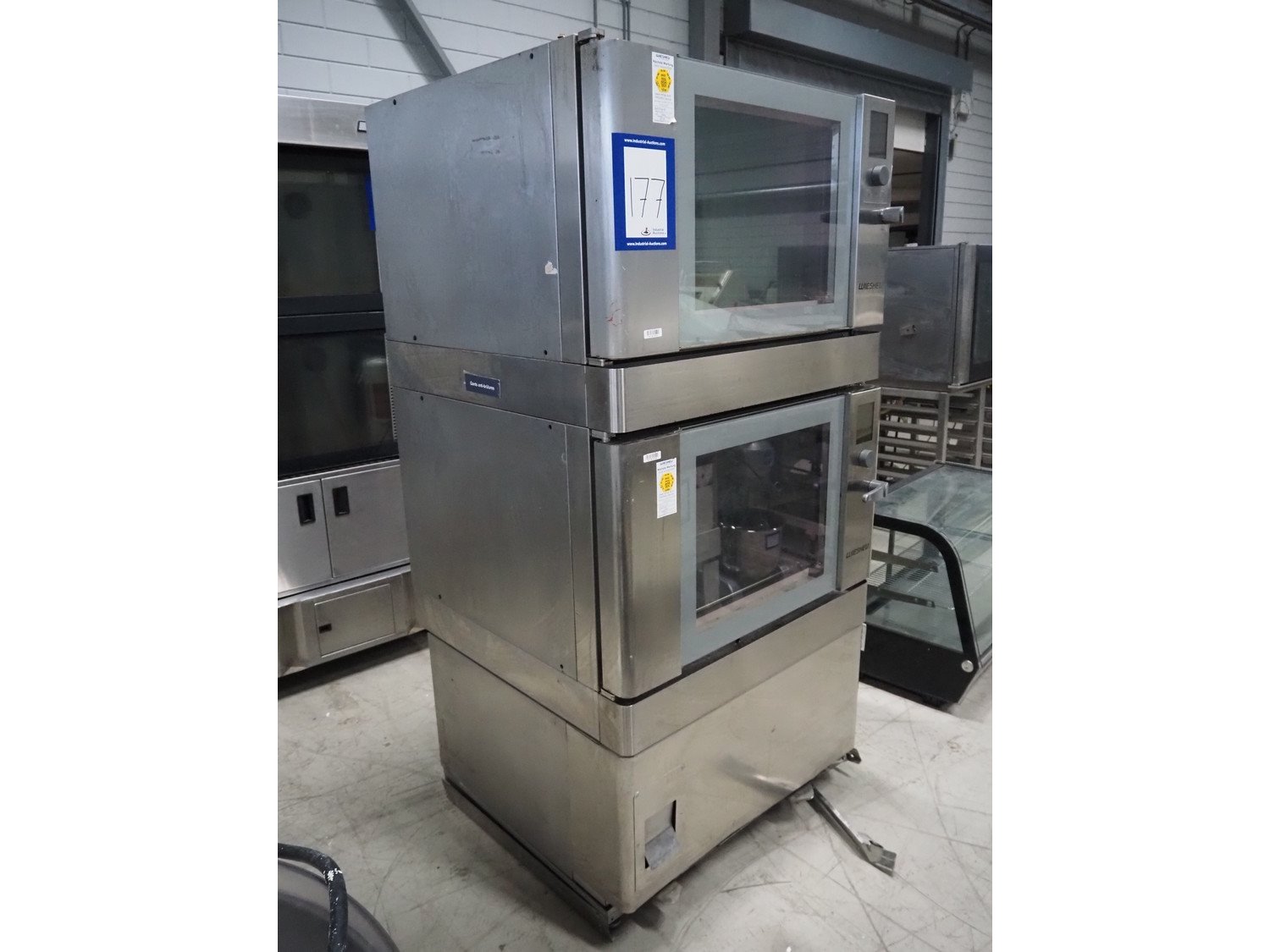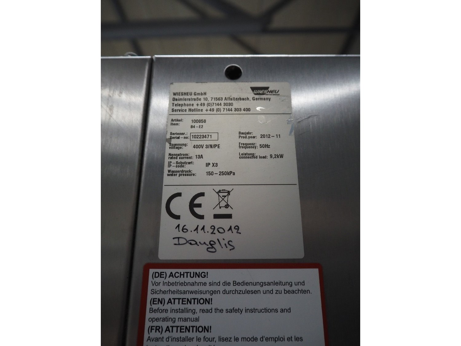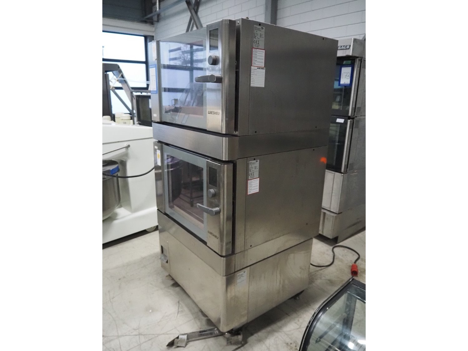 Wiesheu GmbH mobile double stacked oven, type: B4-E2, serial number: 10172682 / 10172630, year of construction: 2011-06, 400 V, 3 Ph, 50 Hz, 13 A, 9.2 kW, inside dimensions: (2x) 690 mm x 400 mm x 440 mm, total dimensions: 1000 mm x 950 mm x 1950 mm. Kavel locatie: Looyenbeemd 11, 5652 BH Eindhoven, Nederland