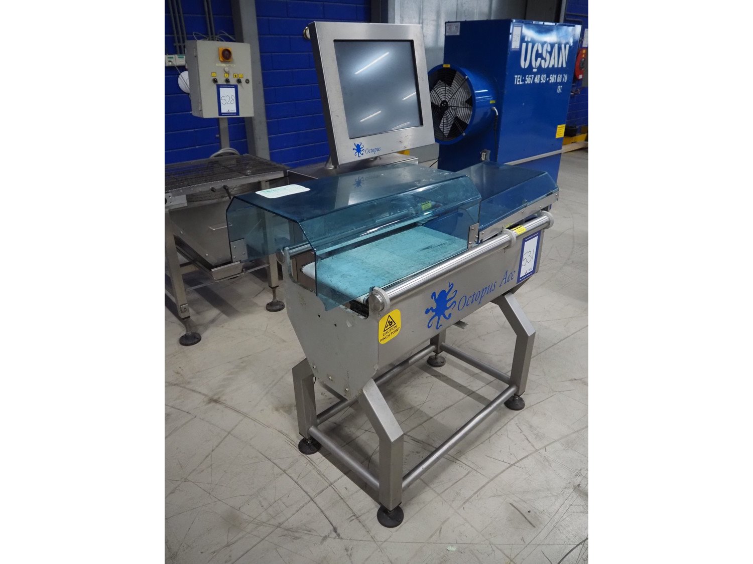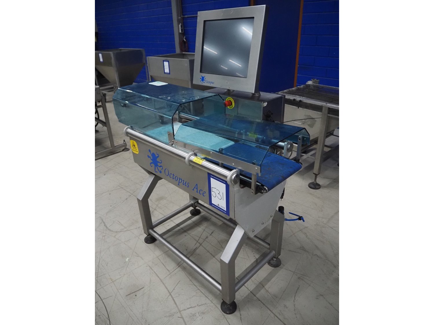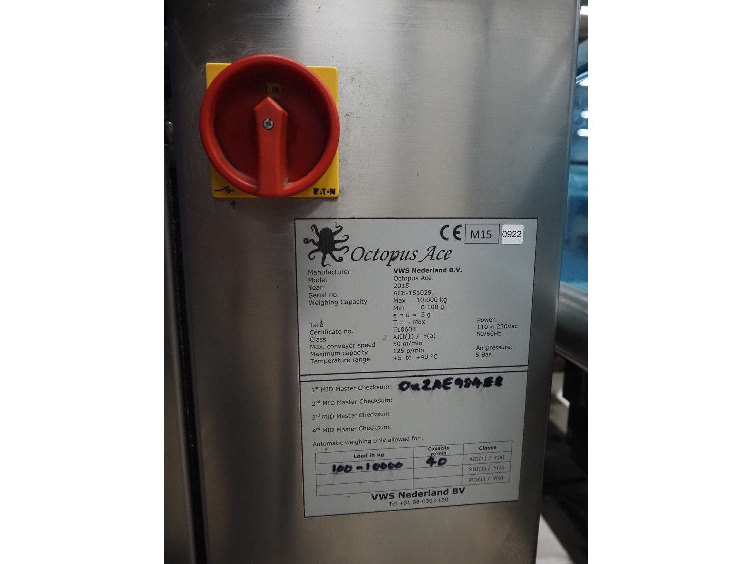 VWS Nederland B.V. checkweigher, model: Octopus Ace, serial number: ACE-151029, year of construction: 2015, 230 V, 1 Ph, 50/60 Hz, 5 bar, plastic belts, belt width: (2x) 290 mm, total dimensions: 1260 mm x 800 mm x 1700 mm. Kavel locatie: Looyenbeemd 11, 5652 BH Eindhoven, Nederland