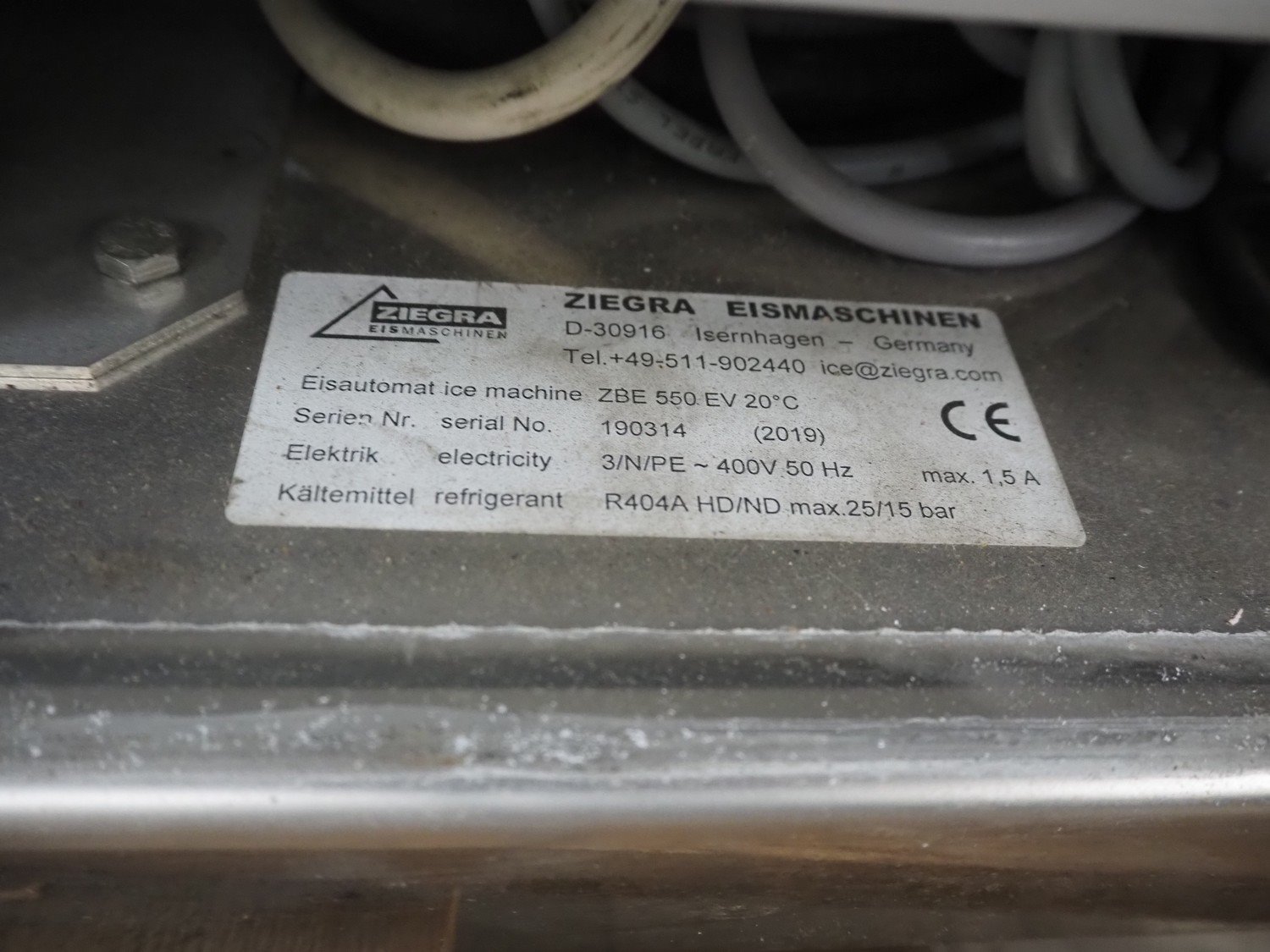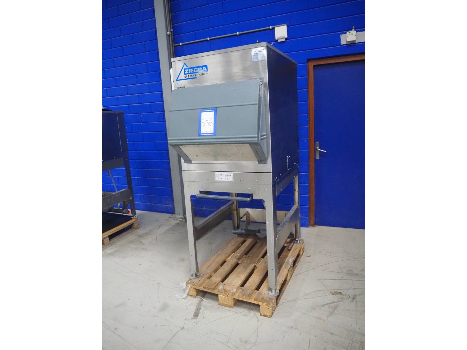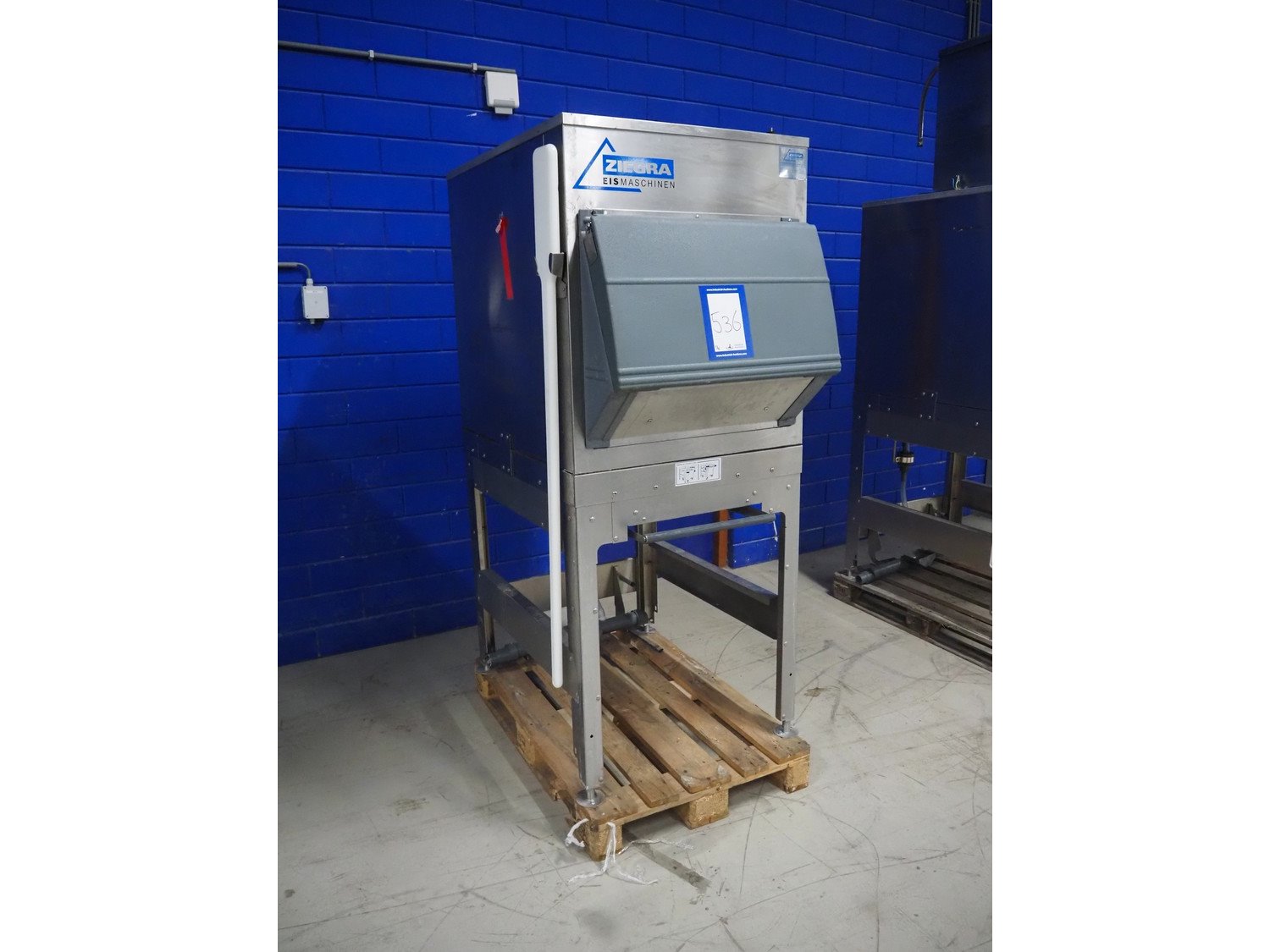 Ziegra Eismaschinen ice machine with bunker, serial number bunker: 174551, model ice machine: ZBE 550 EV 20°C, serial number: 190314, year of construction: 2019, 400 V, 3 Ph, 50 Hz, 1.5 A, refrigerant: R404A, dimensions bunker: 850 mm x 1200 mm x 1900 mm, dimensions ice machine: 950 mm x 500 mm x 850 mm. Incomplete. Kavel locatie: Looyenbeemd 11, 5652 BH Eindhoven, Nederland