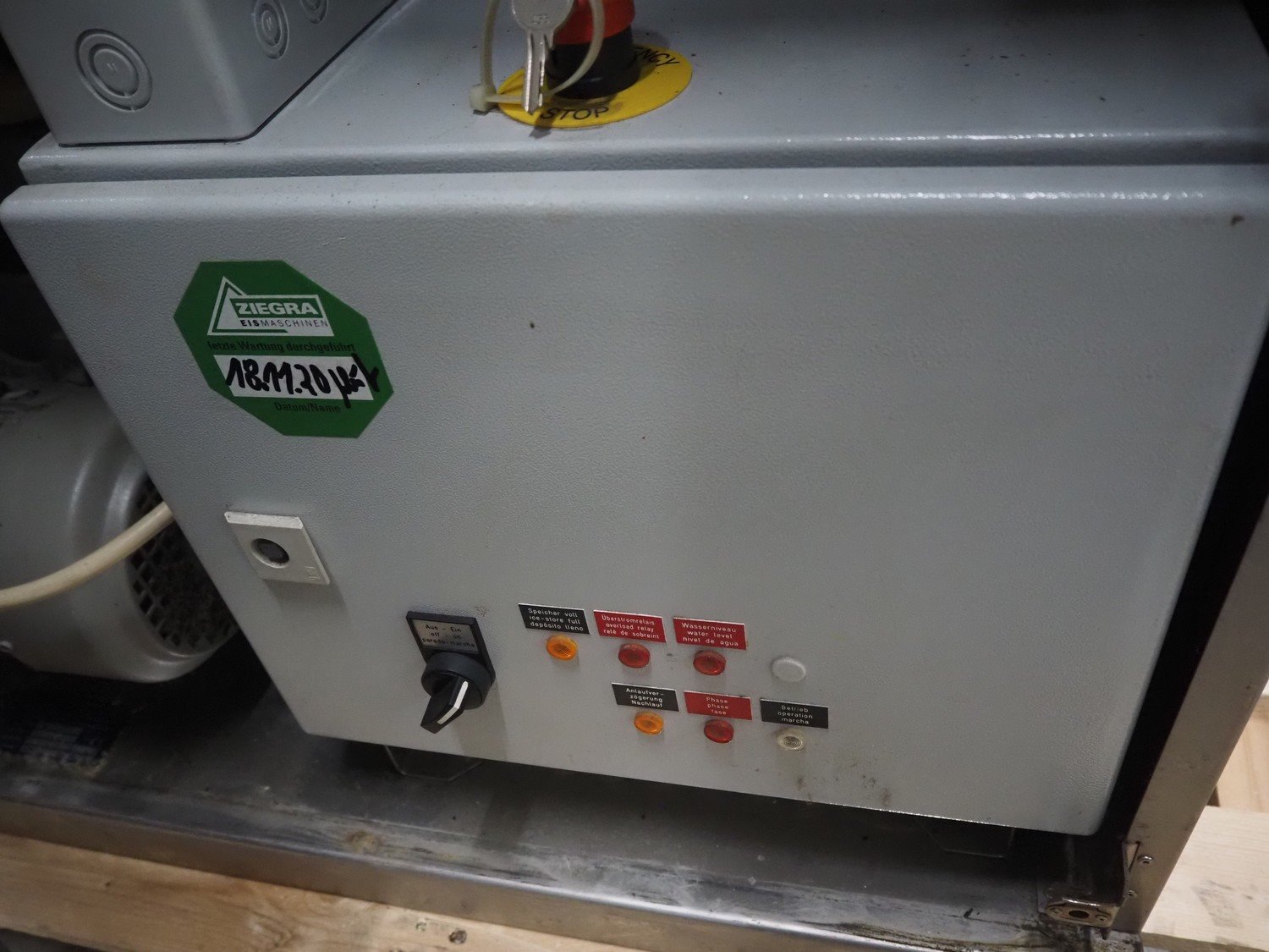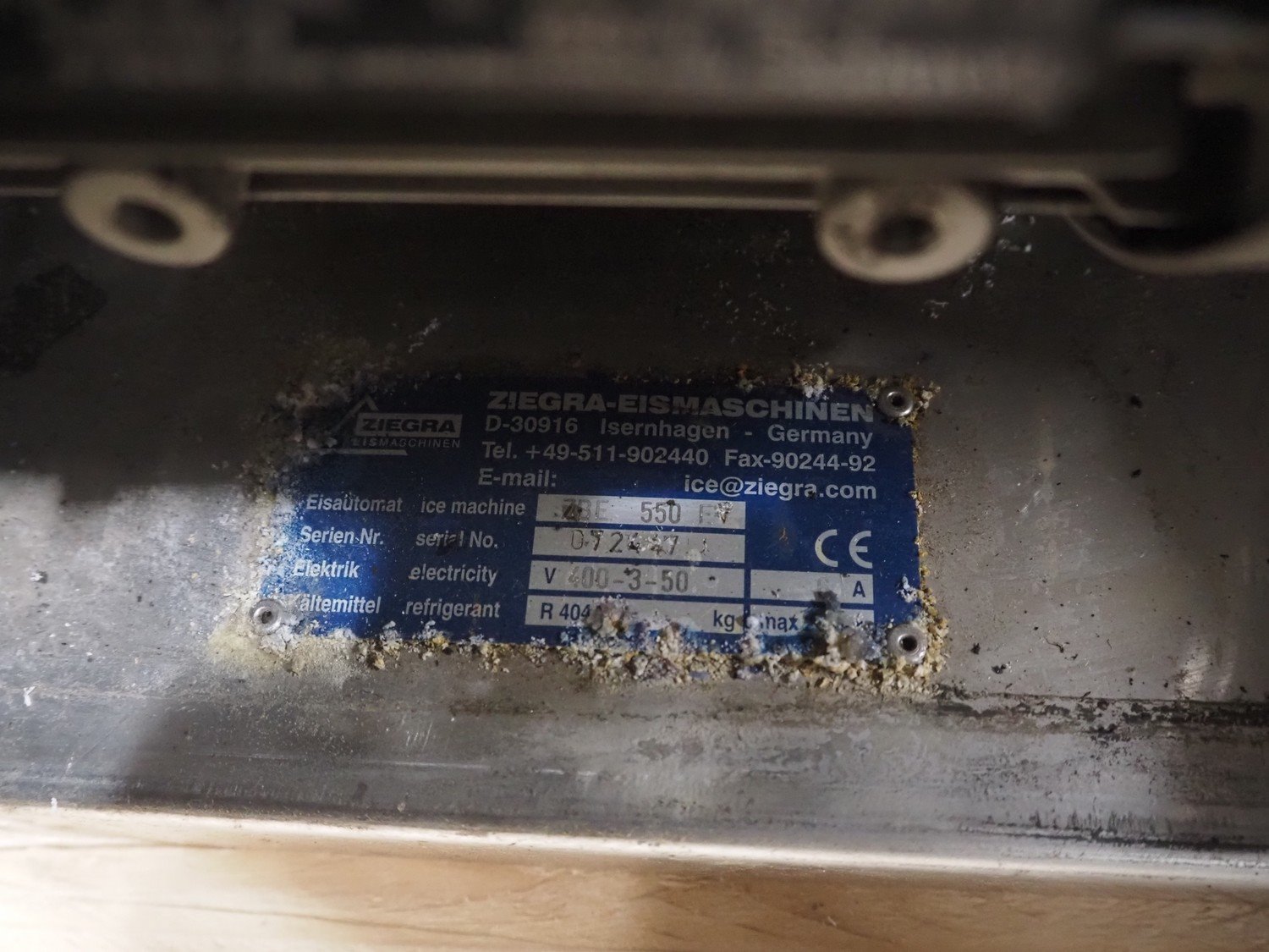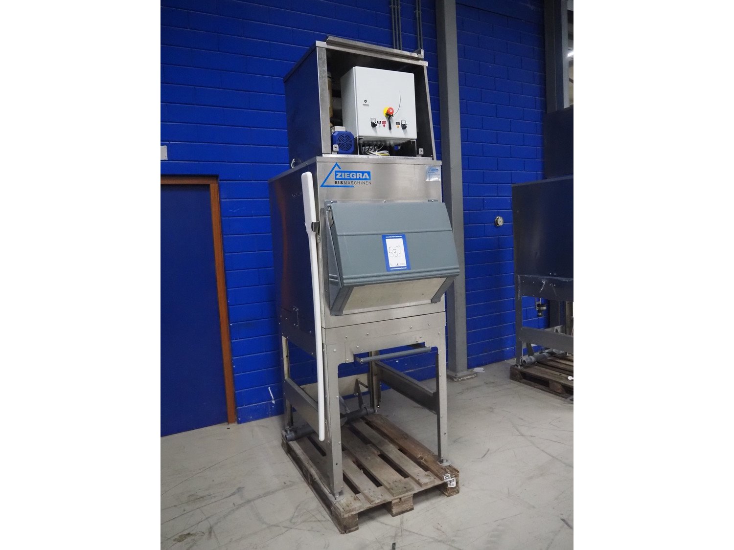 Ziegra Eismaschinen ice machine with bunker, serial number bunker: 175051/186087, model ice machine: ZBE 550 EV, serial number: 072447, 400 V, 3 Ph, 50 Hz, refrigerant: R404A, dimensions bunker: 850 mm x 1250 mm x 2500, dimensions ice machine: 950 mm x 500 mm x 850 mm. Kavel locatie: Looyenbeemd 11, 5652 BH Eindhoven, Nederland
