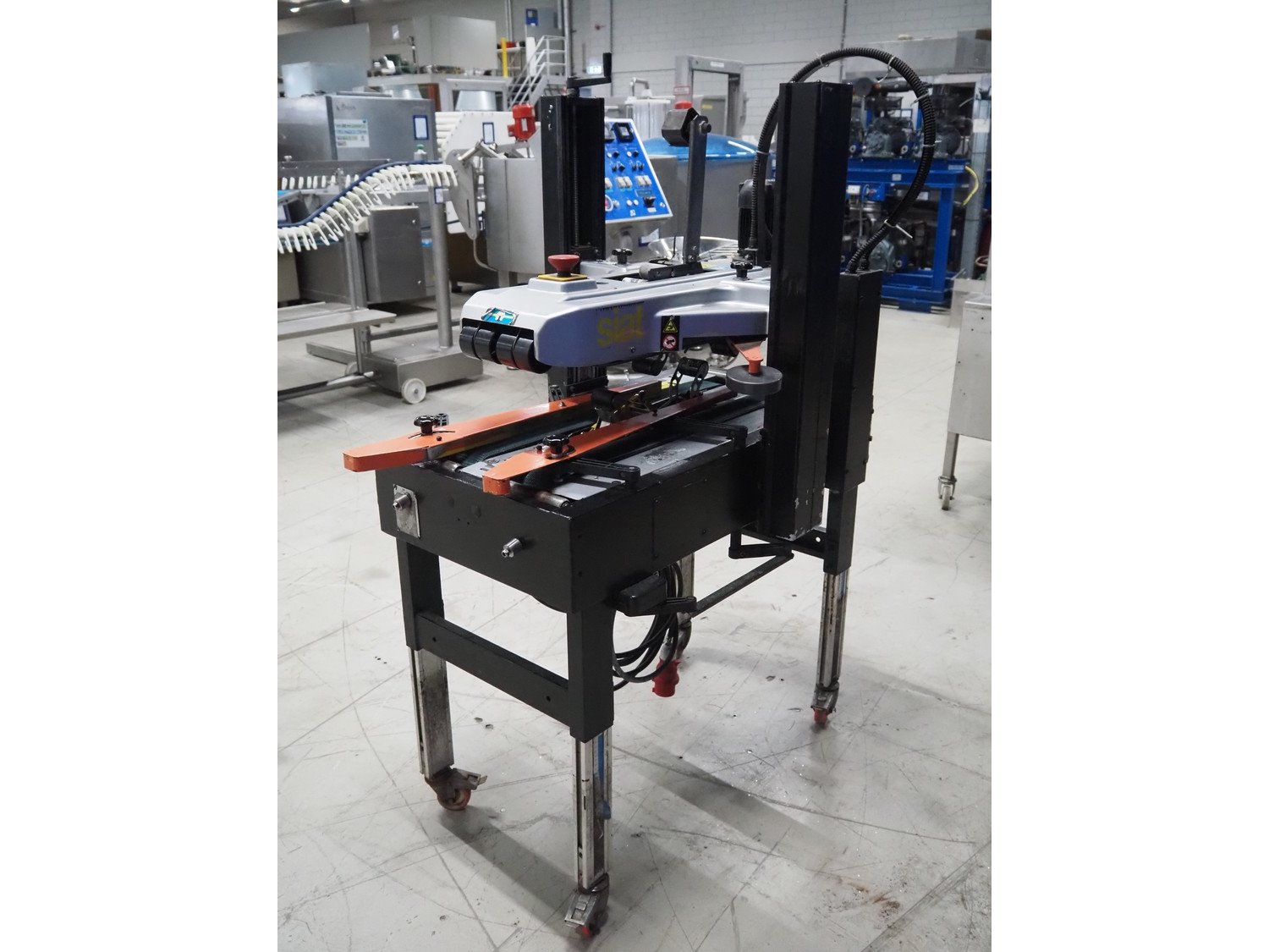 Siat box closing machine, dimensions: 1220 mm x 730 mm x 1700 mm. Kavel locatie: Looyenbeemd 11, 5652 BH Eindhoven, Nederland